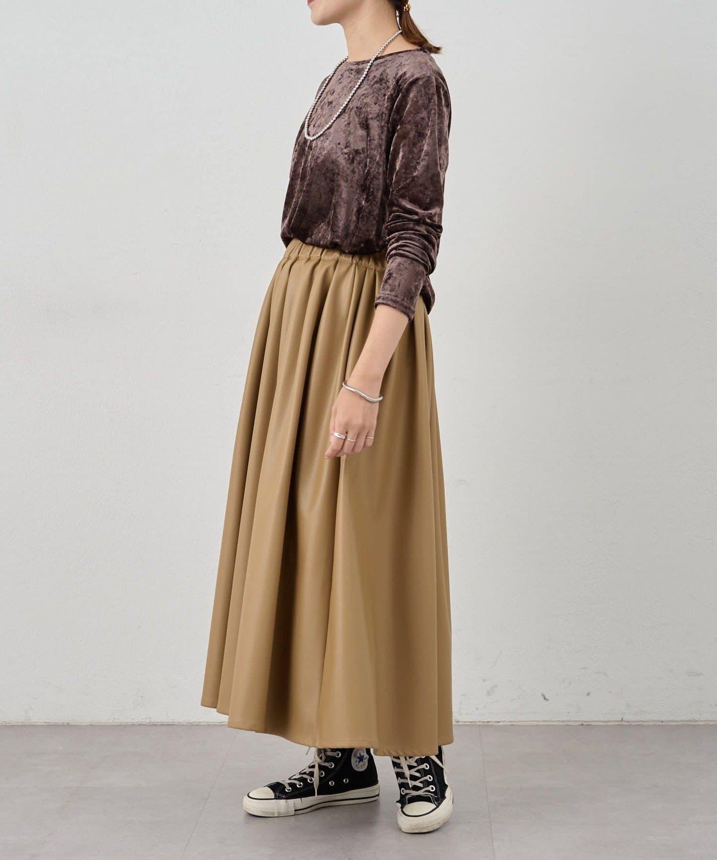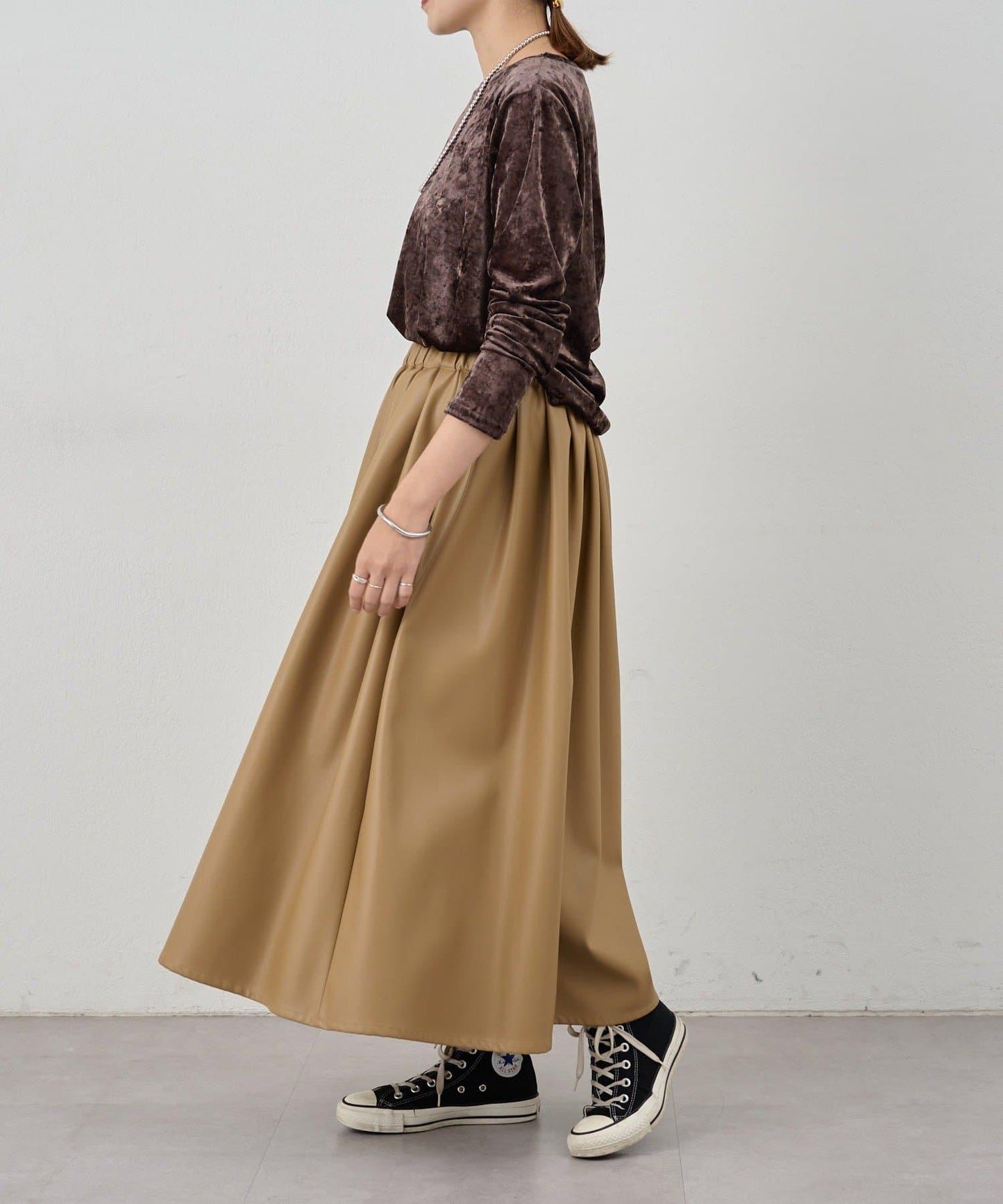 裙襬收攏,輪廓豐盈。