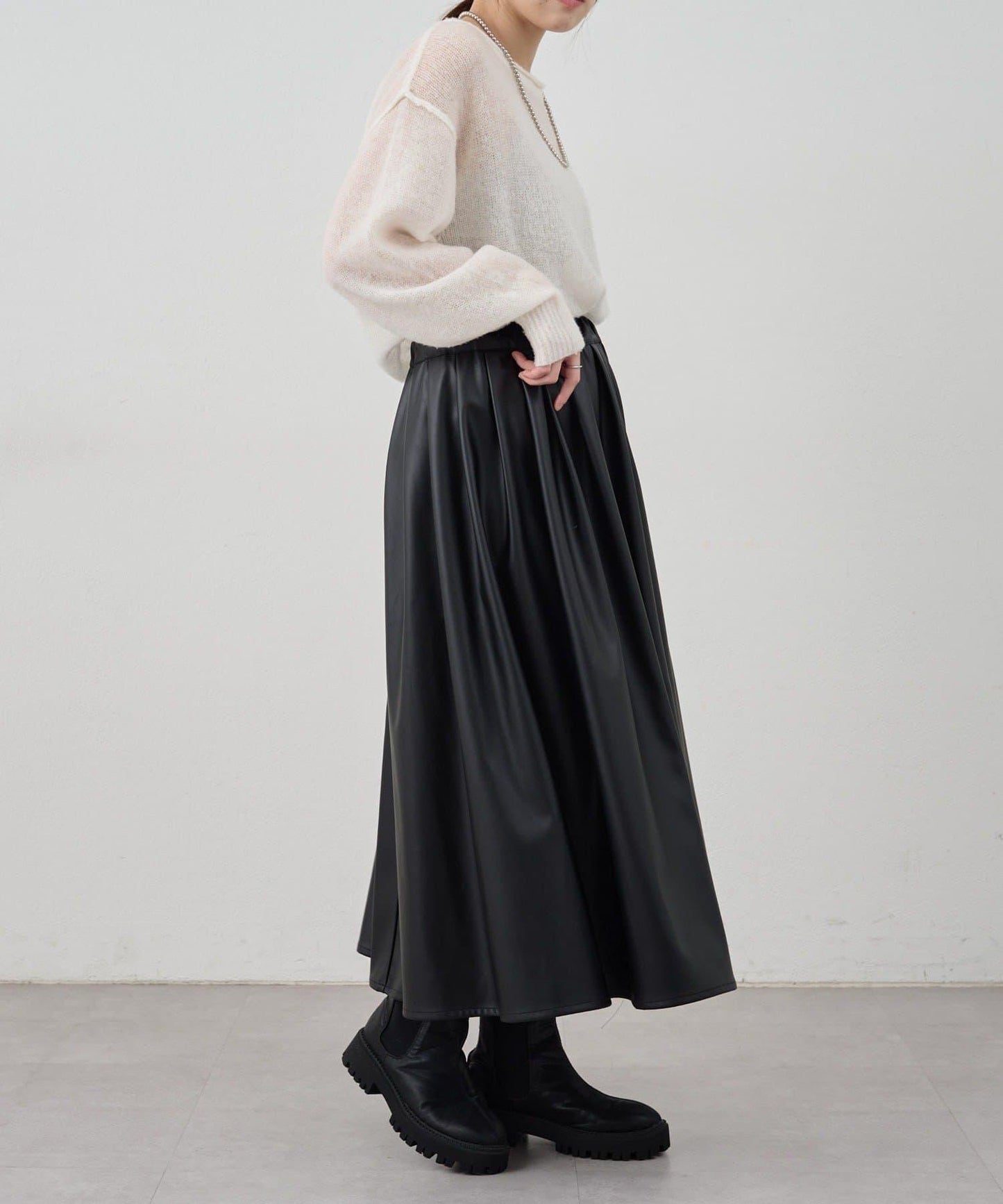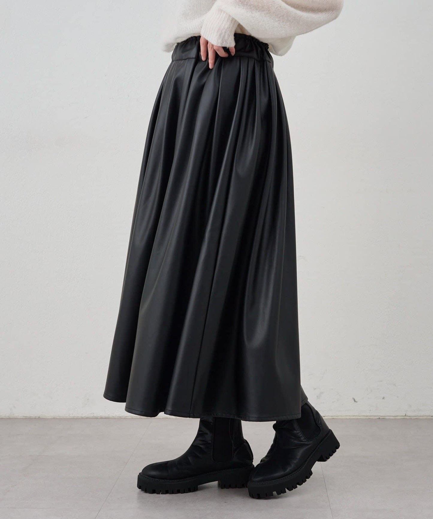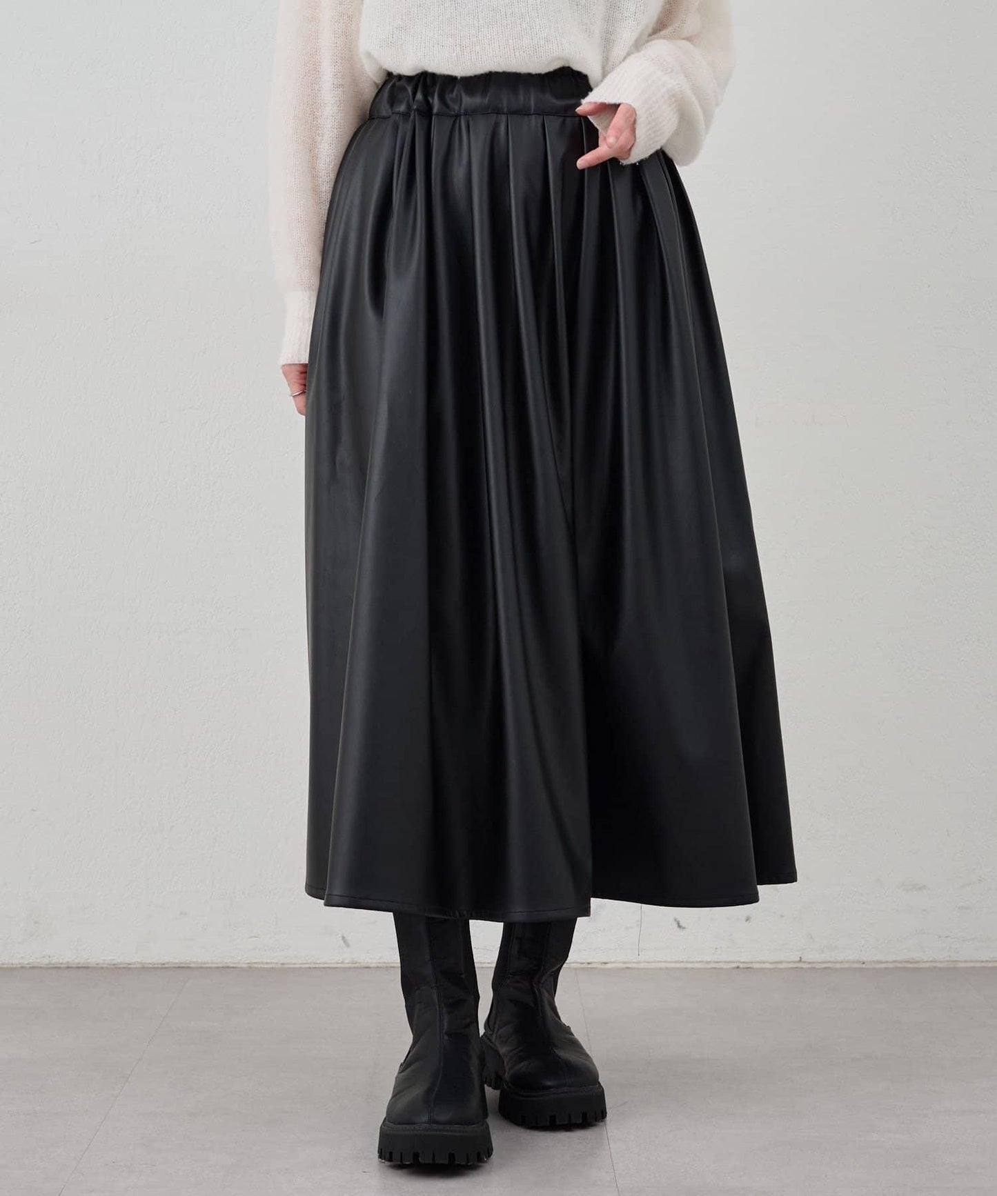 皮革褶皺半身裙