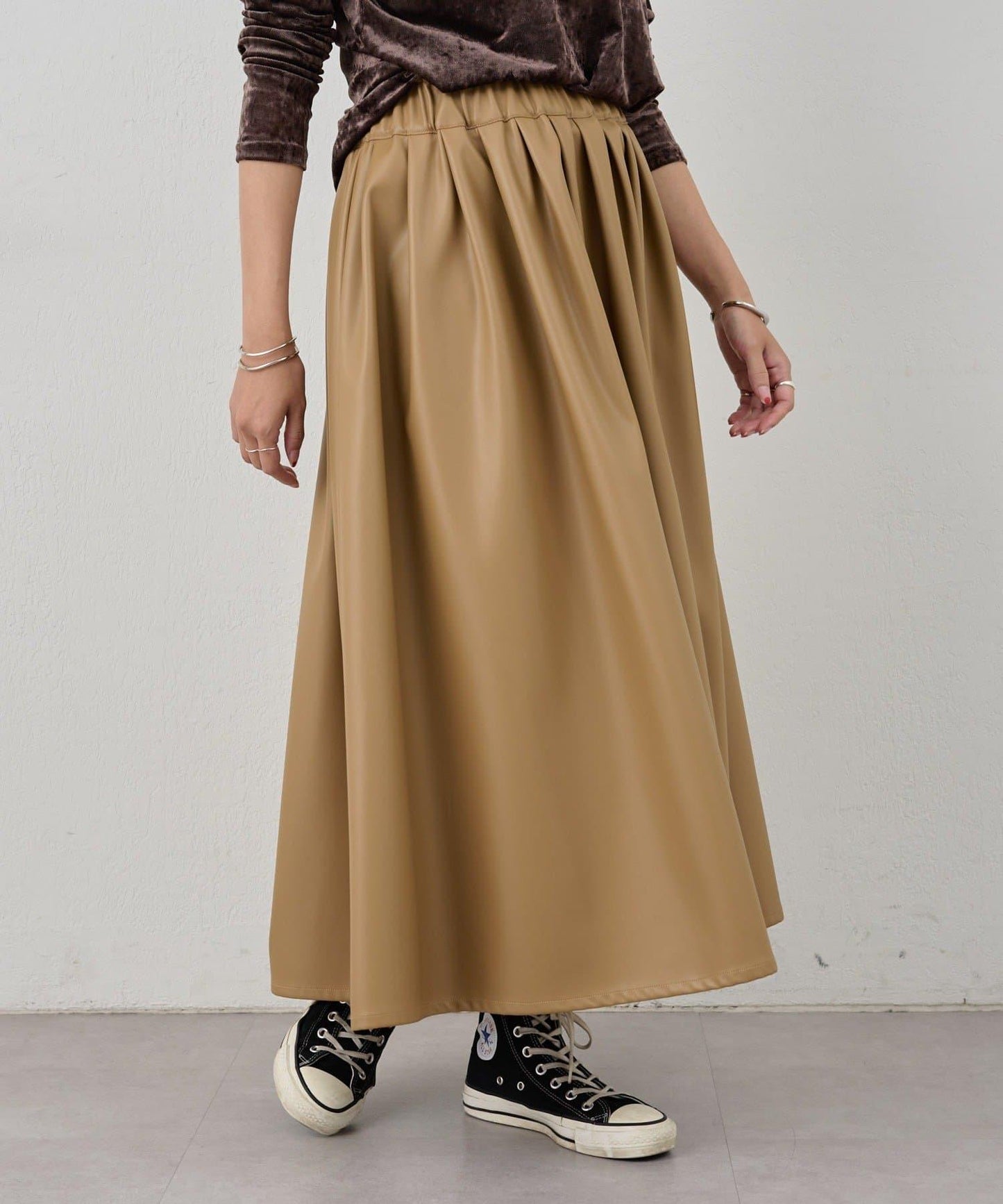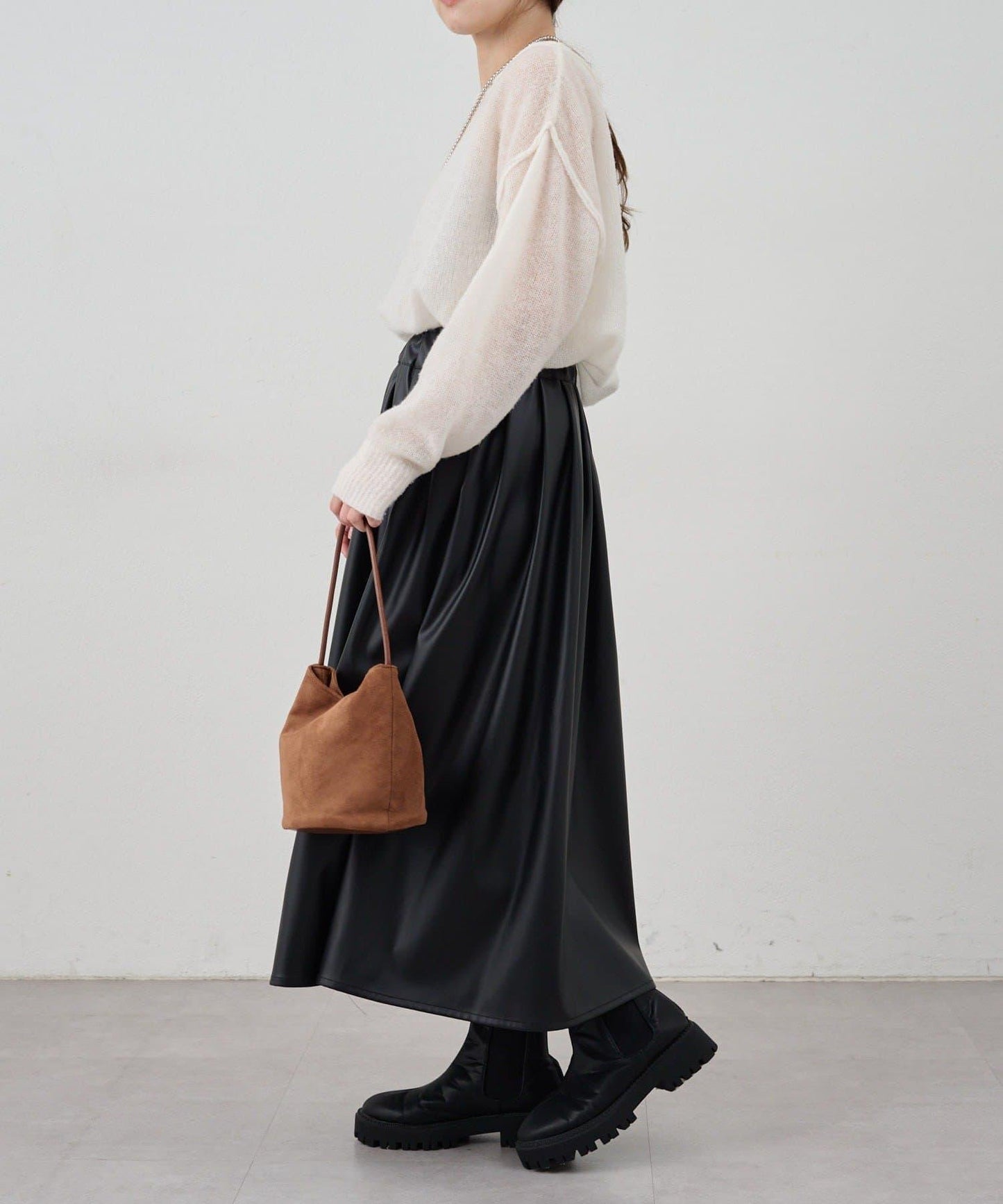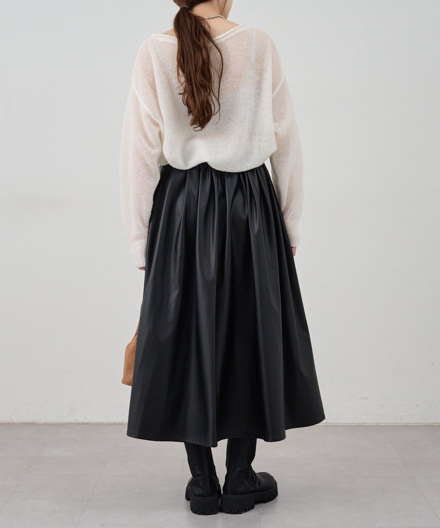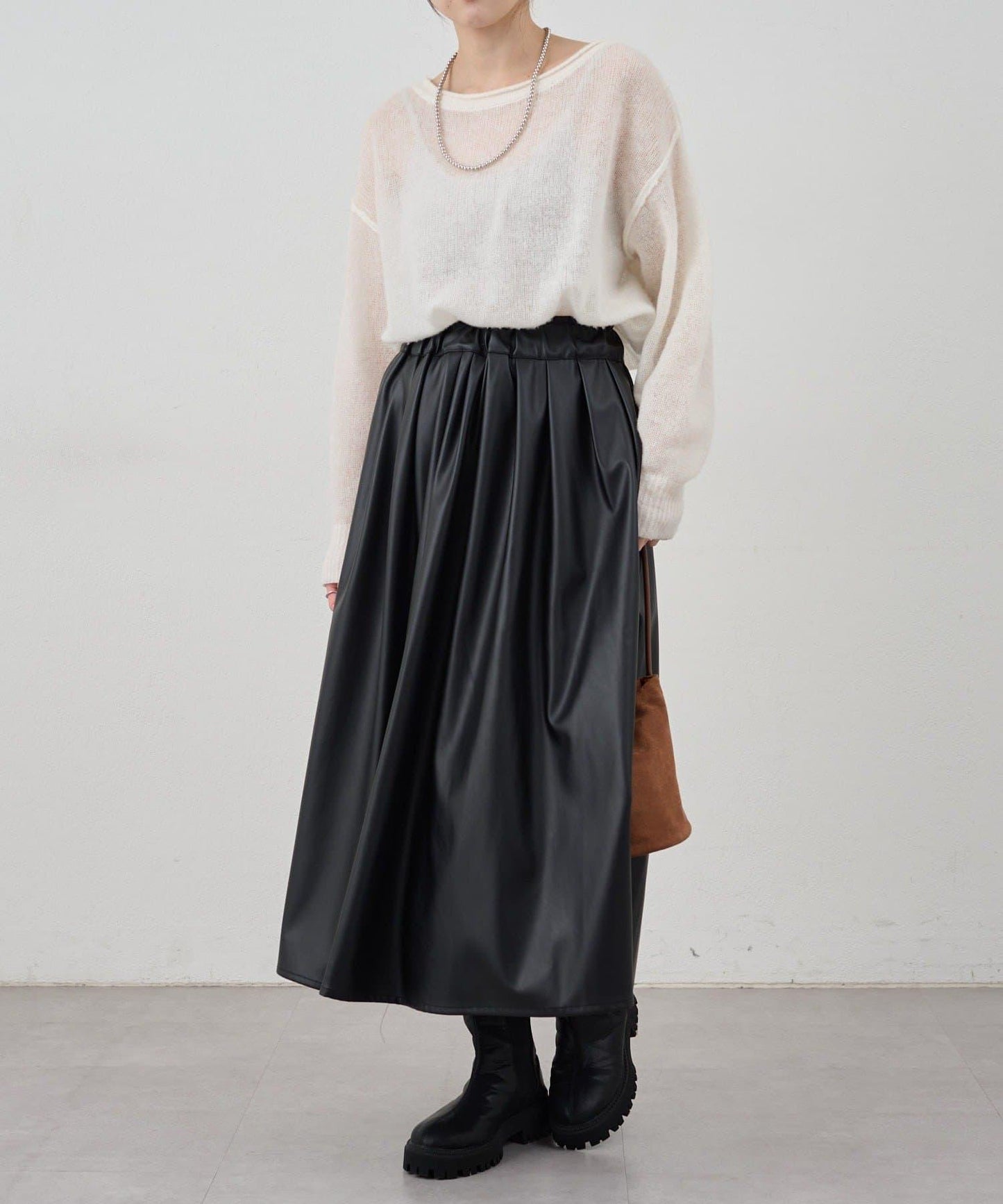 皮革褶皺半身裙