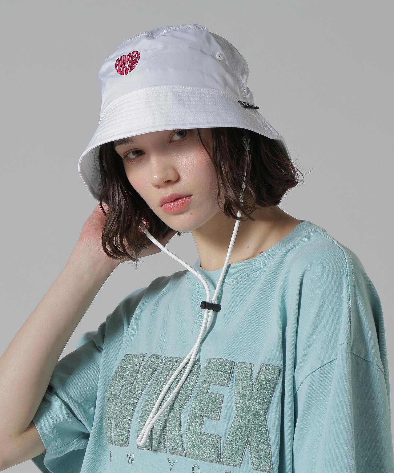 2025 春夏季單品 HEART LOGO HAT - 輕盈面料 - 心形刺繡代表 AVIREX。帽繩可拆卸。有三種顏色可供選擇:基本白色、黑色和紫色,是時尚配色的完美選擇。AVIREX WOMAN] 該系列將純正軍裝的功能性和設計感投射到女性休閒裝上。作為一個具有個性和永恆性的女裝品牌,它為聰明、自由、好奇、端莊、活潑的成年職業女性提供女式休閒裝。