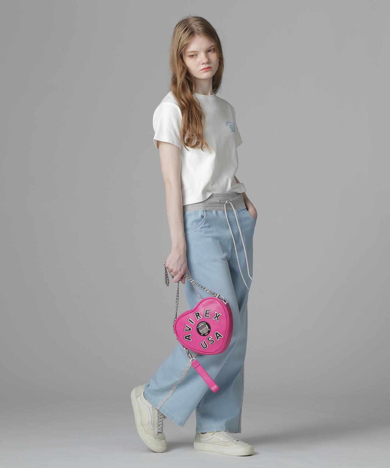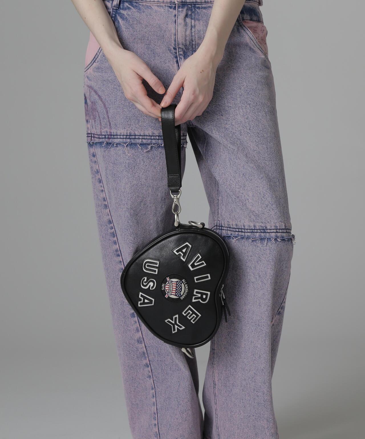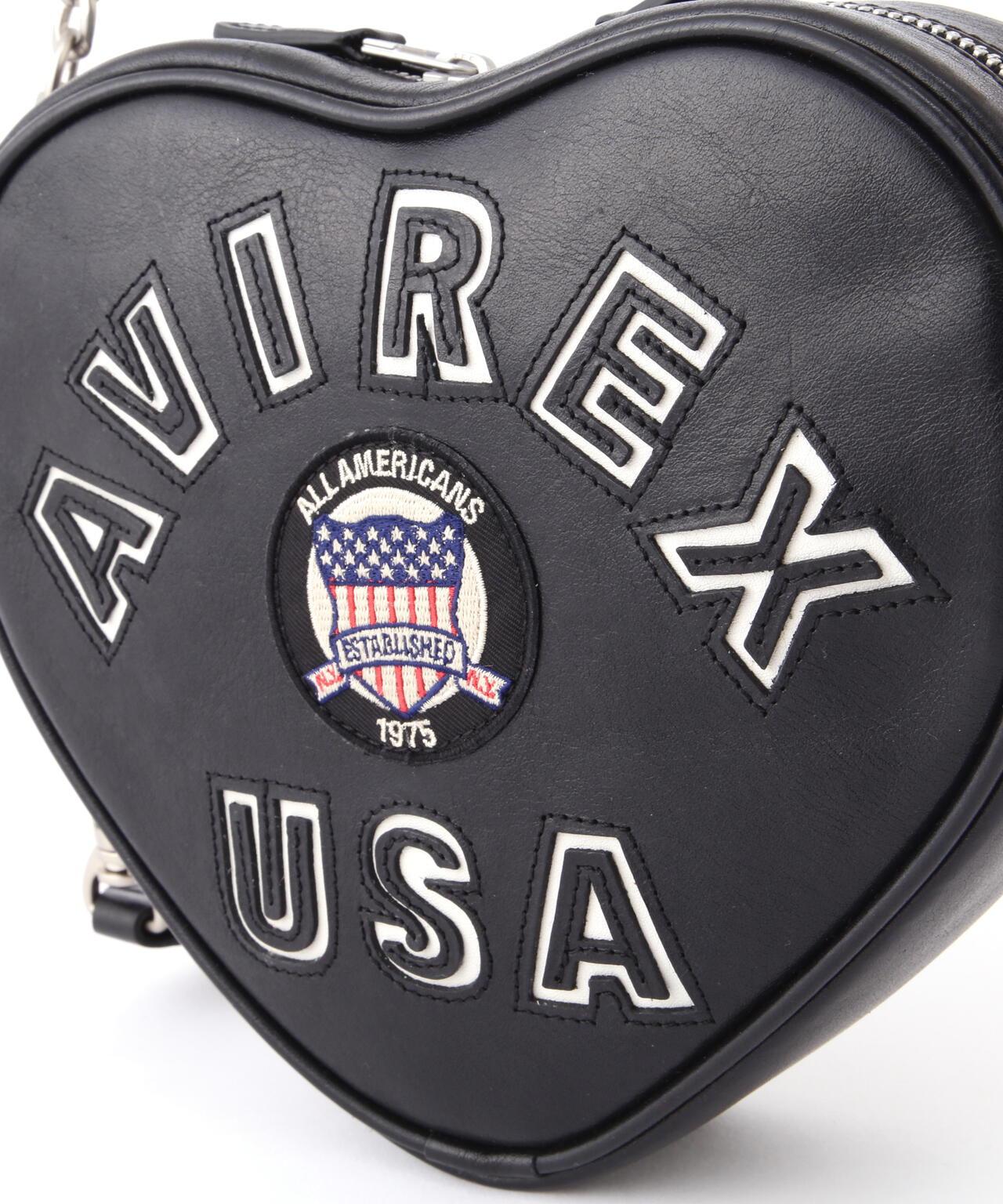 STANDARD ITEM/VARSITY HEART CHAIN BAG - 心形圖案源自大受歡迎的 VARSITY LEATHER BAG - 肩部鏈條時尚,可無肩帶使用 - 內有三個小隔層。AVIREX WOMAN] 該系列將純正軍裝的功能性和設計感投射到女士休閒裝上。作為一個獨特而永恆的女裝品牌,它為聰明、自由、好奇、端莊、活潑的成年職業女性提供女式休閒裝。