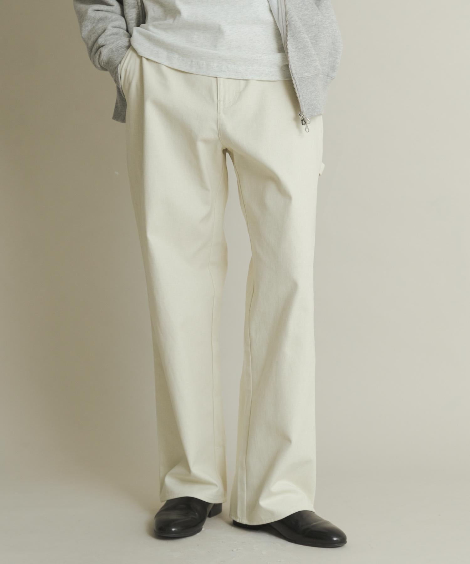 這是一條精緻的彩繪長褲,給人一種休閒的印象,採用了極簡風格的色調縫線。