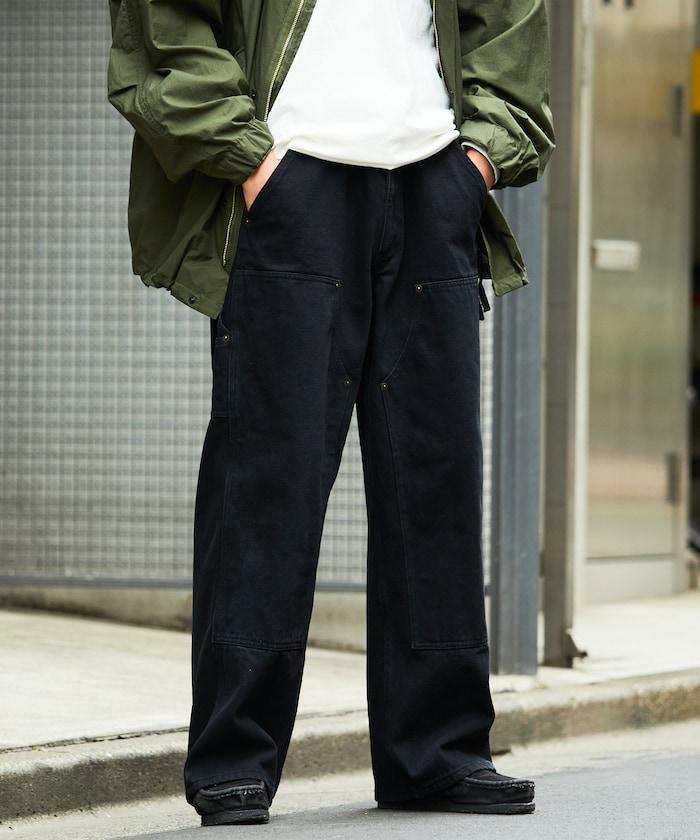 直筒廓形的雙膝牛仔長褲,整體呈彎折狀。