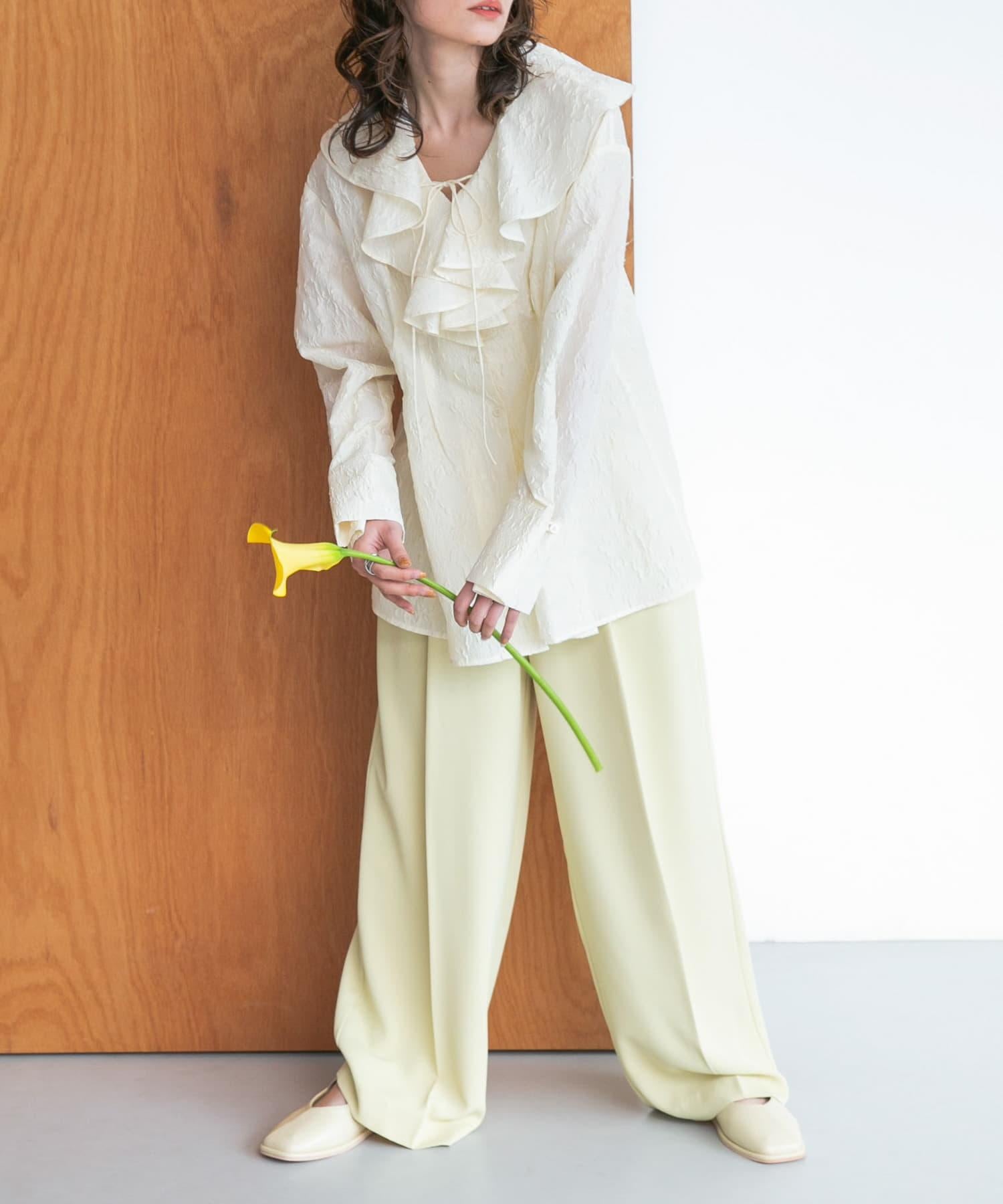 可與開袖無領夾克(KBA4-27F060)搭配作為套裝穿著,也可搭配漂亮的上衣偶爾出席一些場合。與設計感強的上衣也是很好的搭配。此外,它還非常適合入場式、畢業典禮等正式場合以及辦公室著裝,根據搭配的單品,它也非常適合日常穿著。