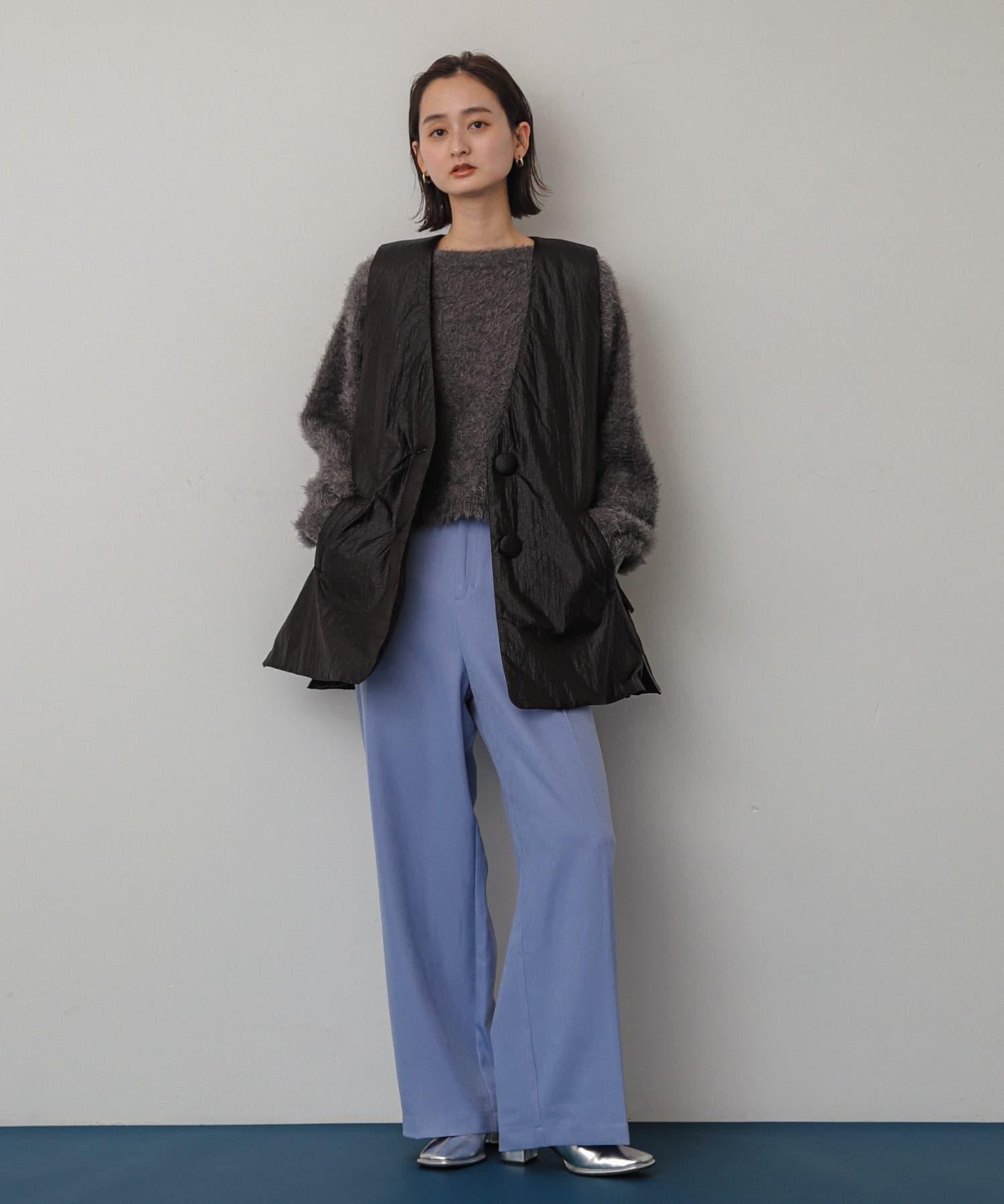 這款產品可作為上衣搭配羅紋內搭,內搭可為板型或龜型,也可作為輕便外衣搭配裸褲或連衣裙,甚至可作為外套。柔軟的面料也可作為外衣內搭。