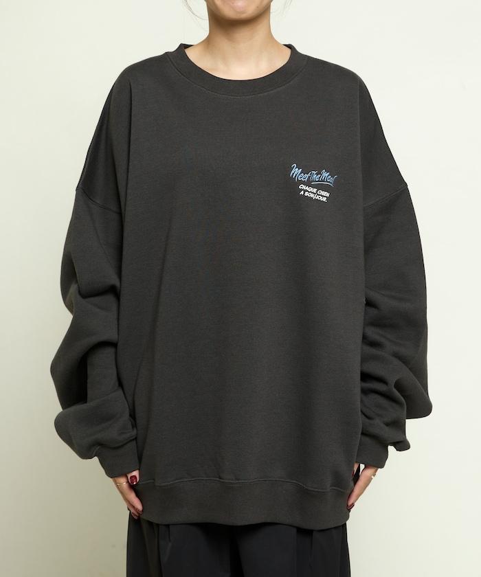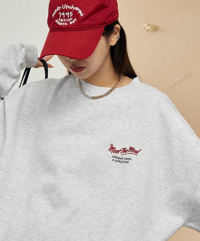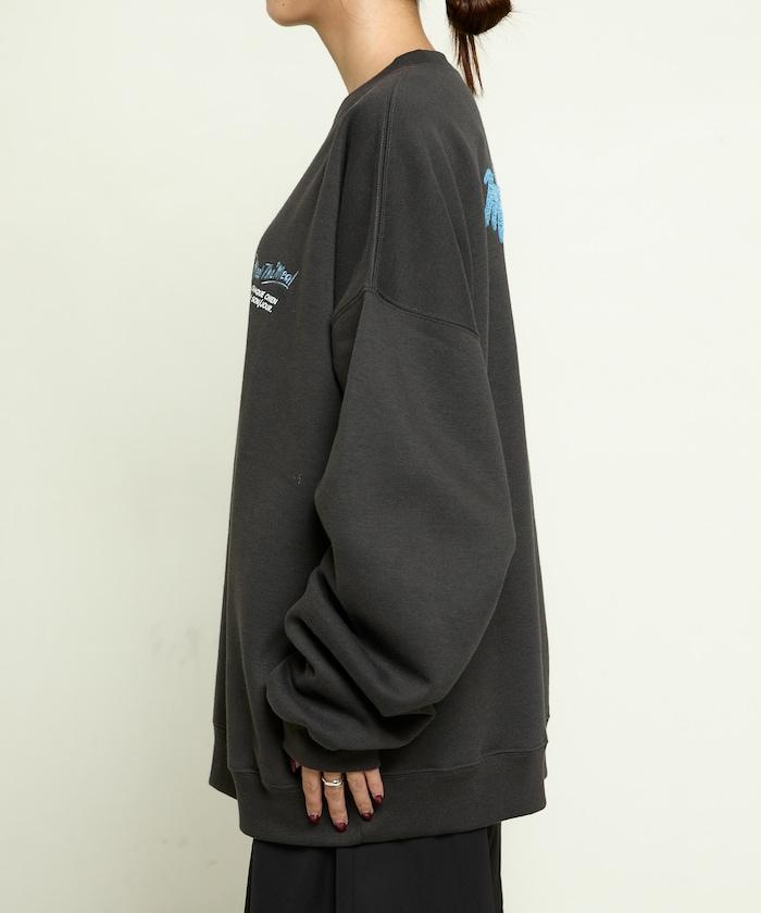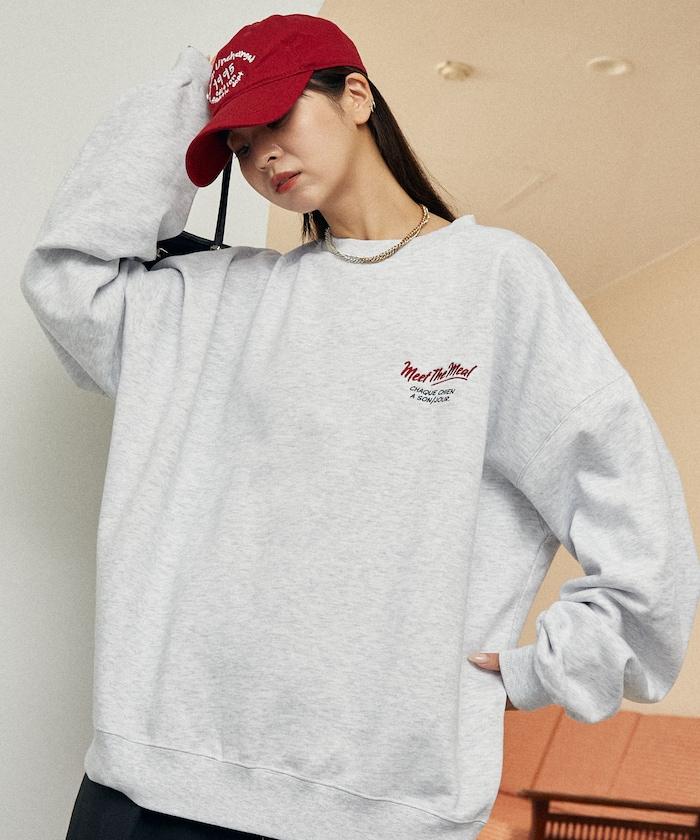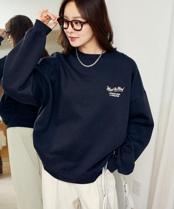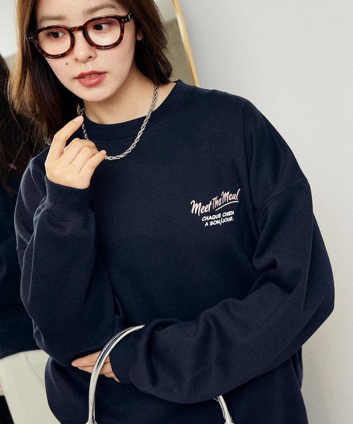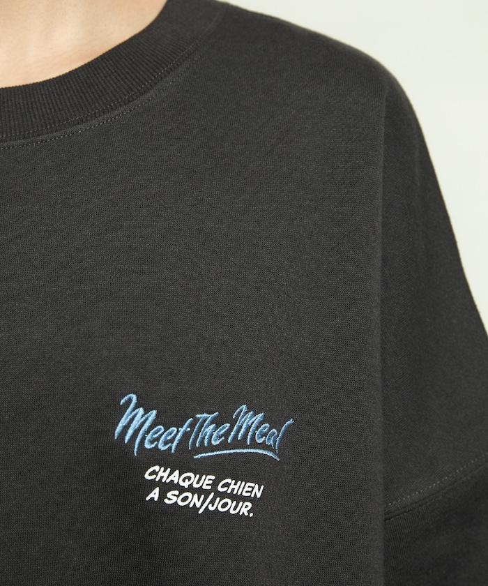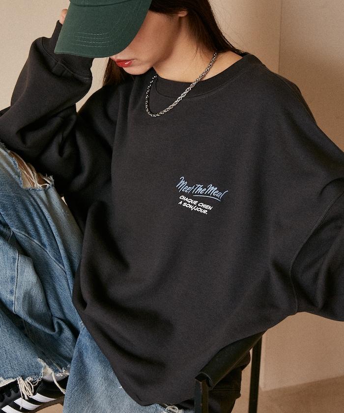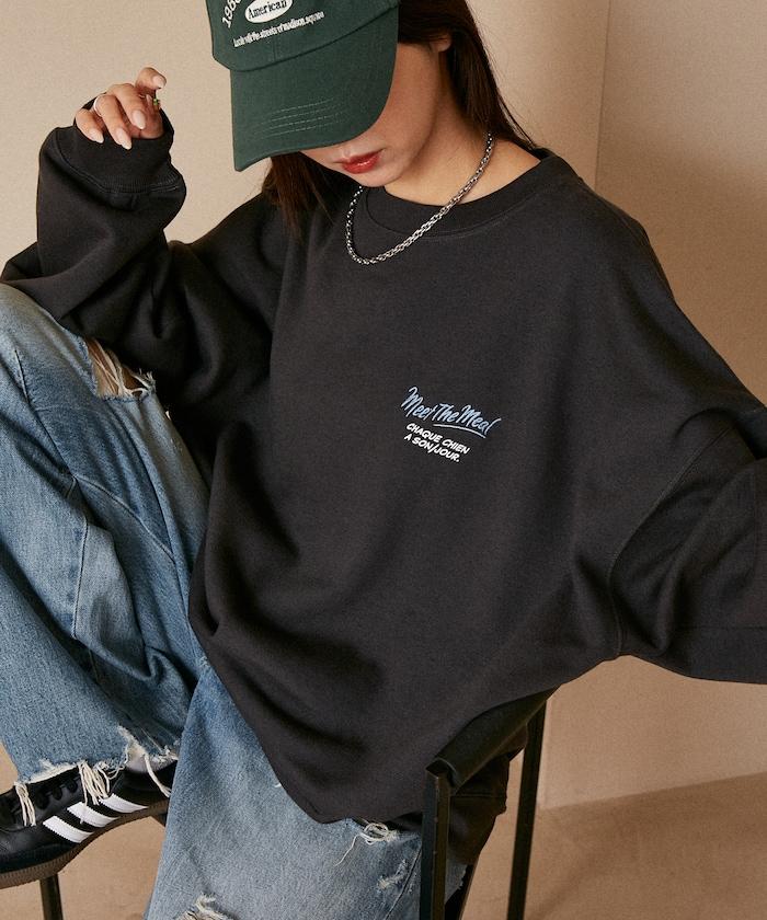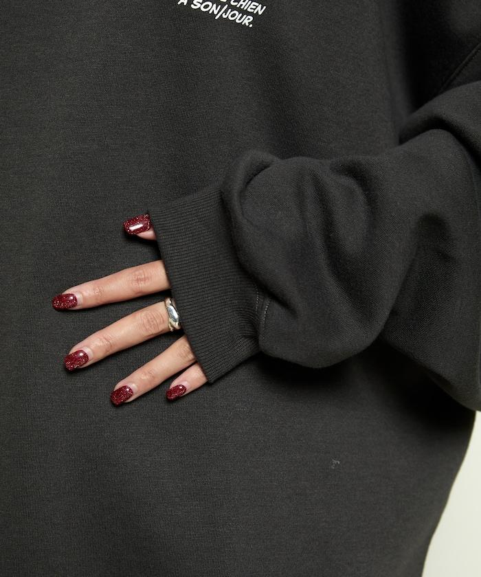 這款圓領運動衫的設計令人印象深刻,背部的法國鬥牛犬動物印花與相良刺繡的英文字母相結合。