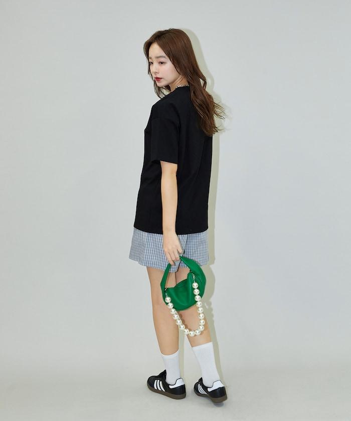 帶有可愛的豐滿相良刺繡的超大號 T 恤。