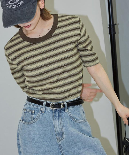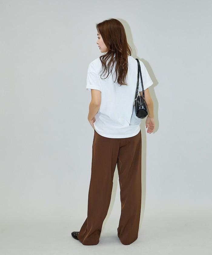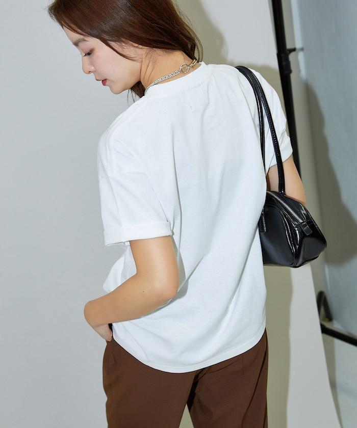 這款 T 恤的長度剛好在臀部以上,略微偏大的廓形不會挑起身體的線條。