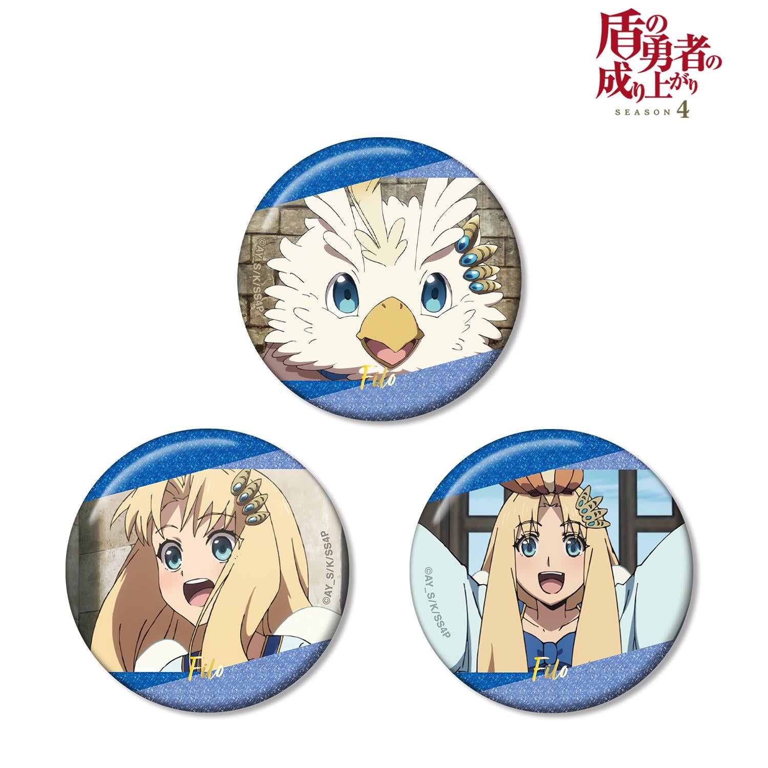 電視動畫片《盾之英雄的崛起 第四季》中的閃亮罐頭徽章一套三個。