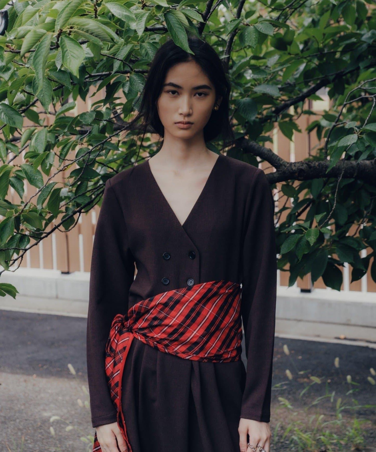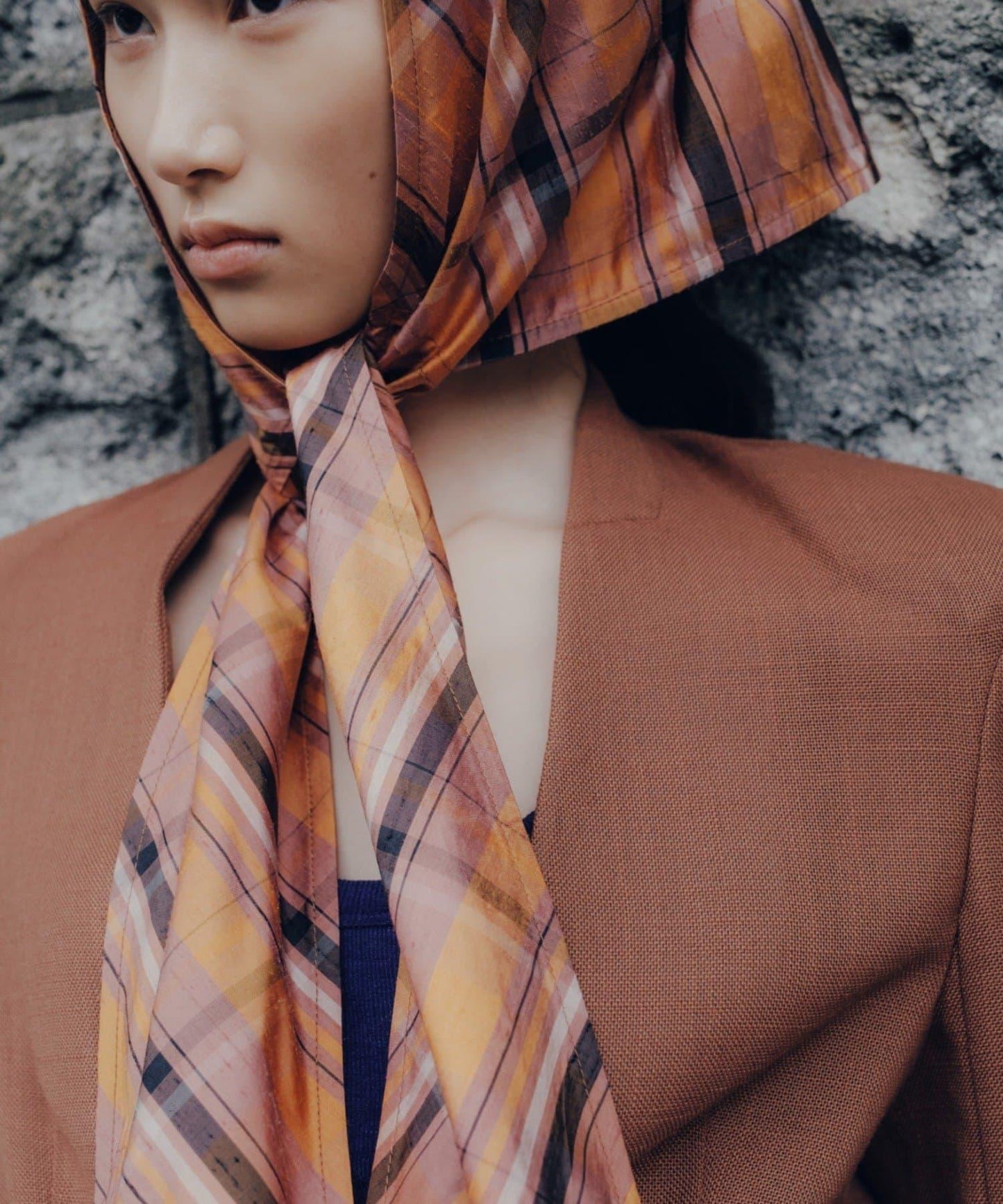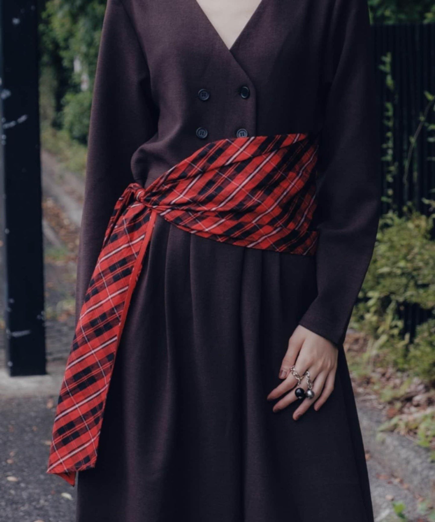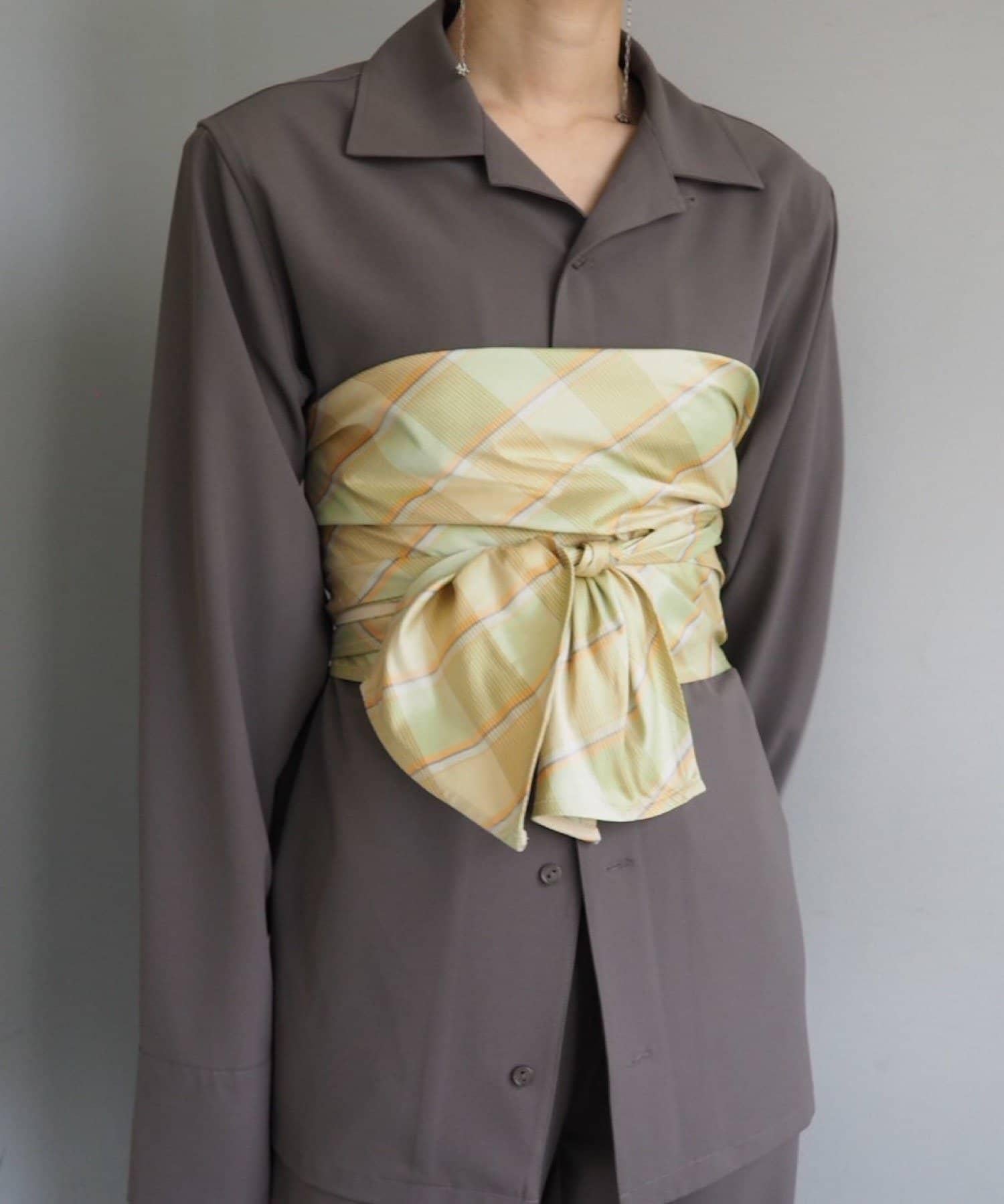 奢華的多向圍巾腰帶由 100% 上等印度絲格紋面料製成。獨特的設計看起來就像圍巾被折成兩半,與寬幅絲帶合二為一。