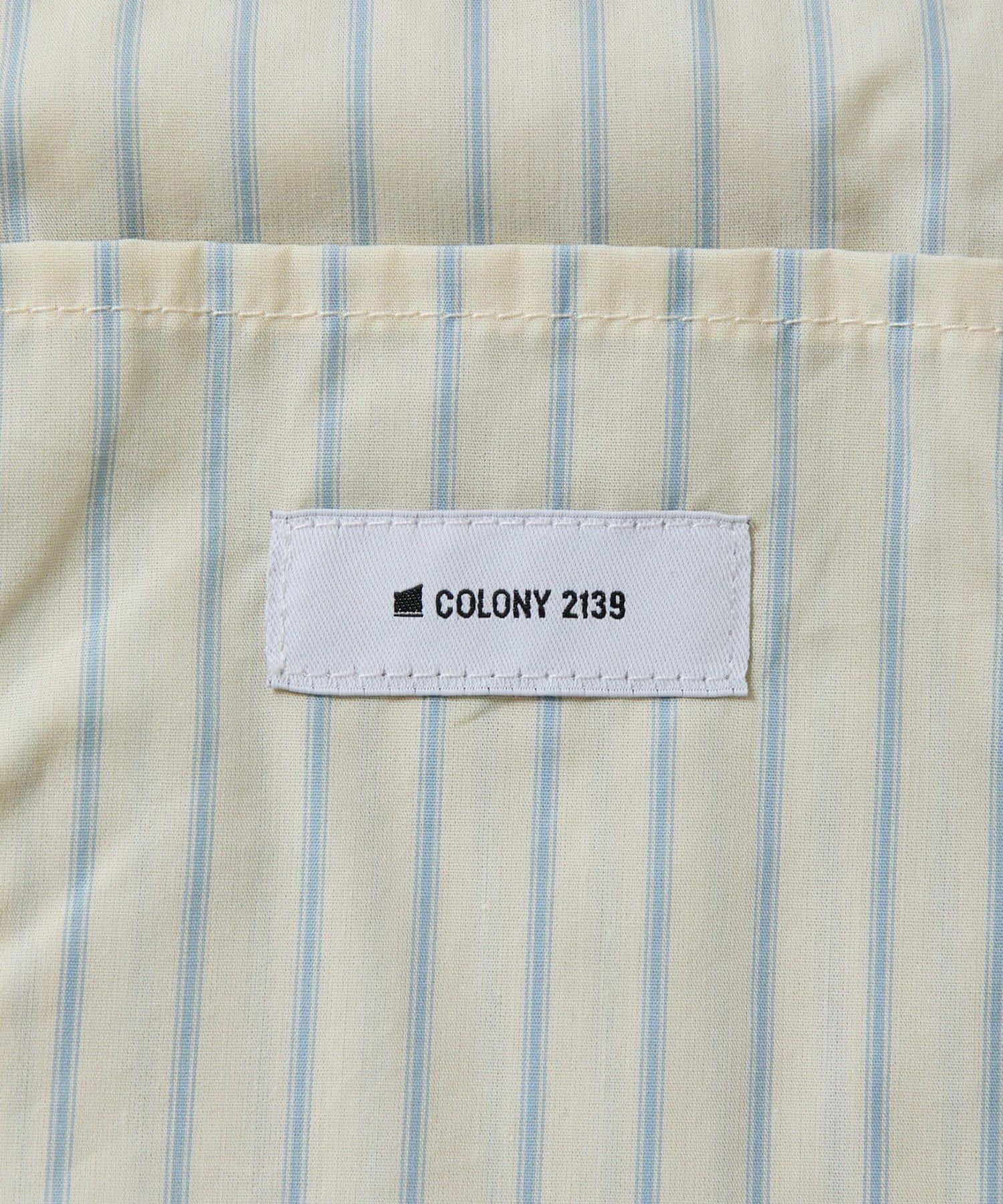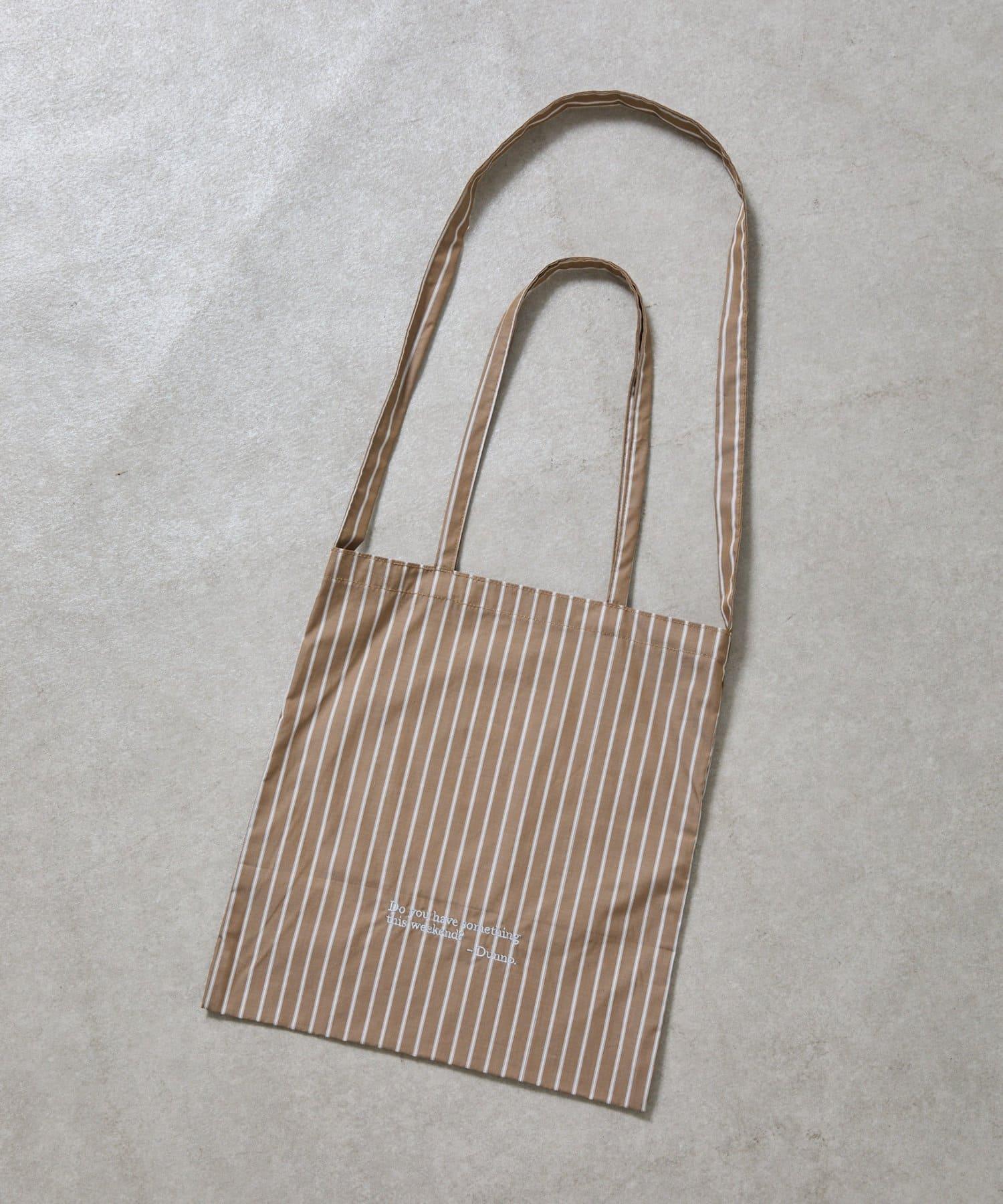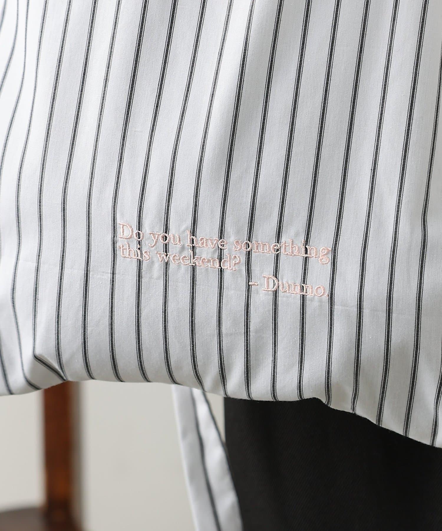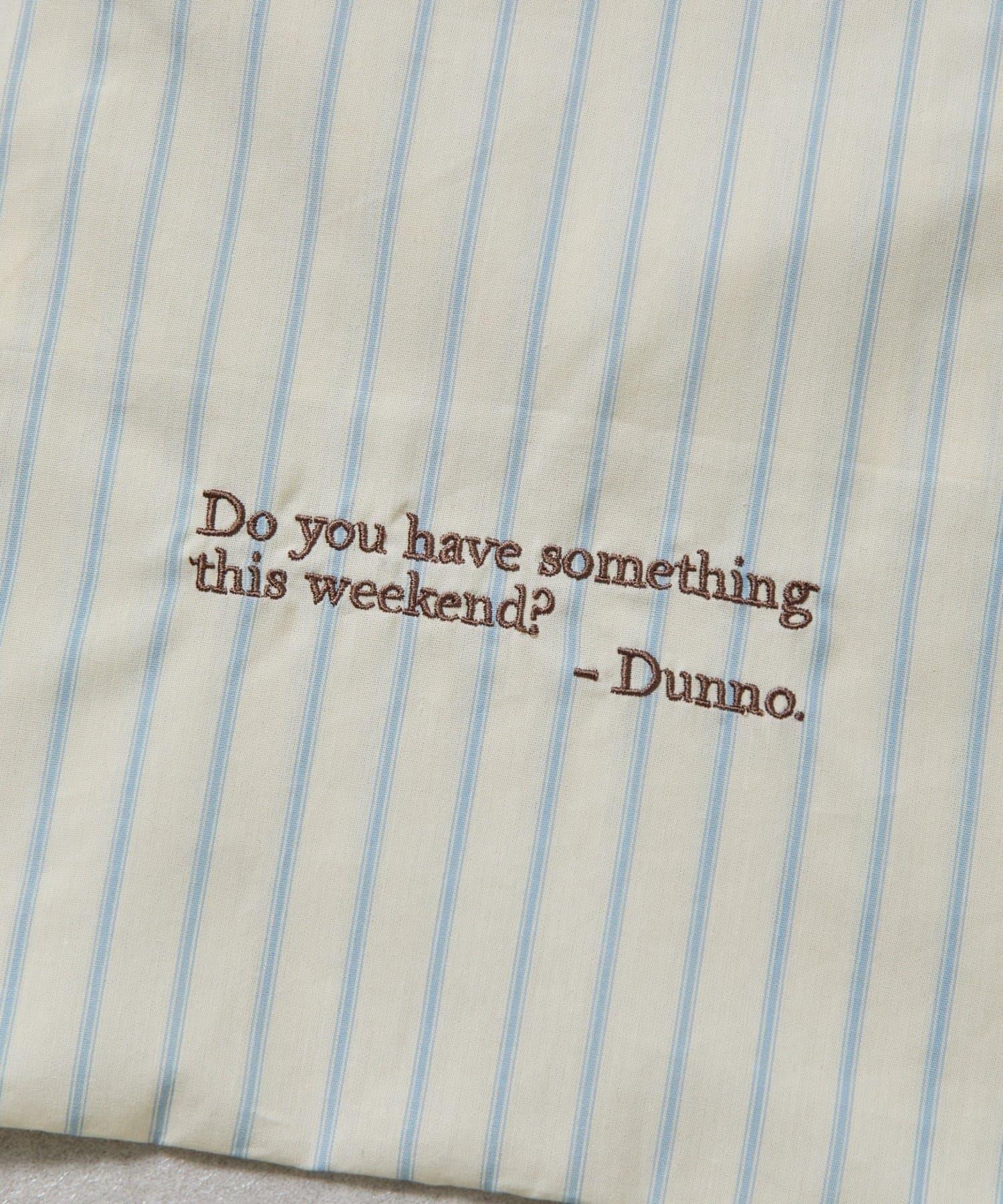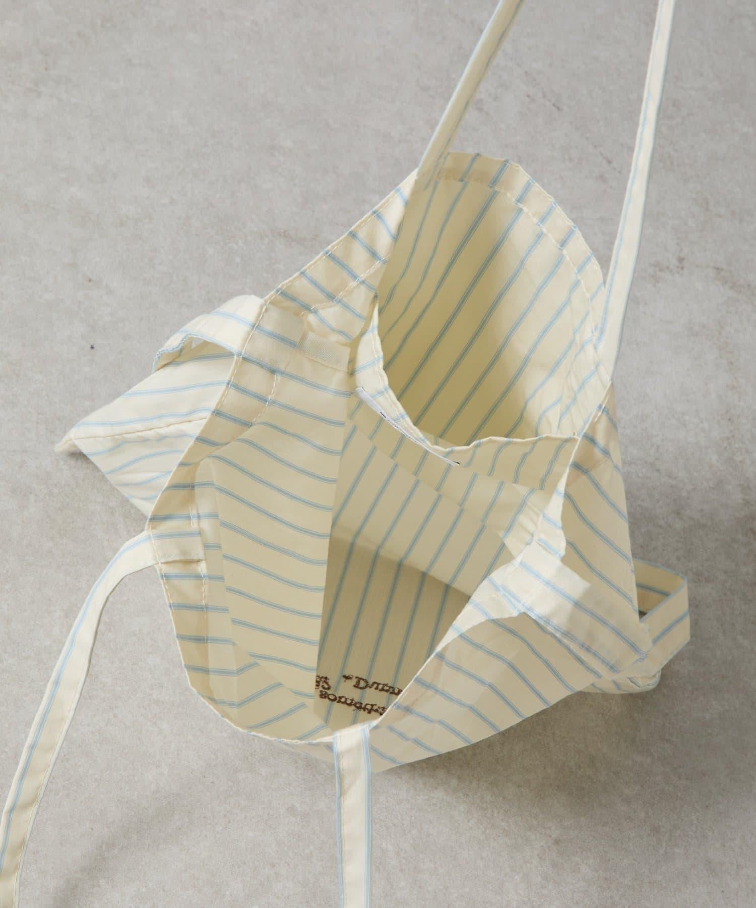 這款手提包採用睡衣般的條紋圖案和精緻的單點刺繡。