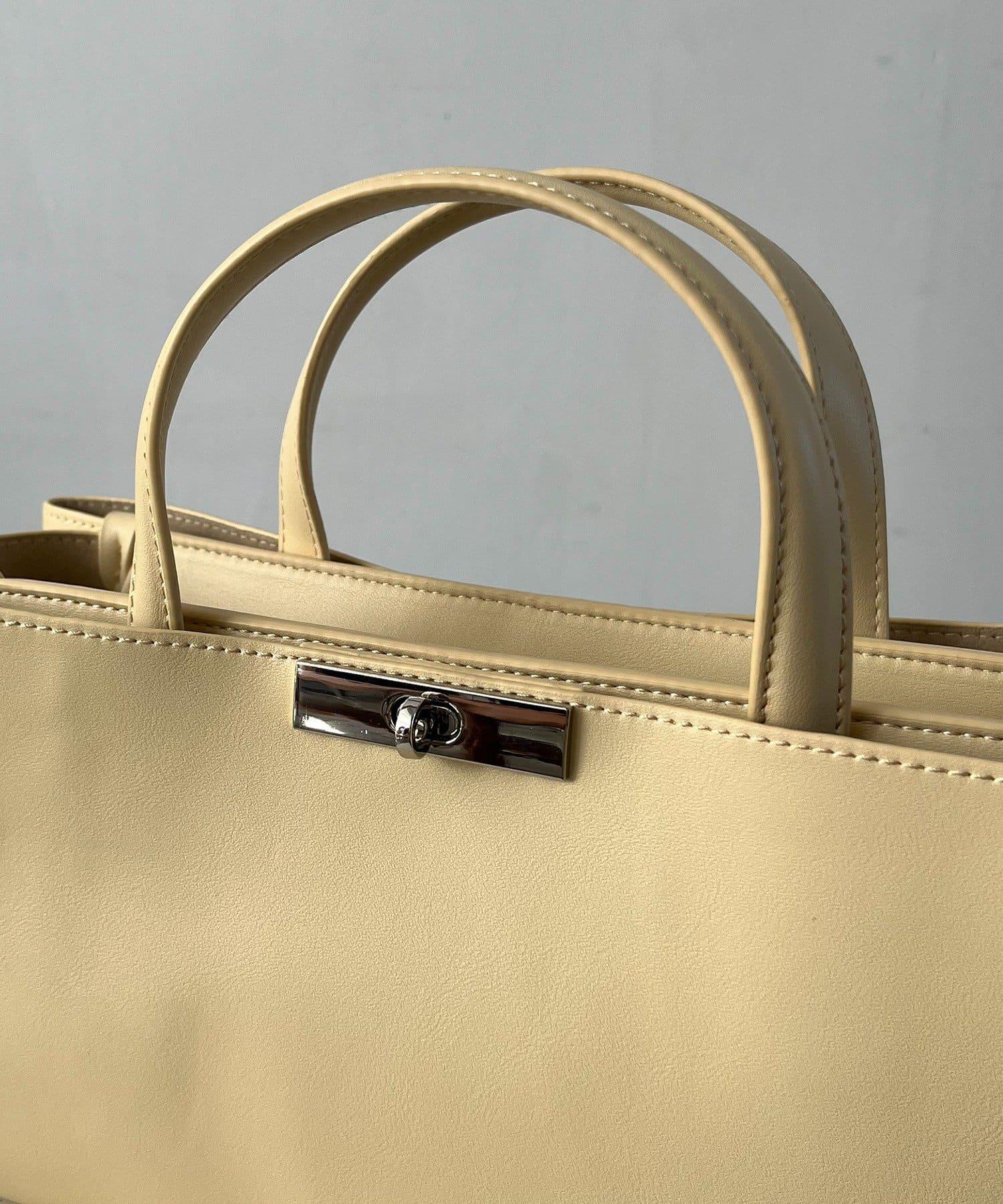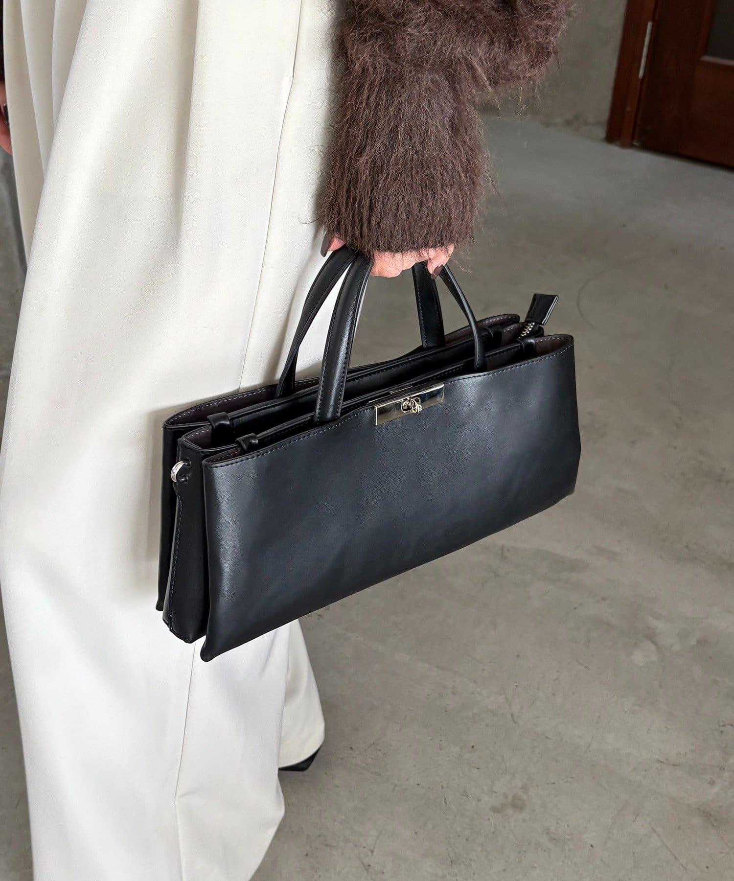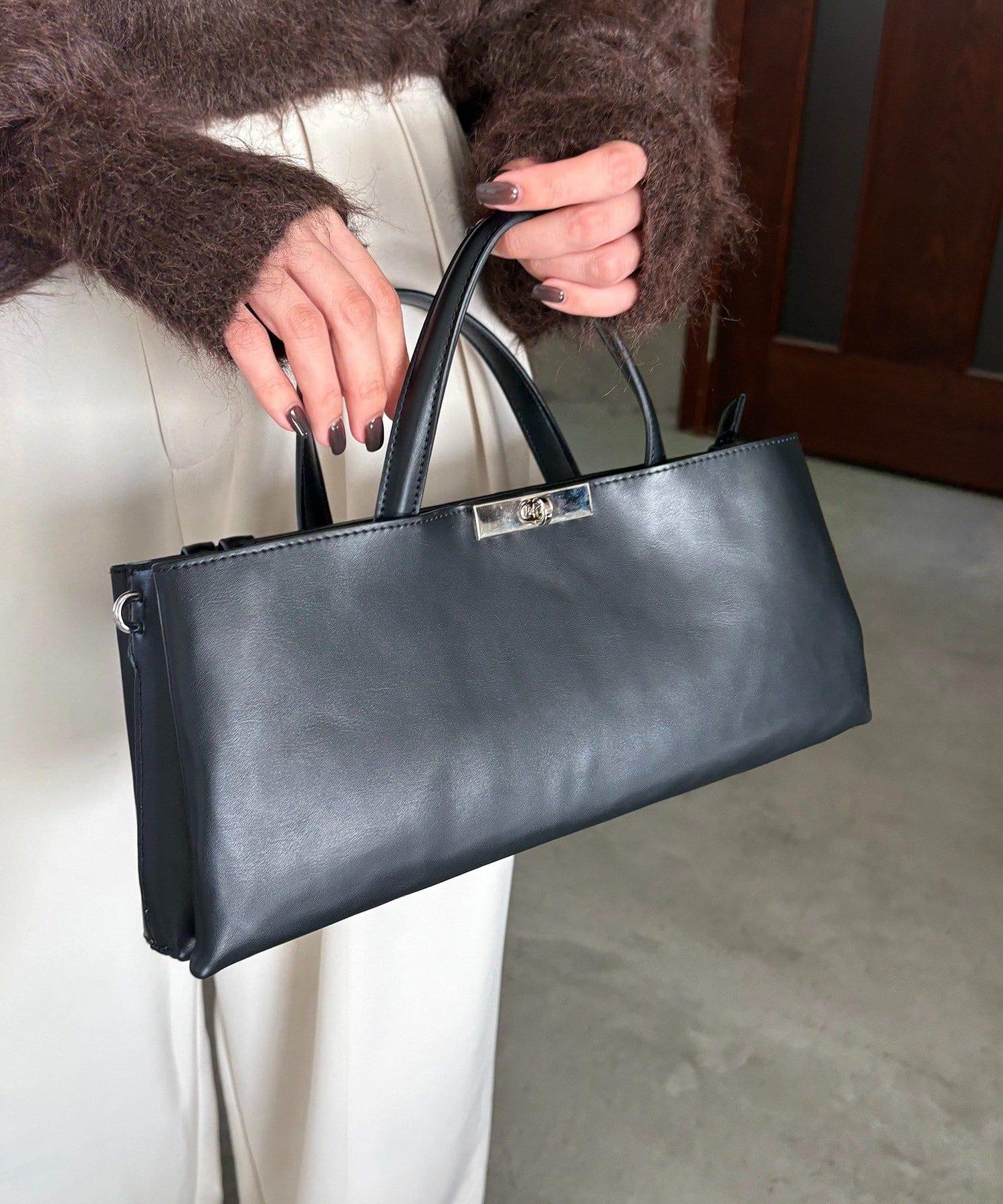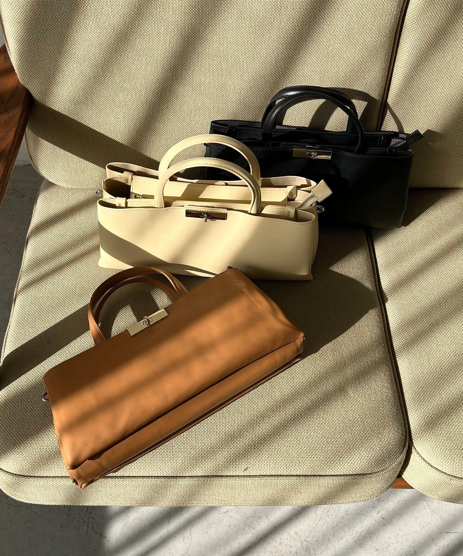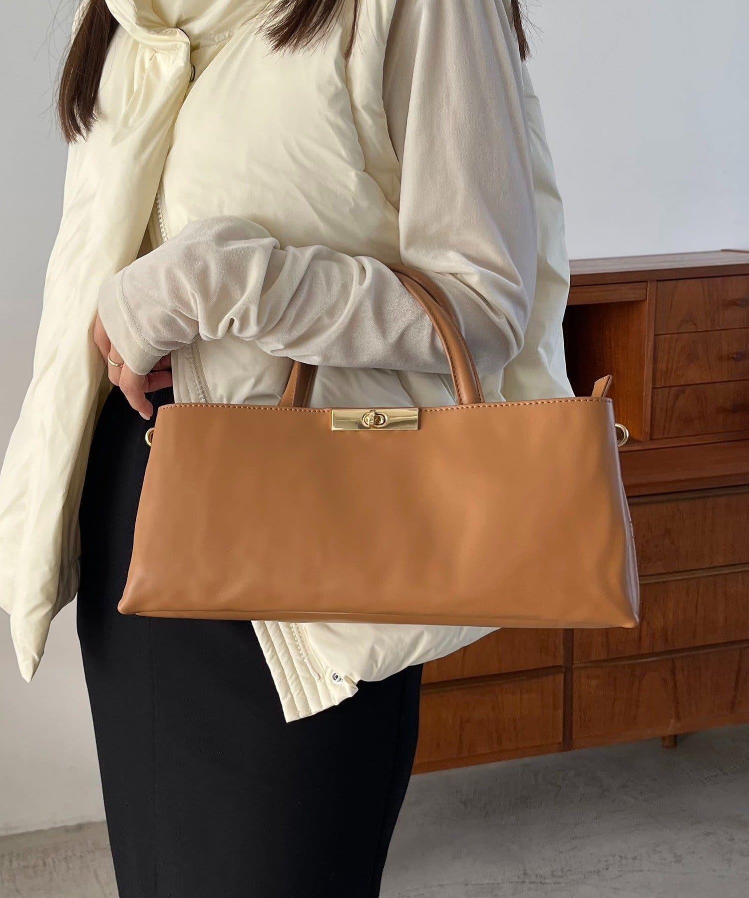 這款手袋採用金色部件打造出水平、優雅的輪廓。