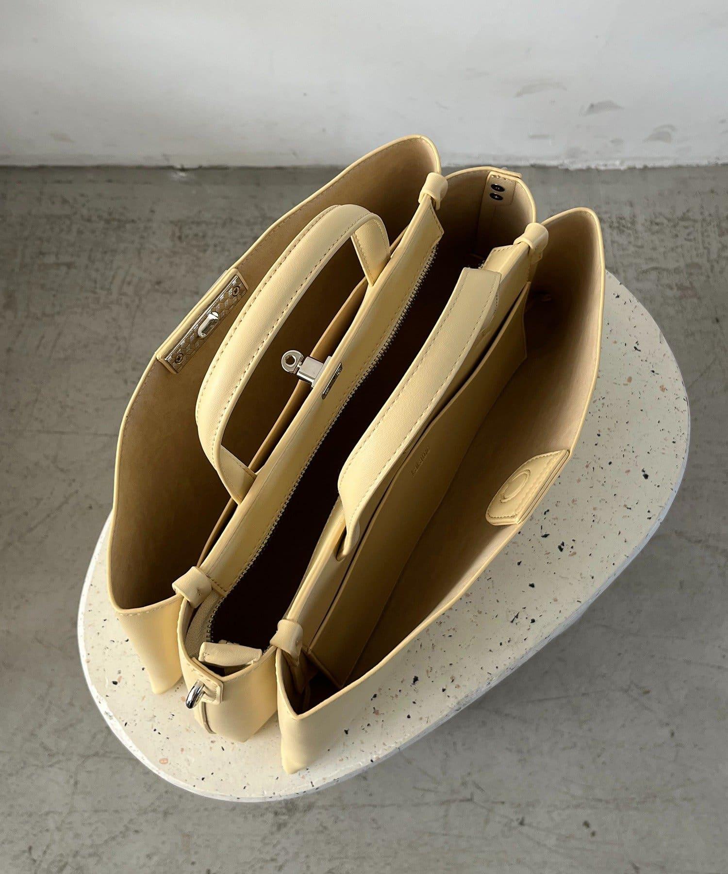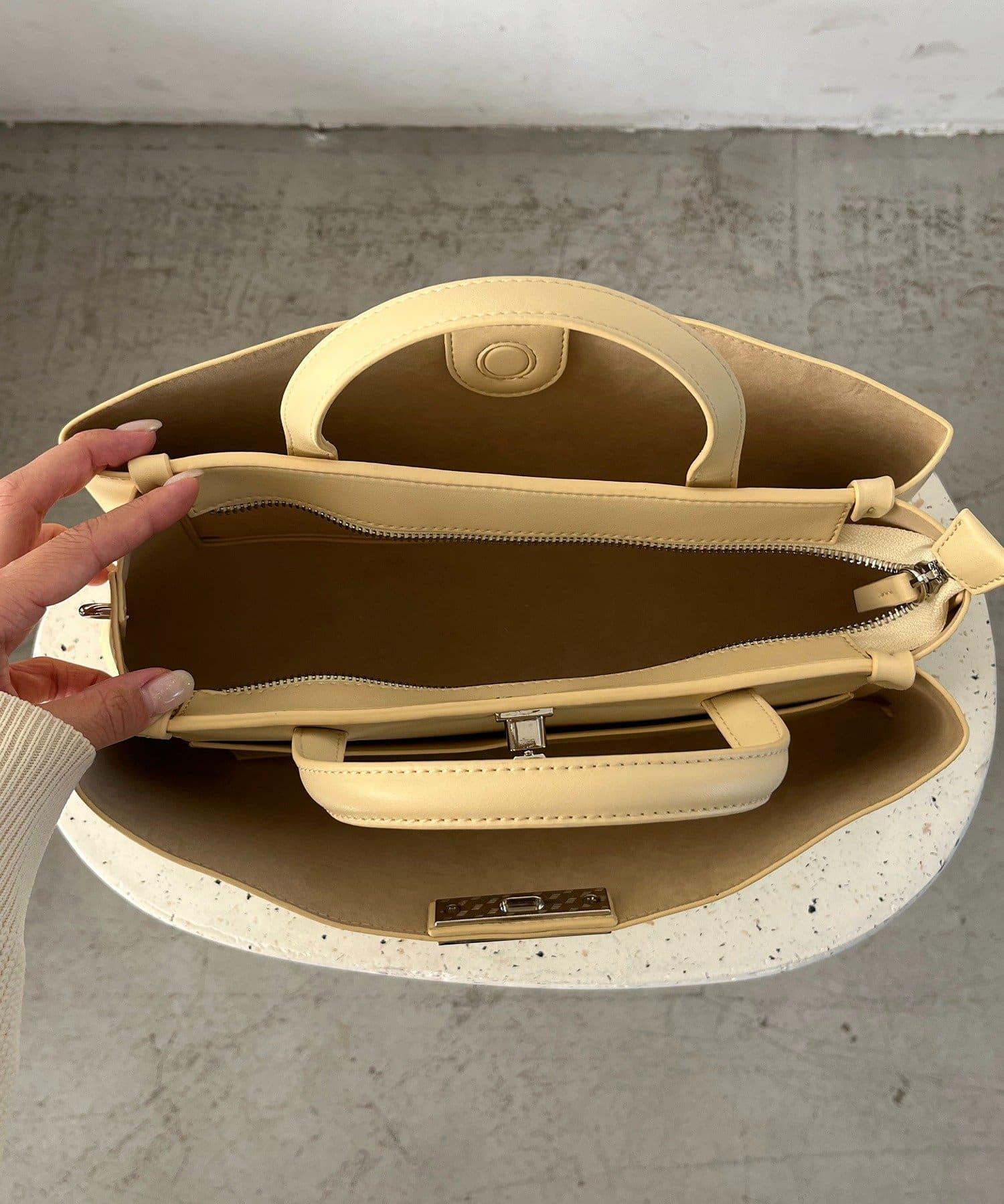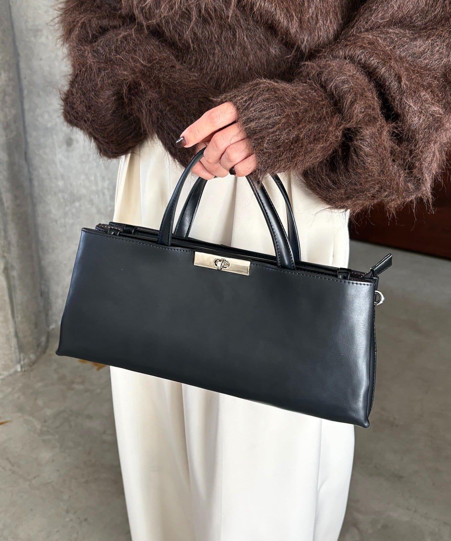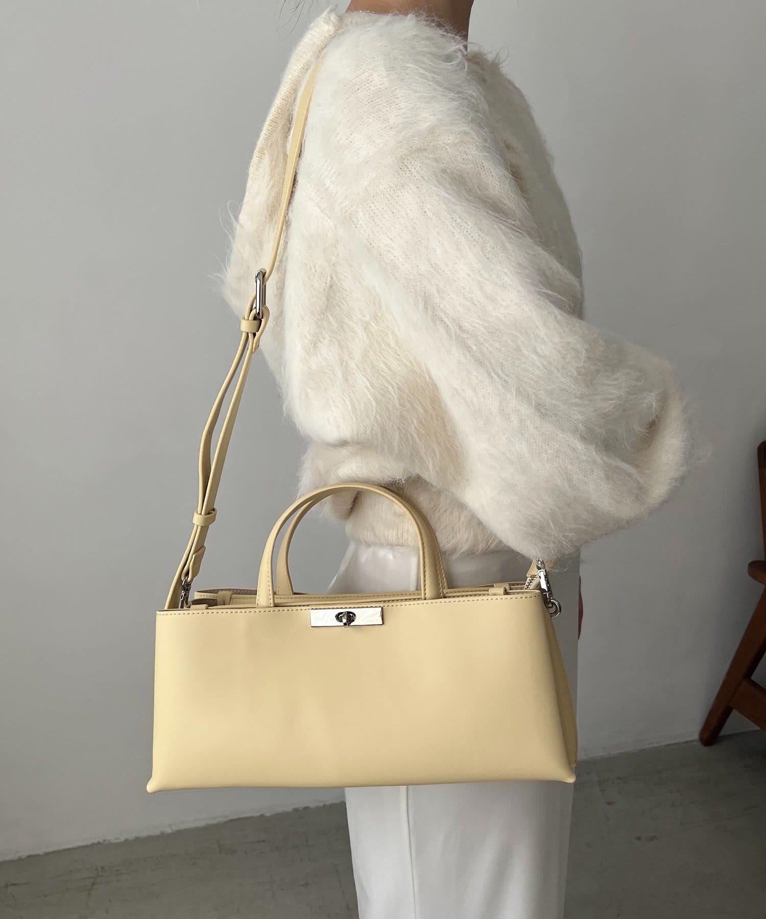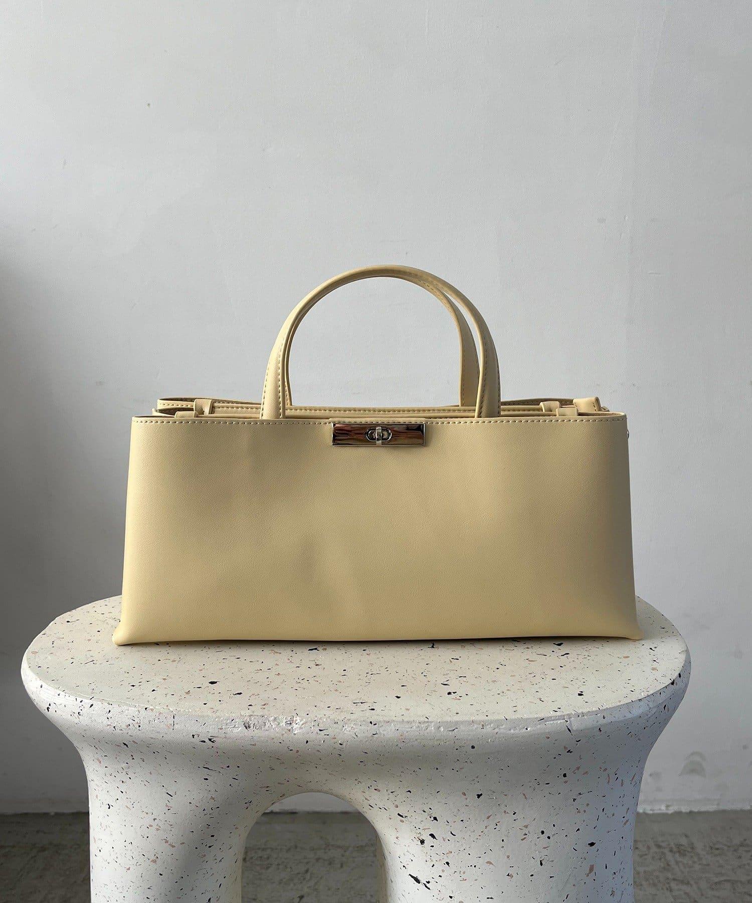 這款手袋採用金色部件打造出水平、優雅的輪廓。