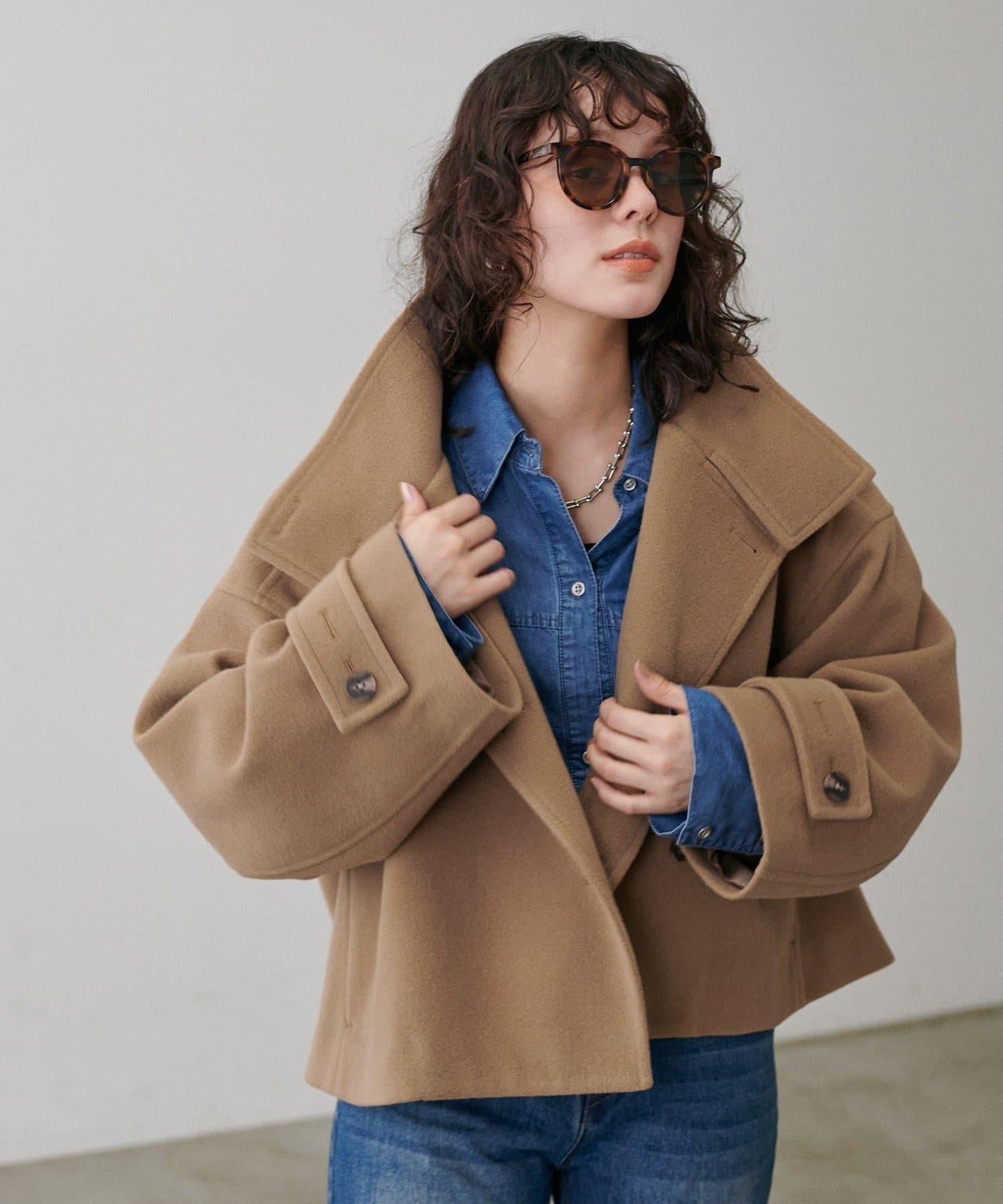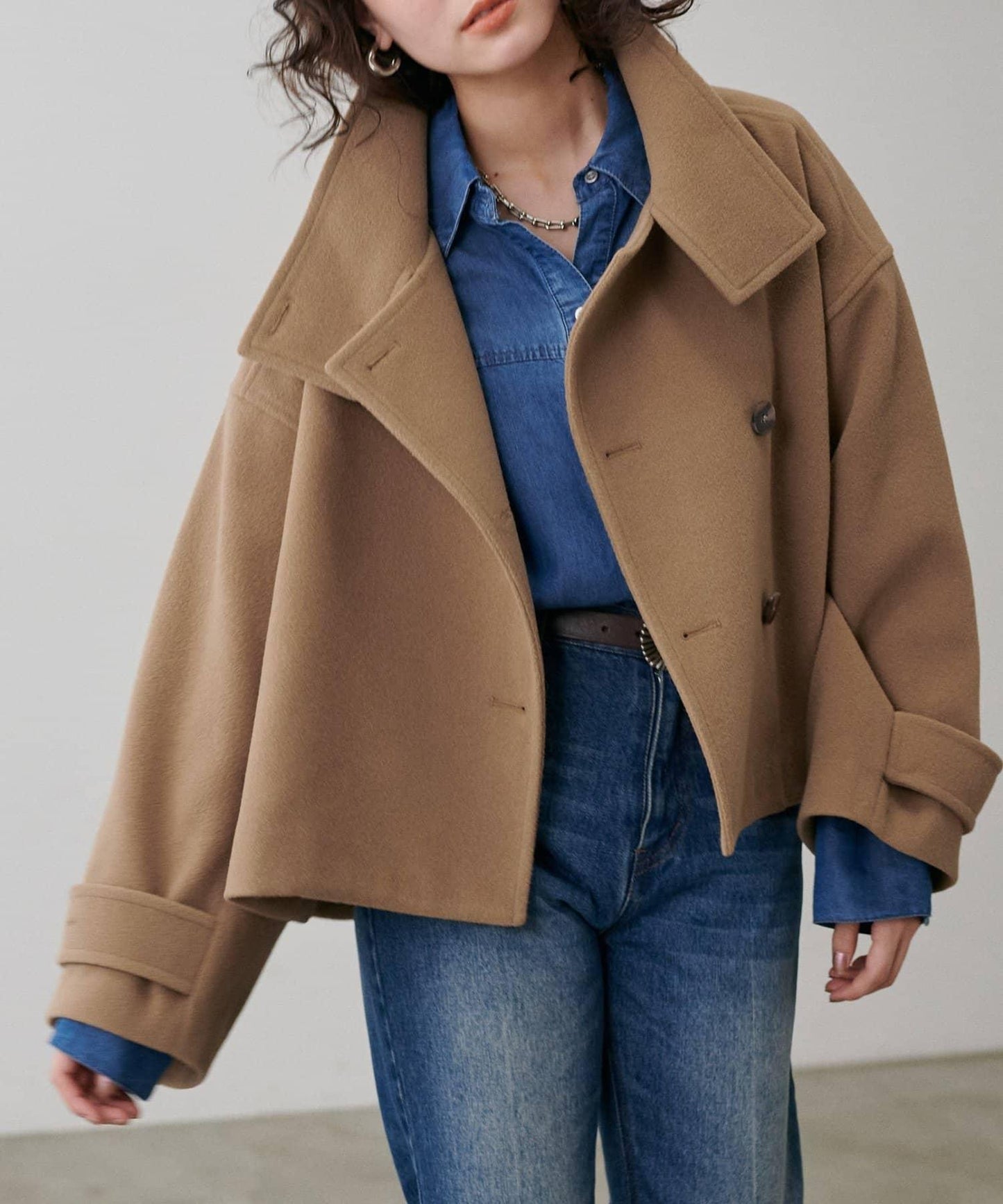 短款切斯特針織混紡呢大衣