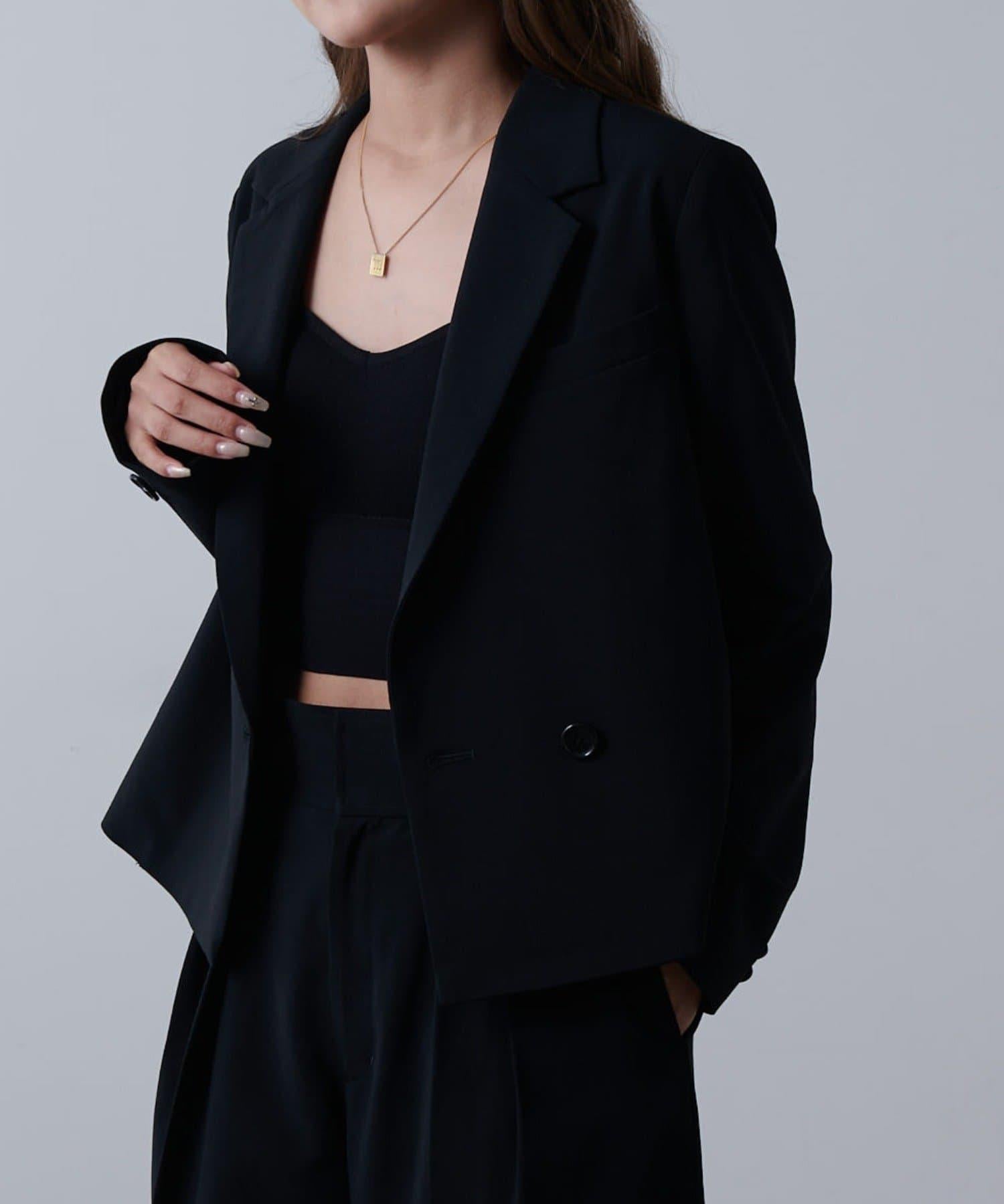 這是一款短夾克,將模式夾克以女性化的方式下襬。