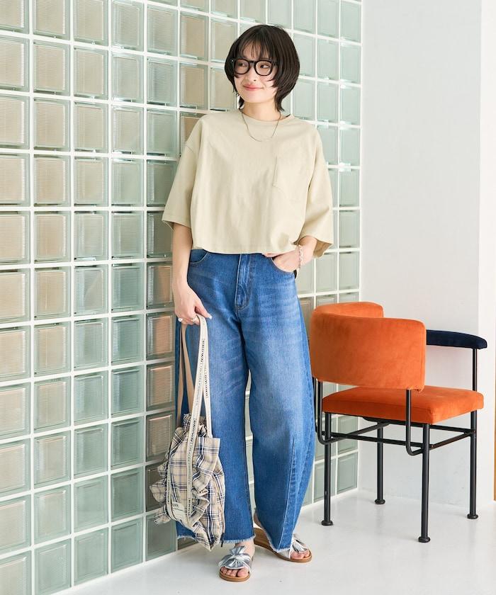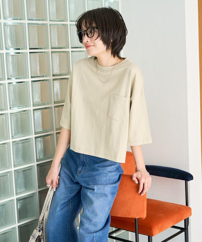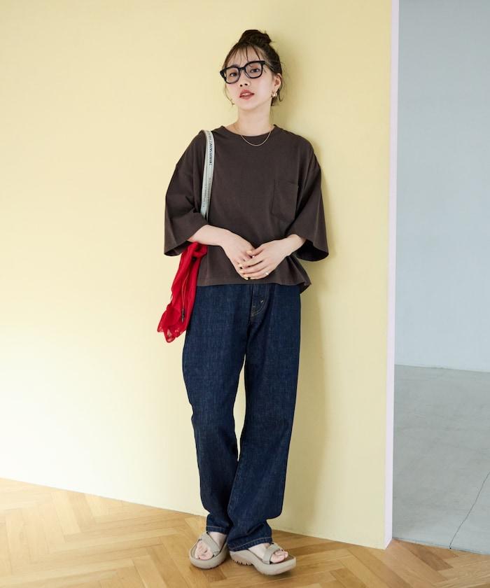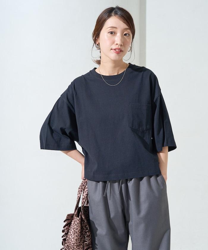 長至肘部的袖子遮住手臂,給人一種時尚的感覺。