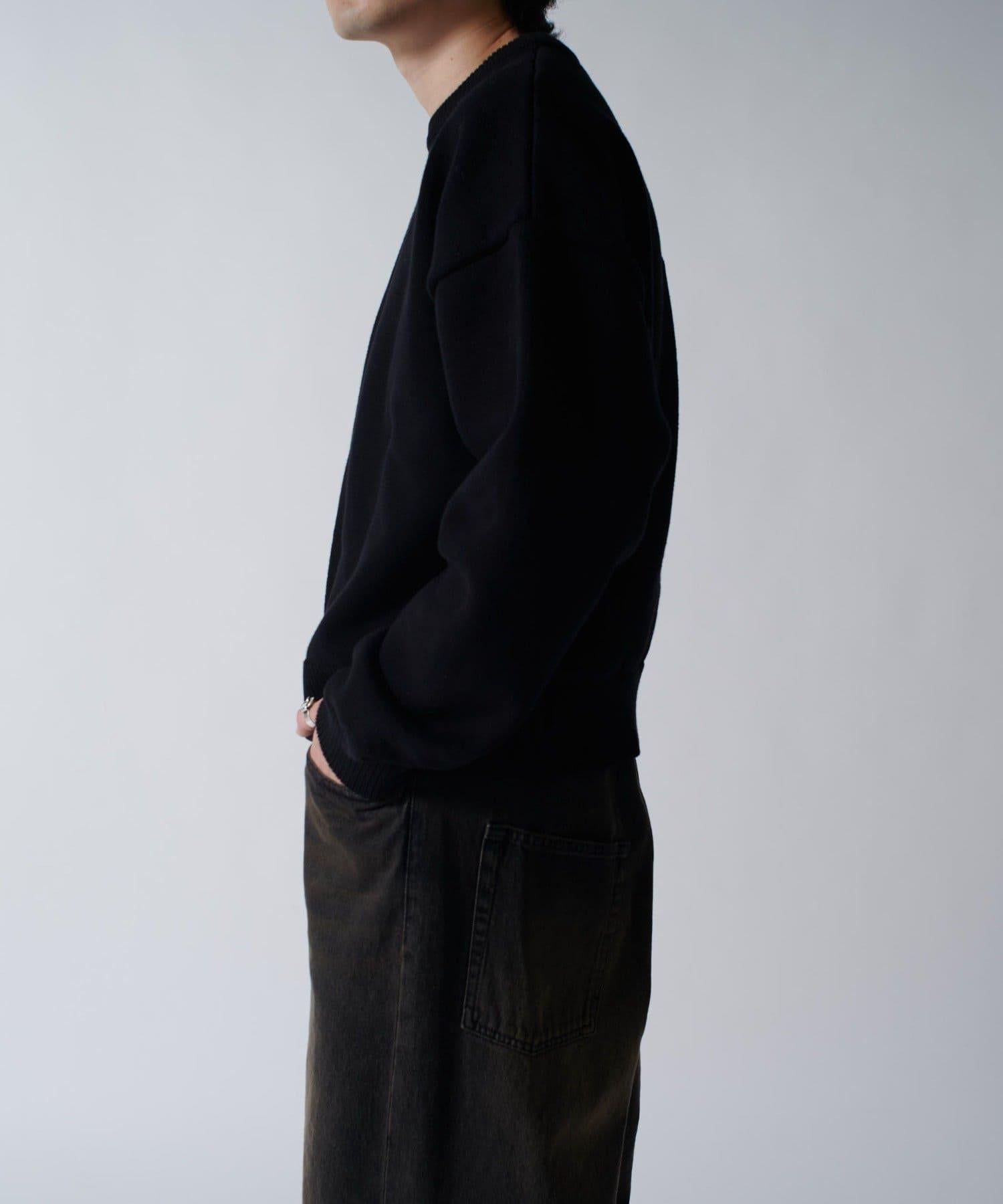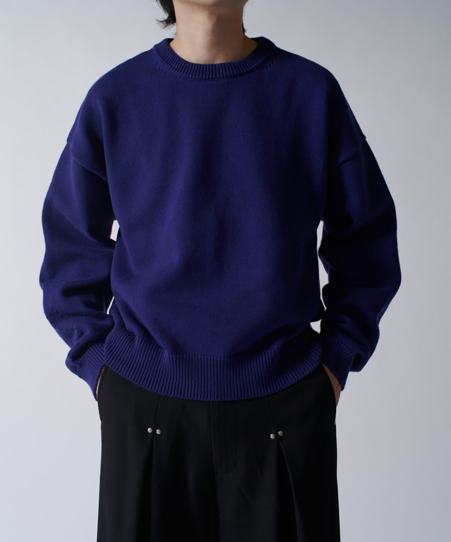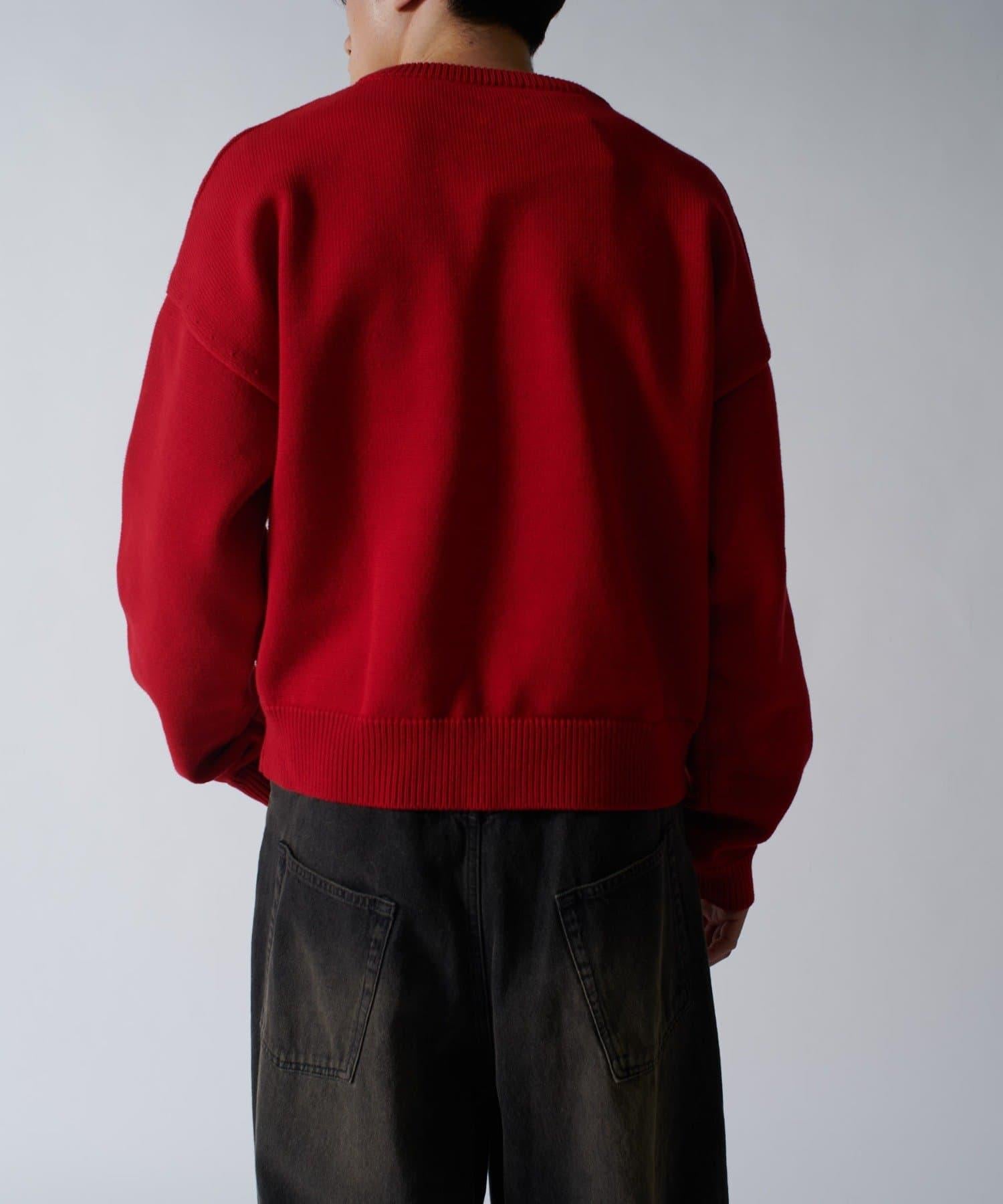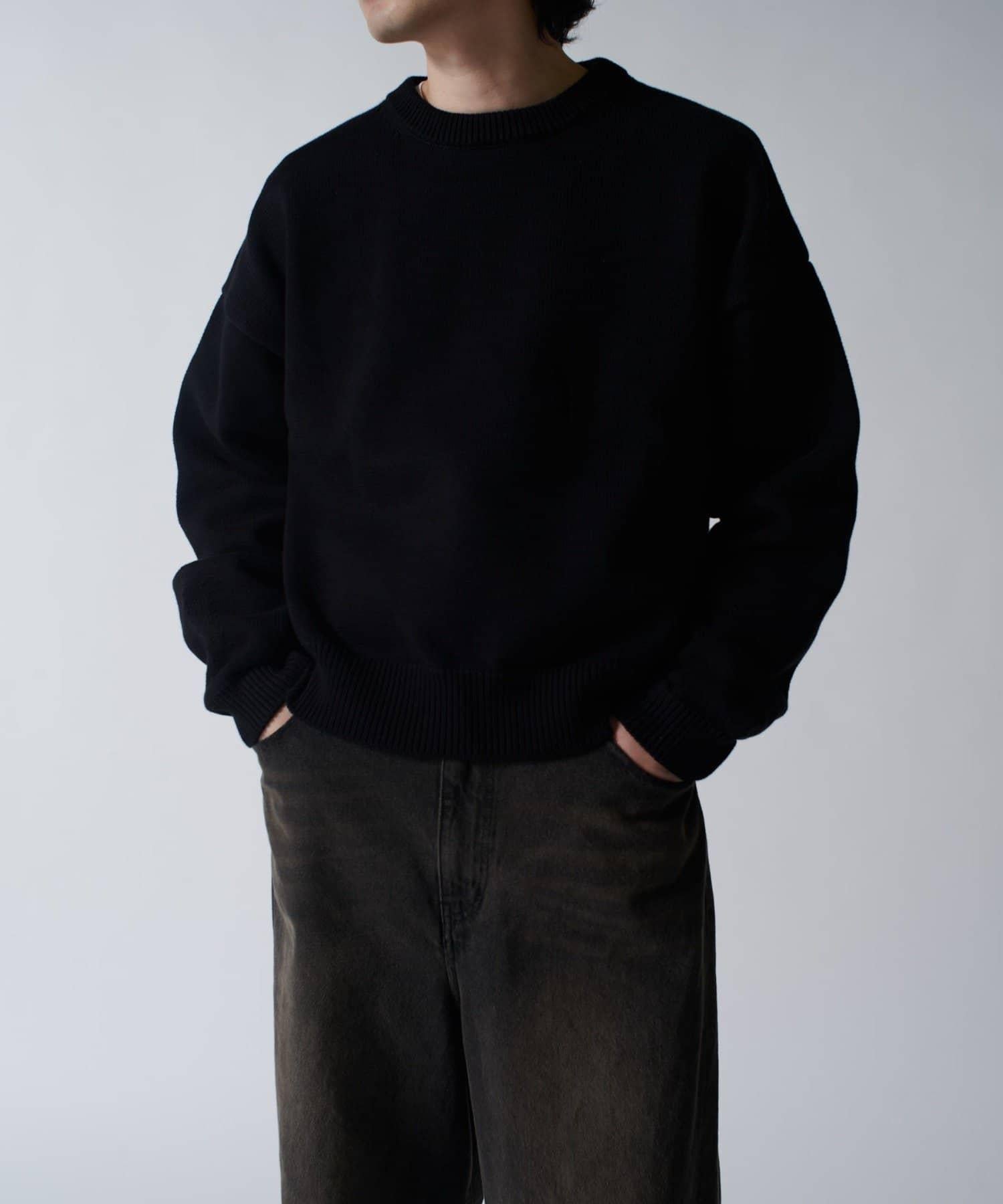 落肩規格的寬鬆輪廓棉質針織衫,但短款規格的尺寸感很好。