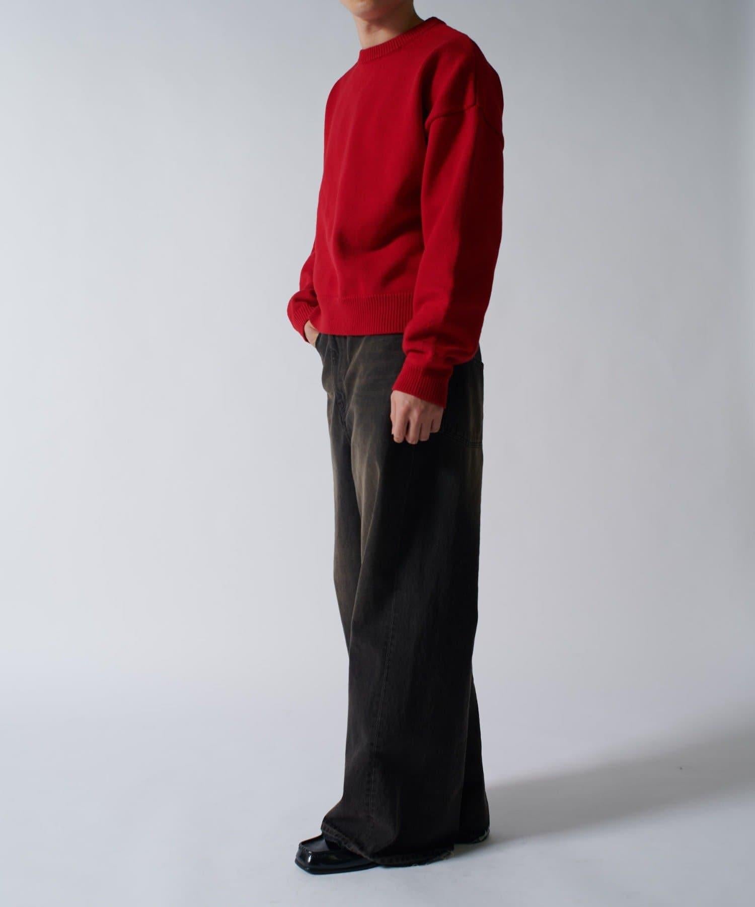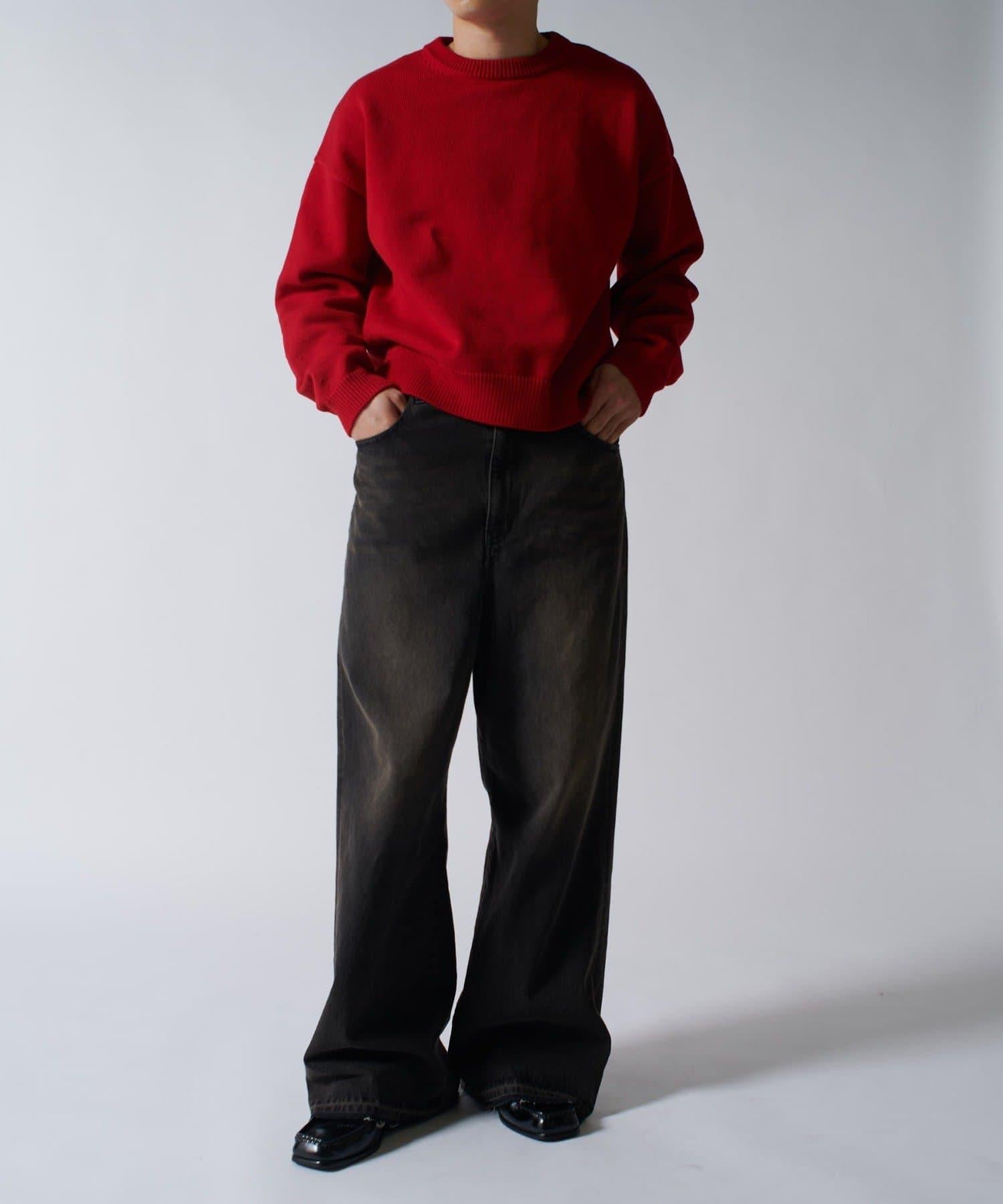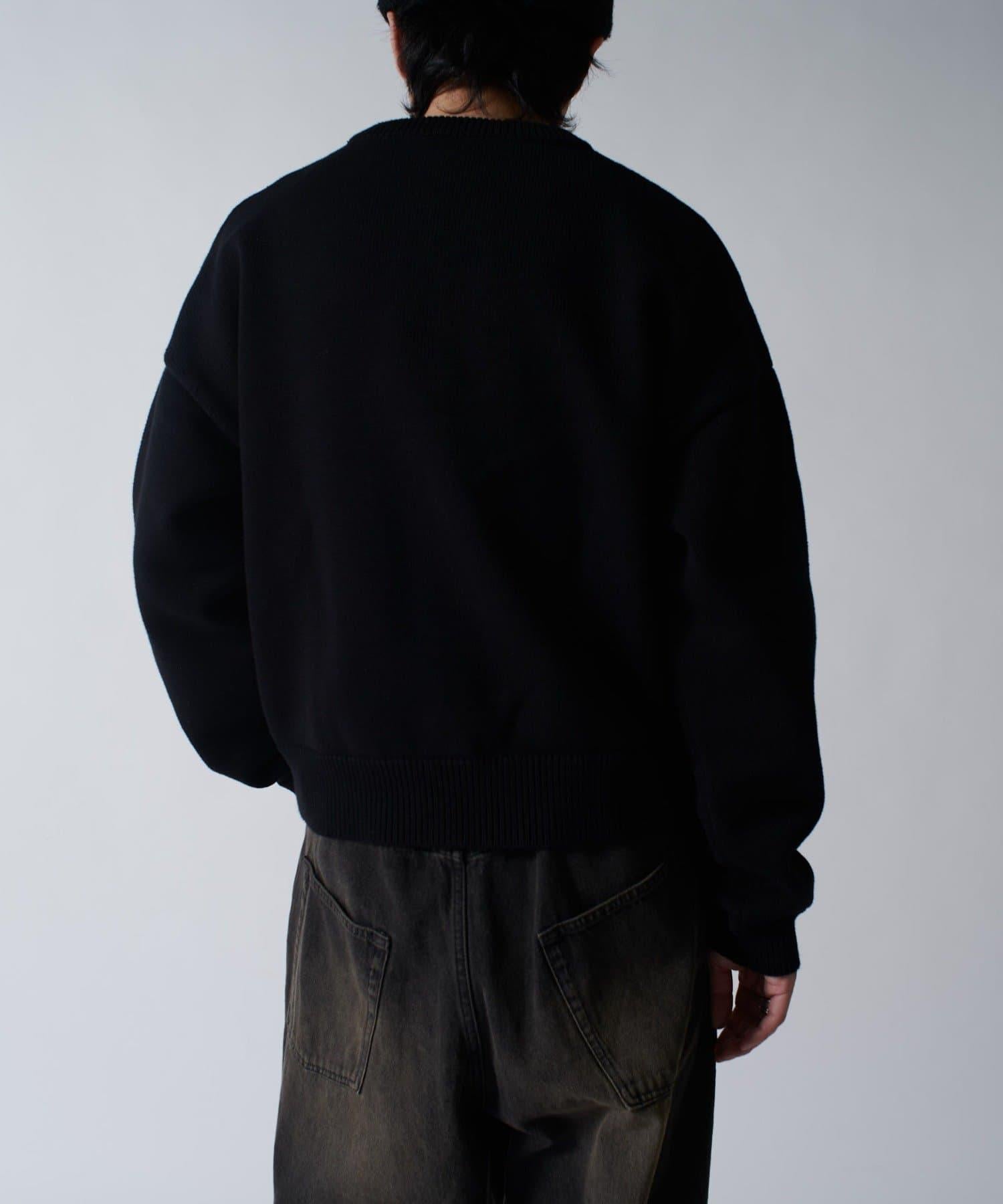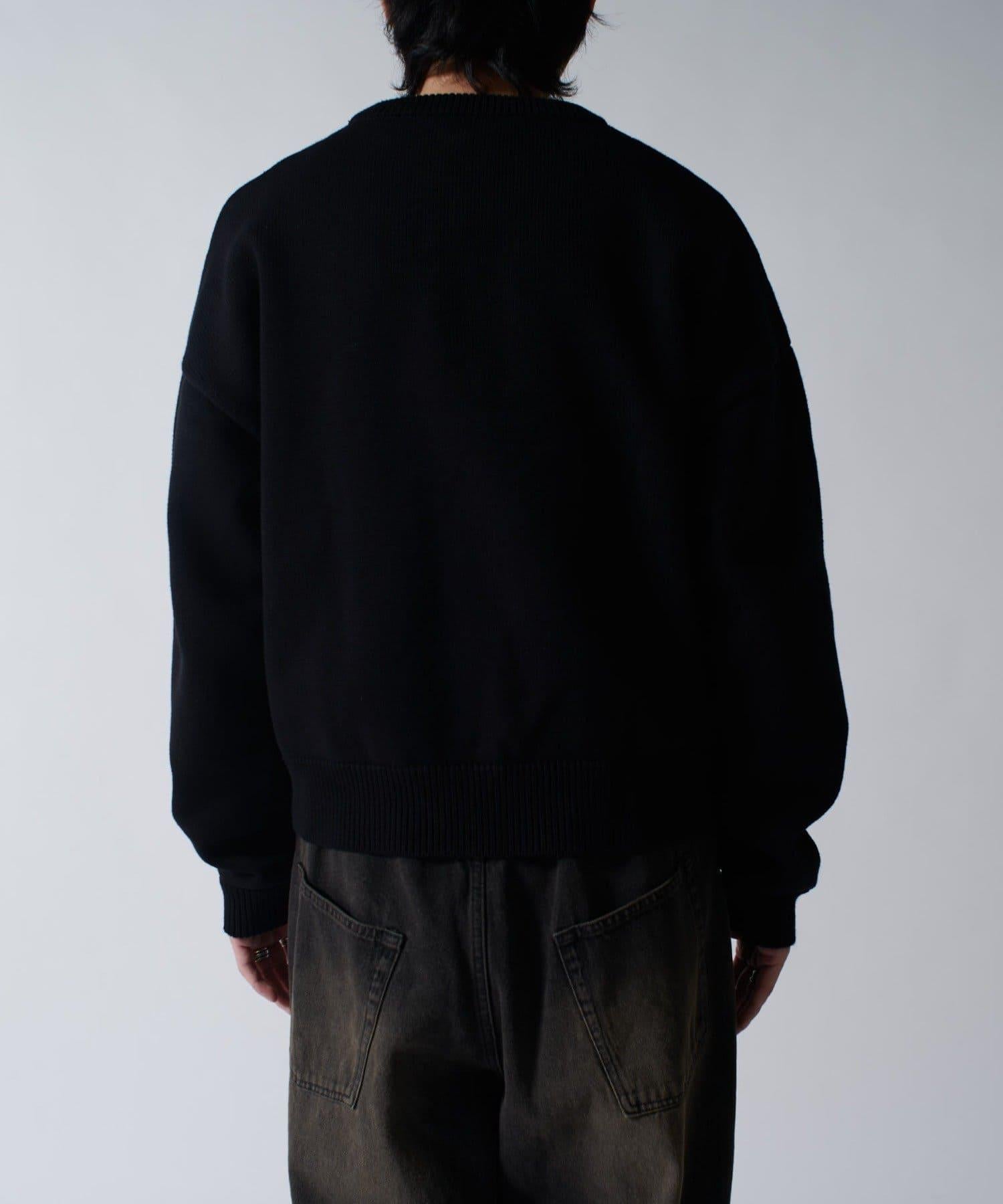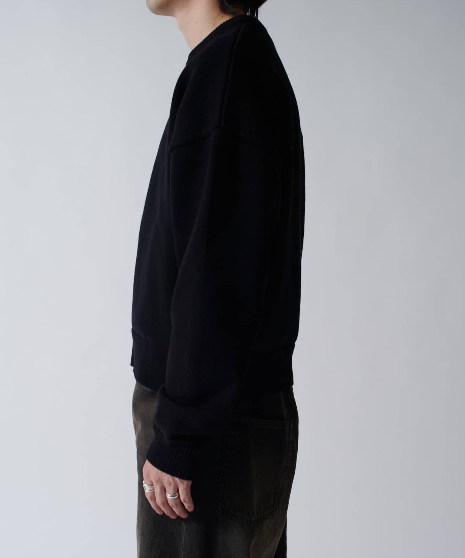 落肩規格的寬鬆輪廓棉質針織衫,但短款規格的尺寸感很好。