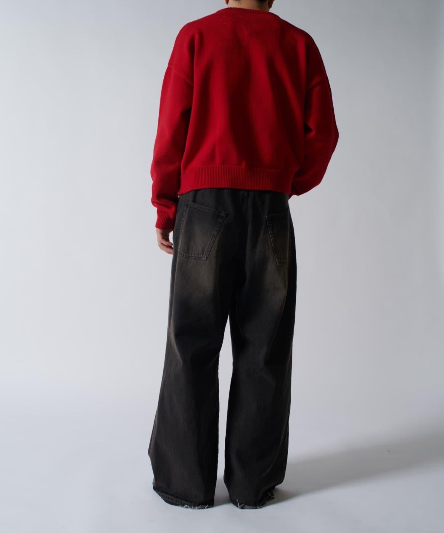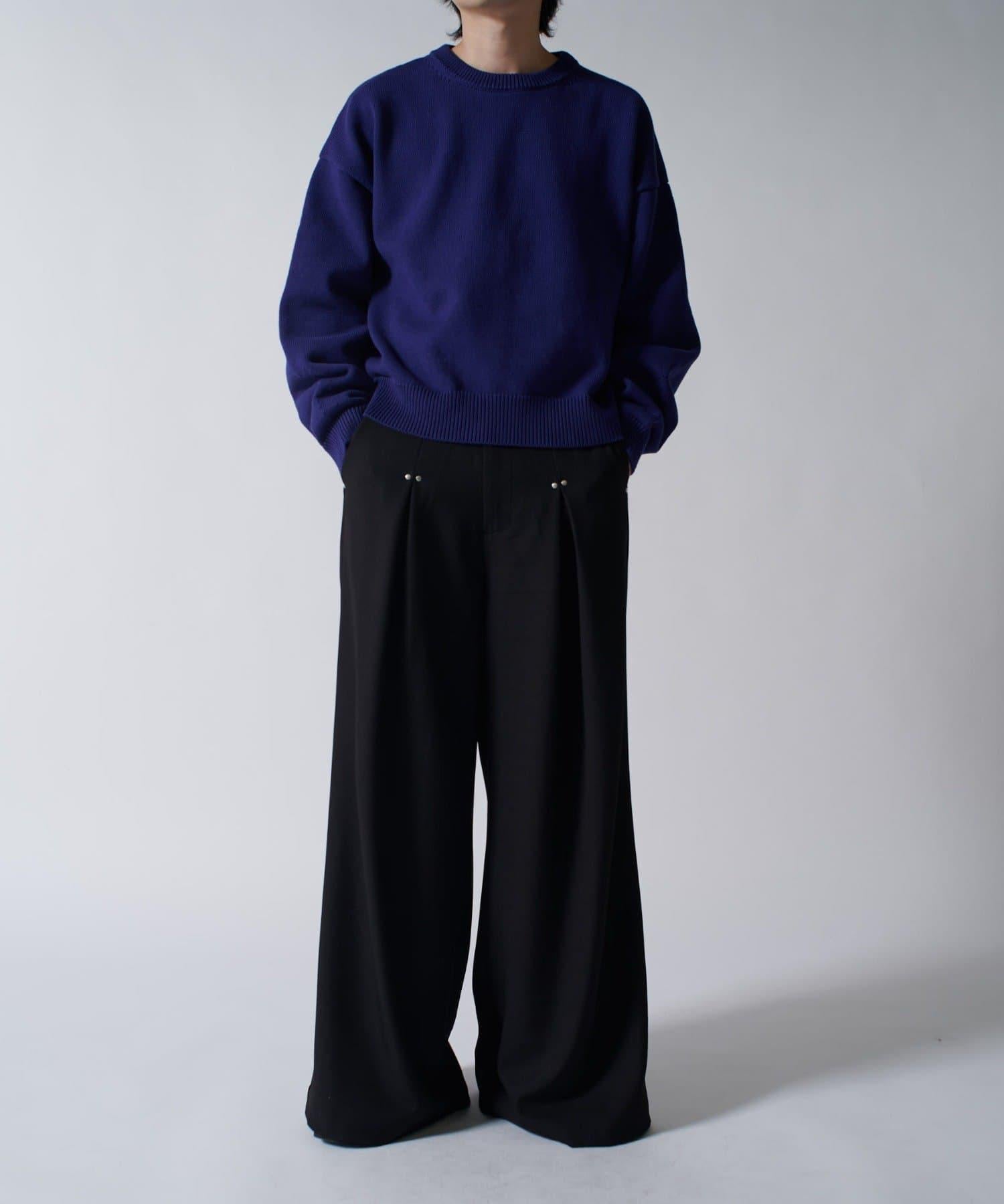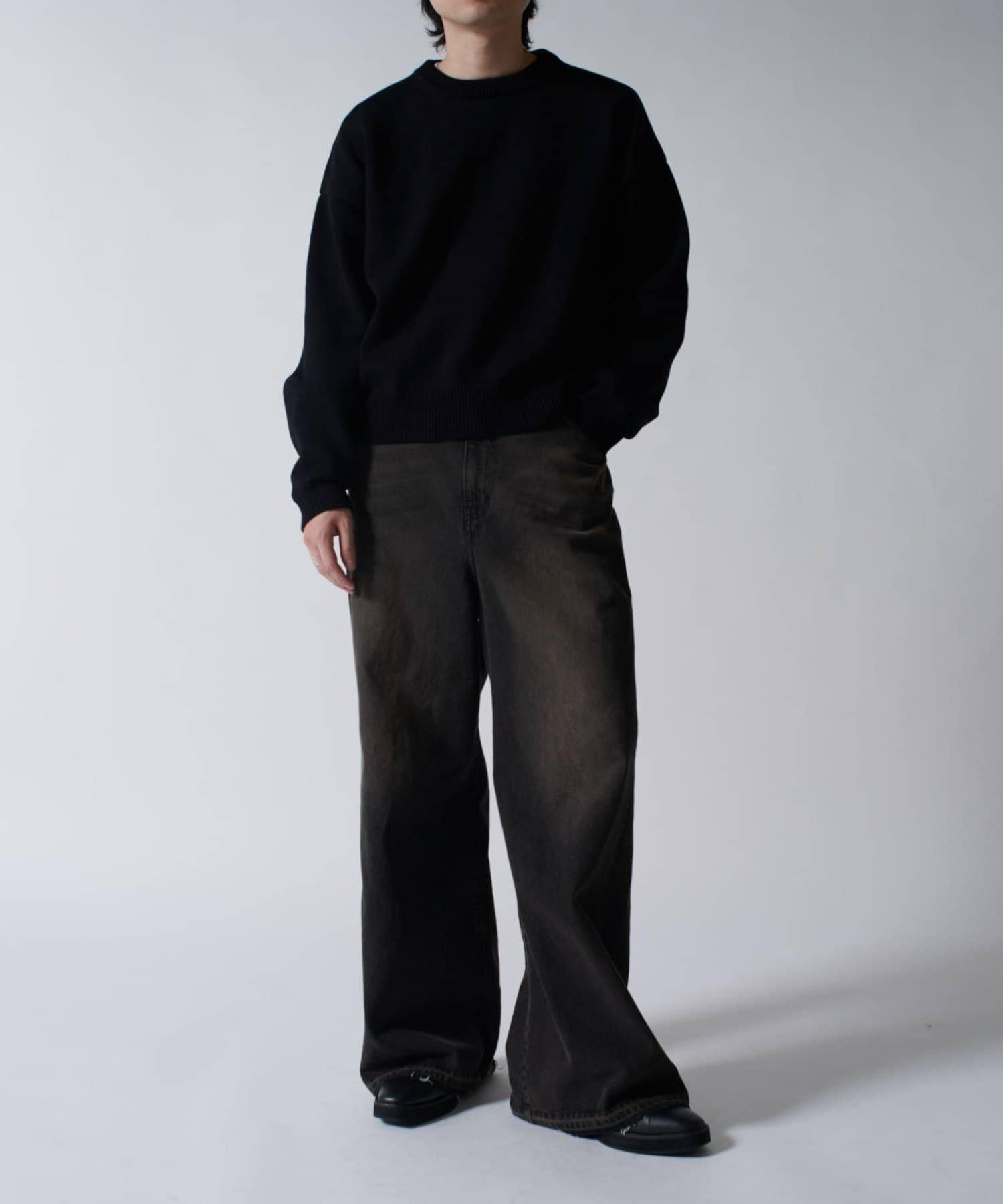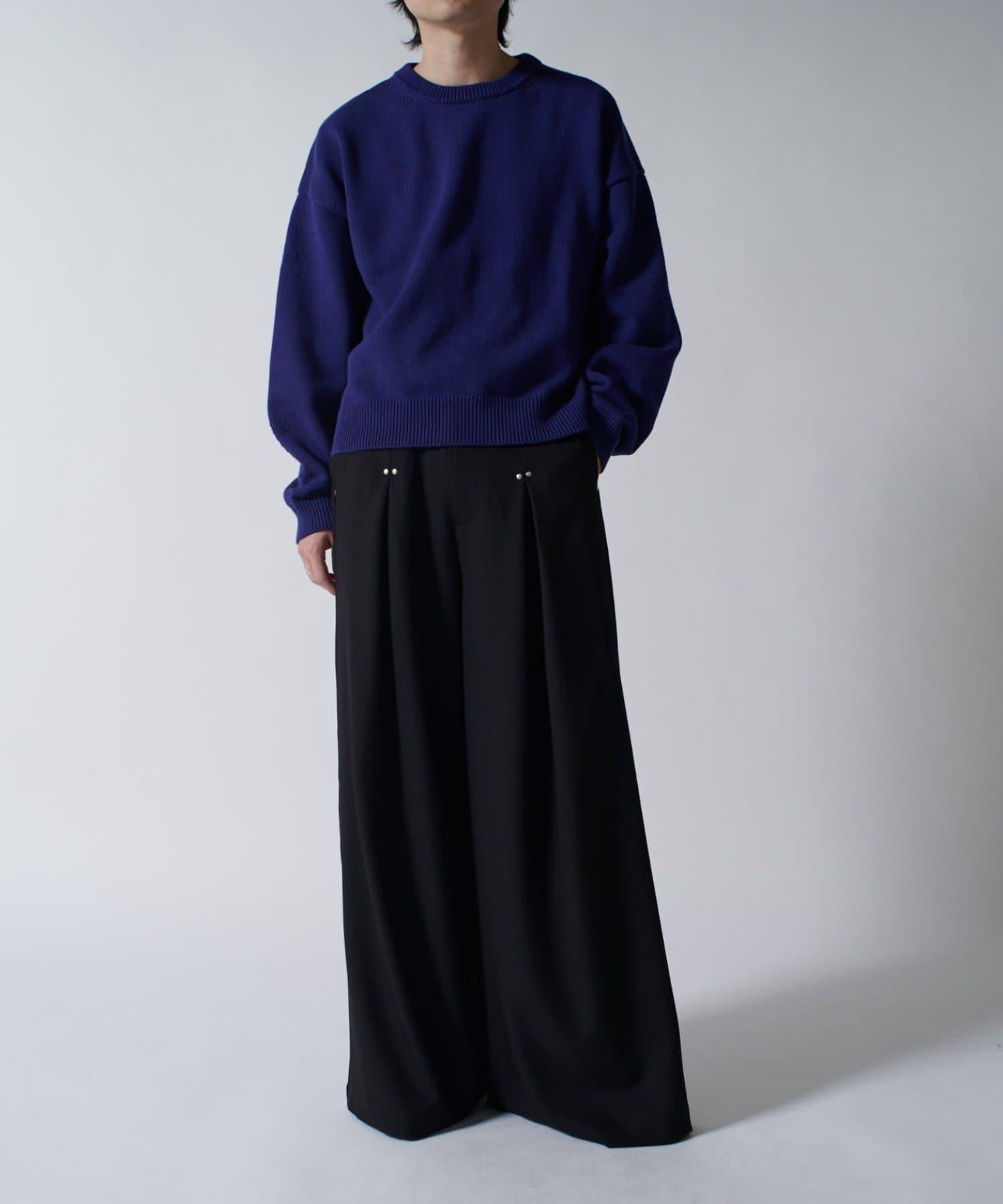 落肩規格的寬鬆輪廓棉質針織衫,但短款規格的尺寸感很好。
