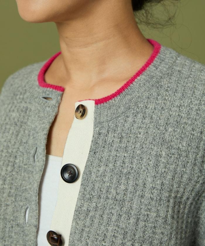 這款開衫可作為短款開衫穿著,因為時下流行短款上衣。