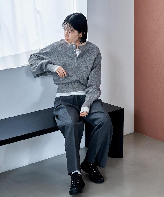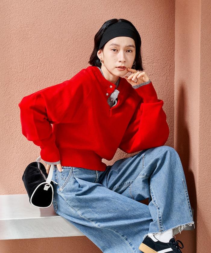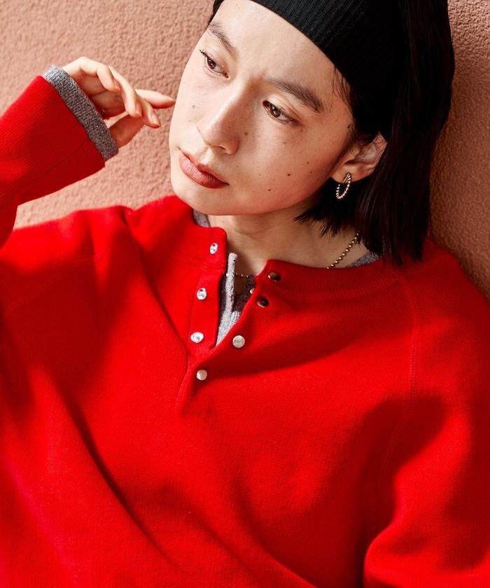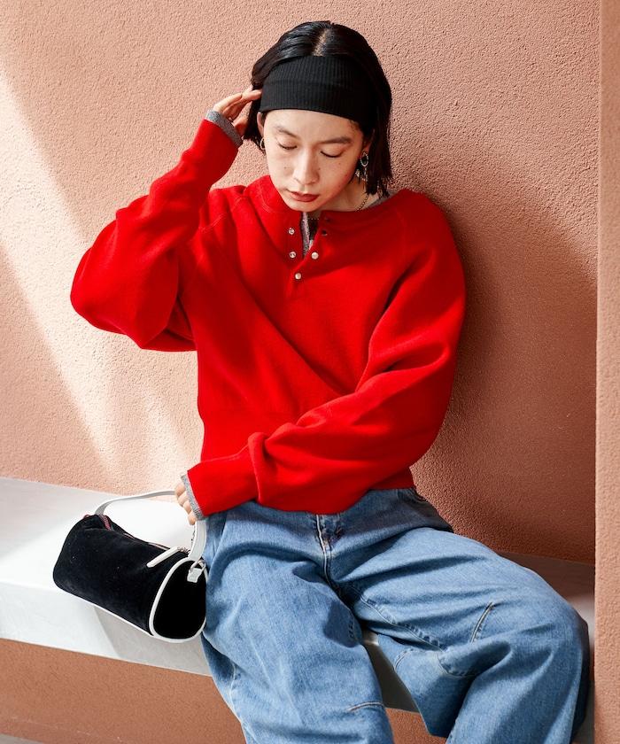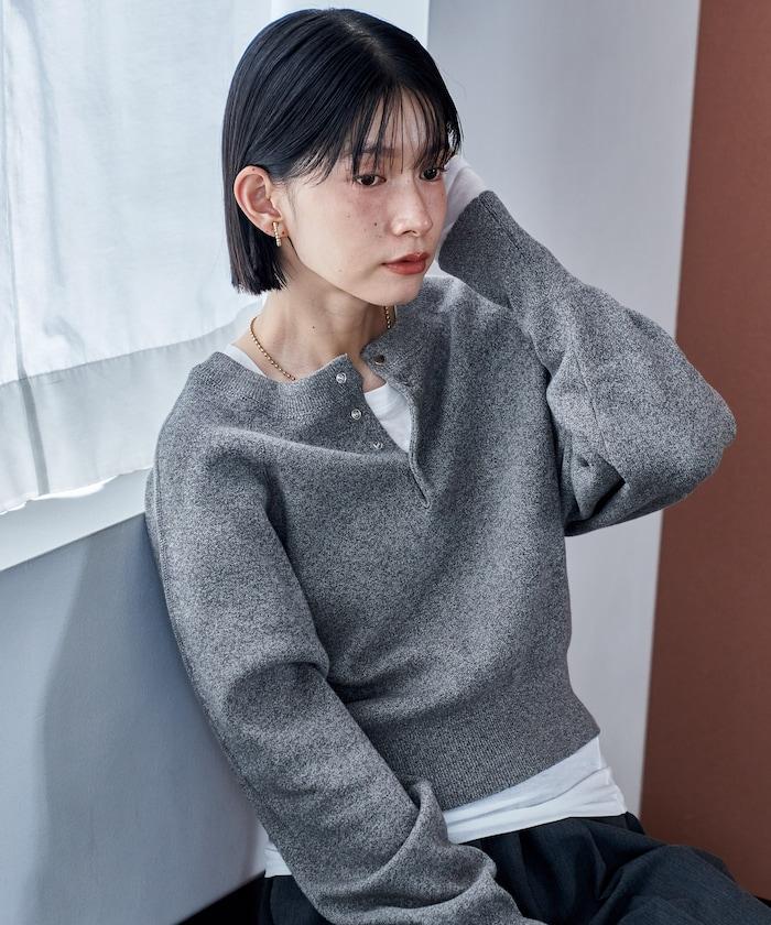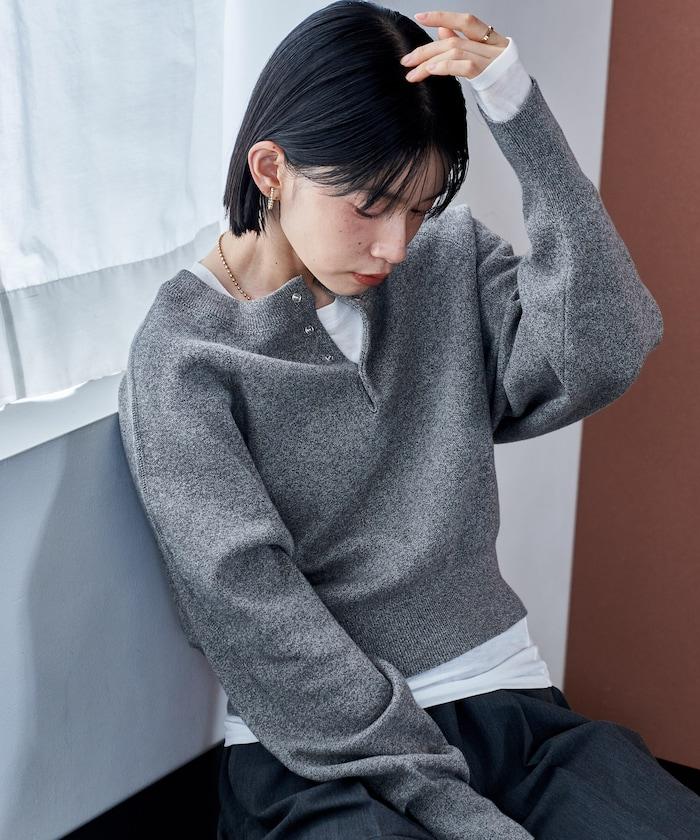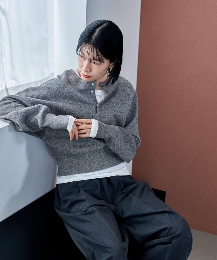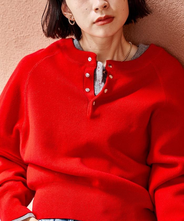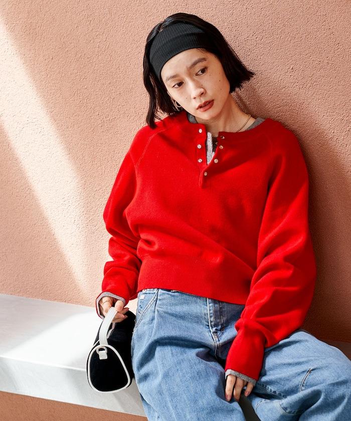 Henley 領針織衫,配以按扣,給人良好的休閒感。