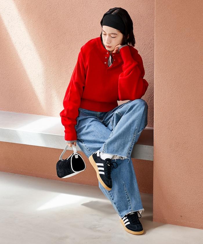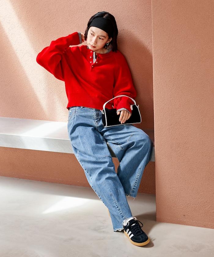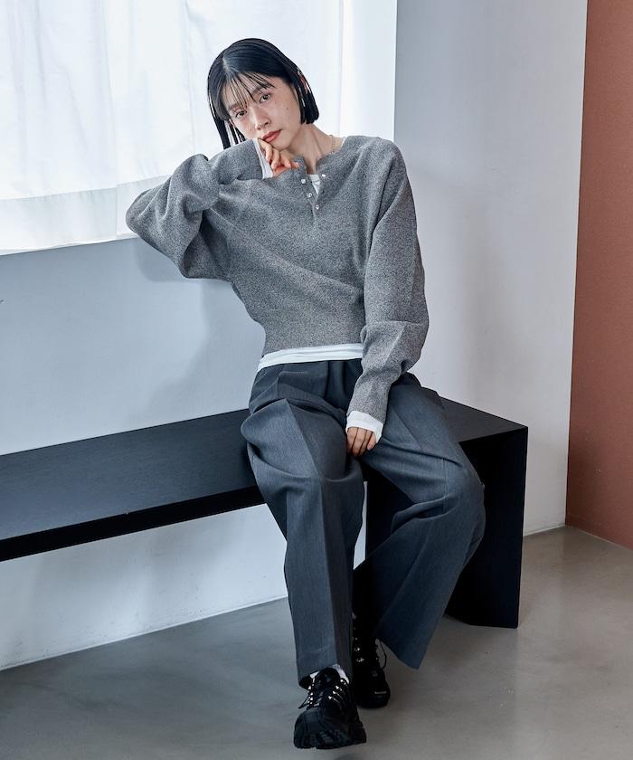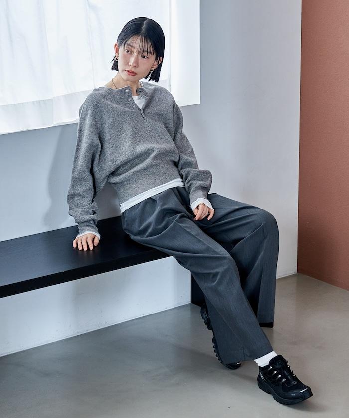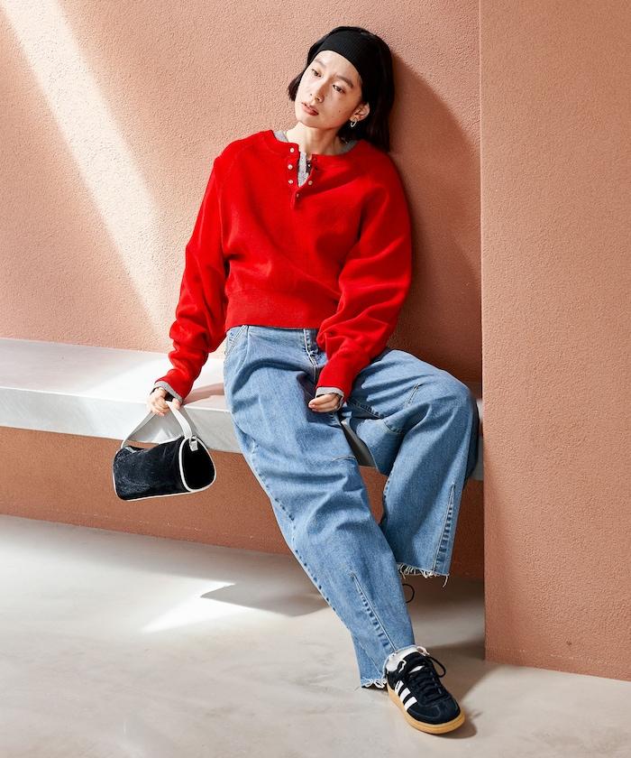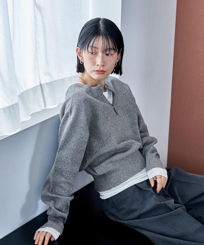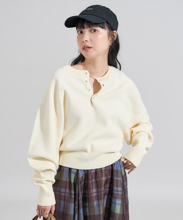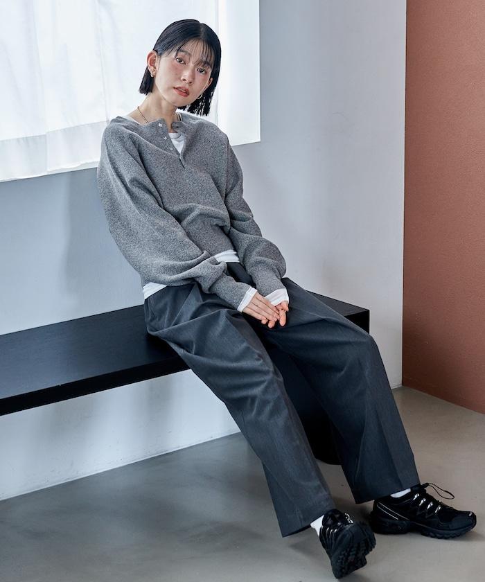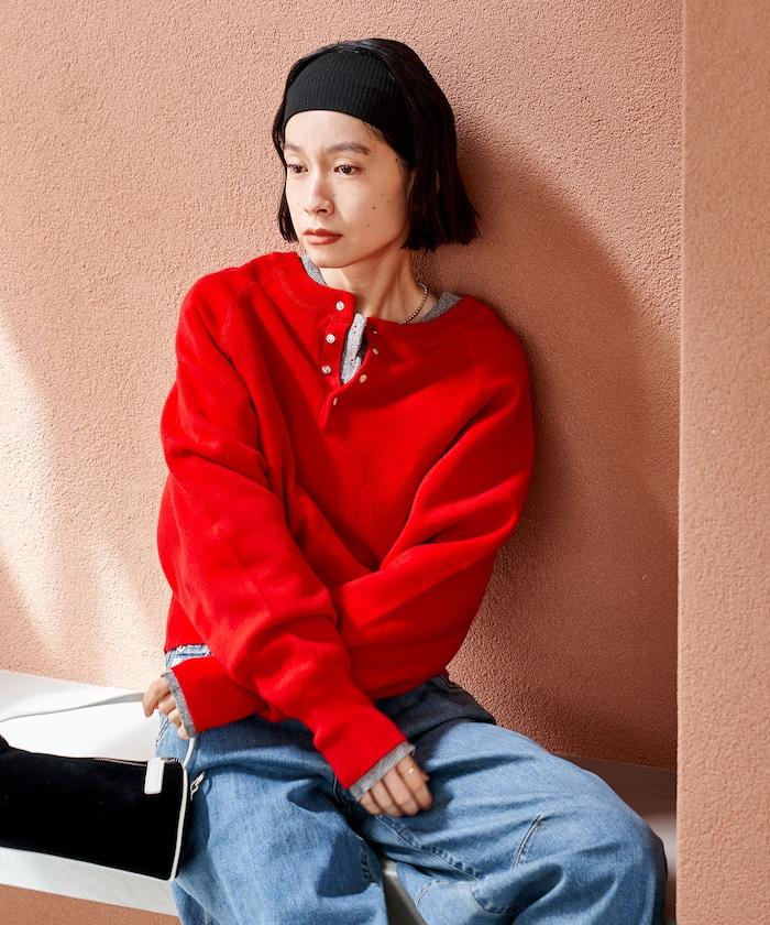Henley 領針織衫,配以按扣,給人良好的休閒感。