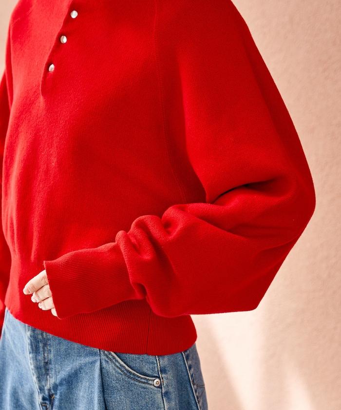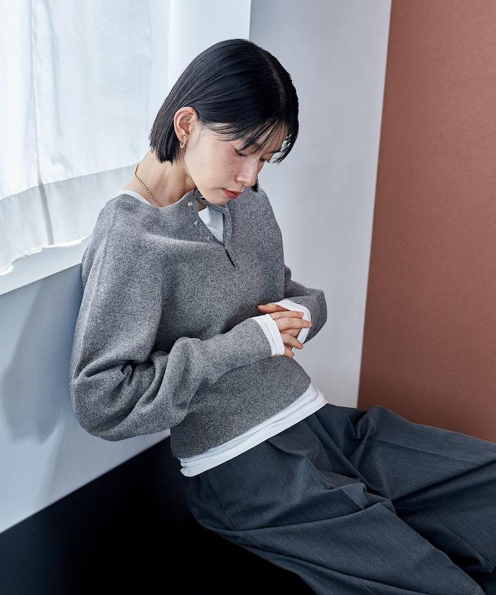 短款按扣亨利領針織衫