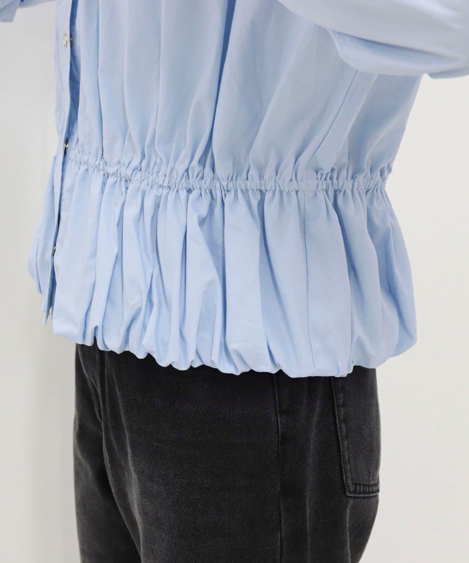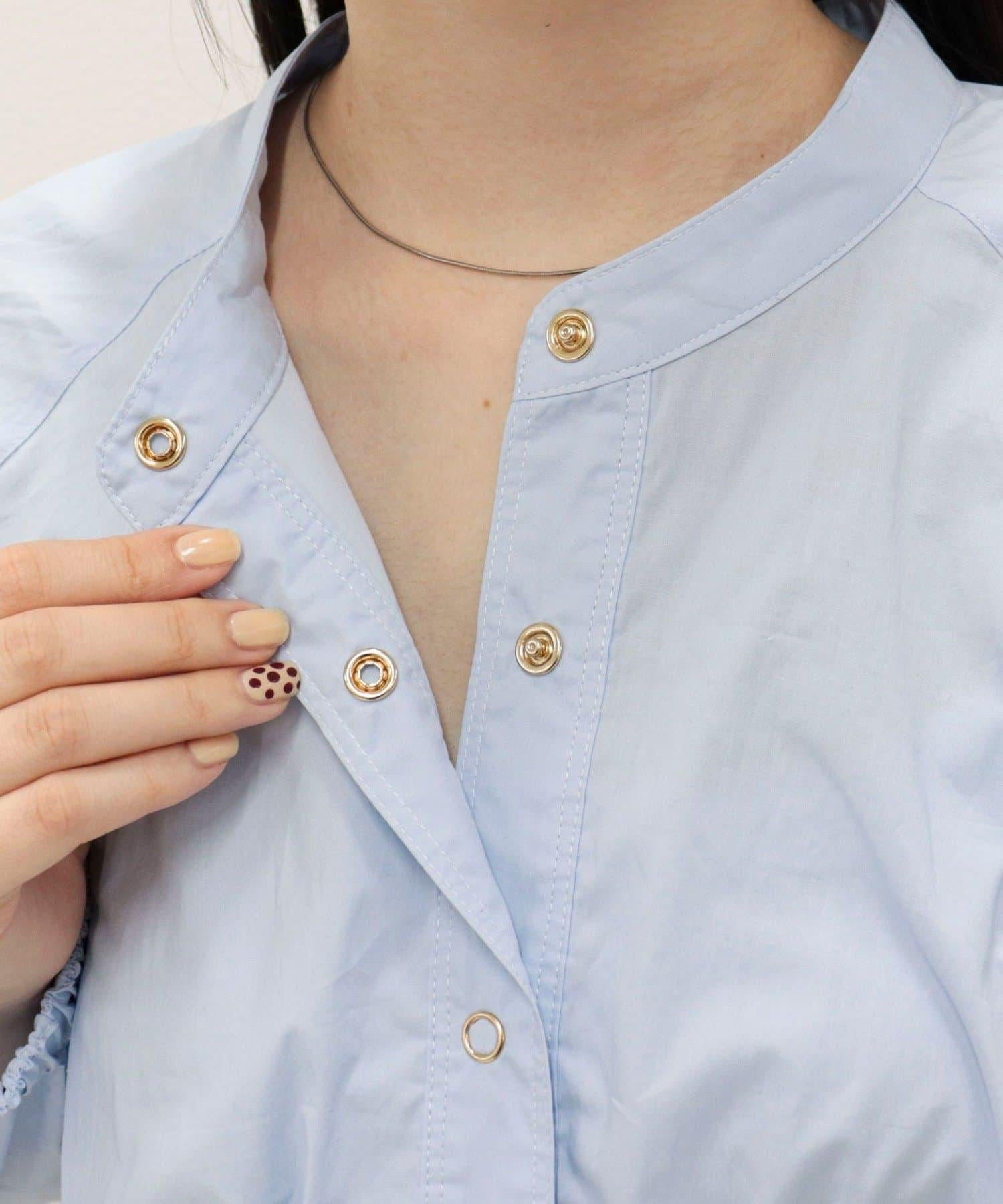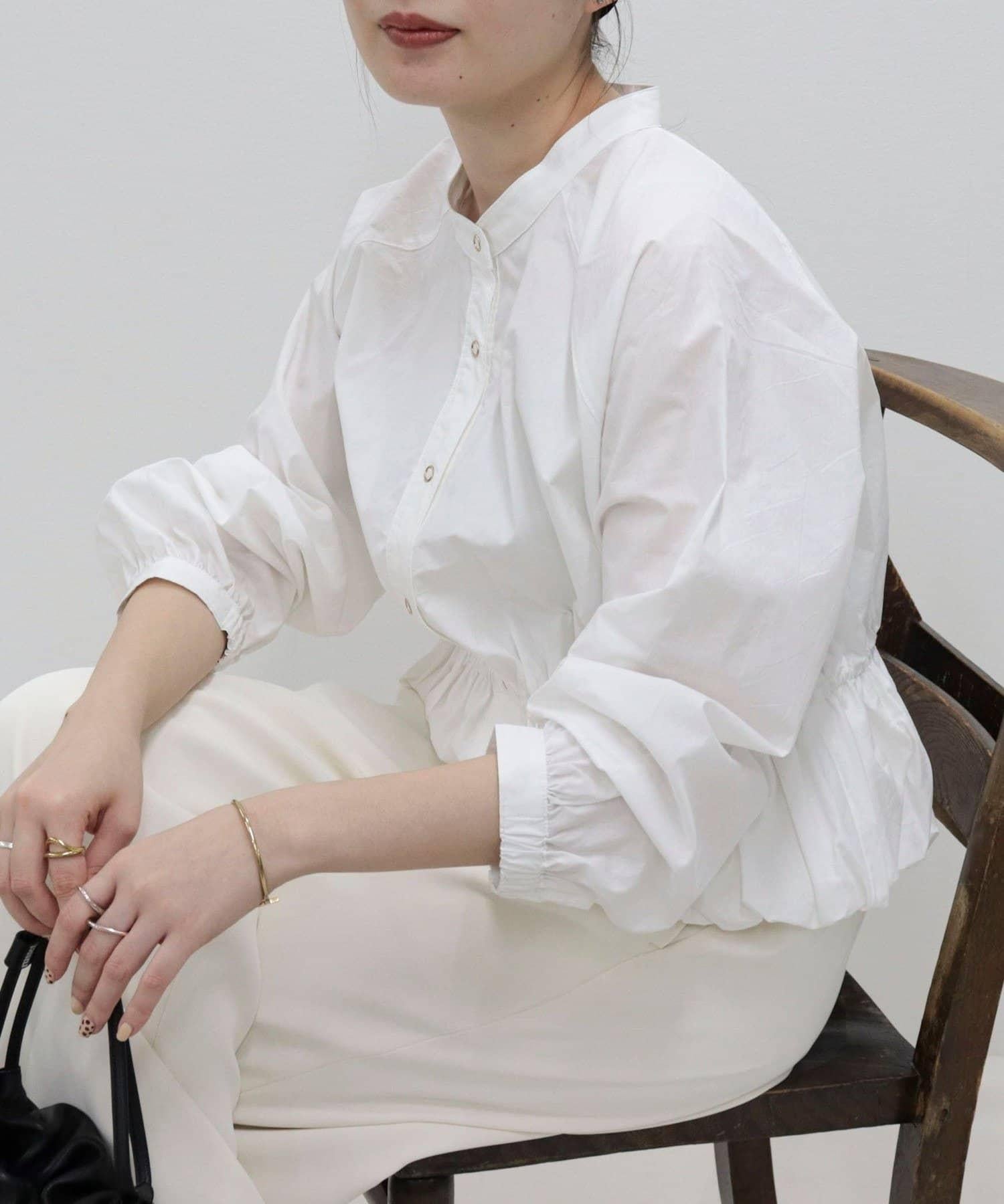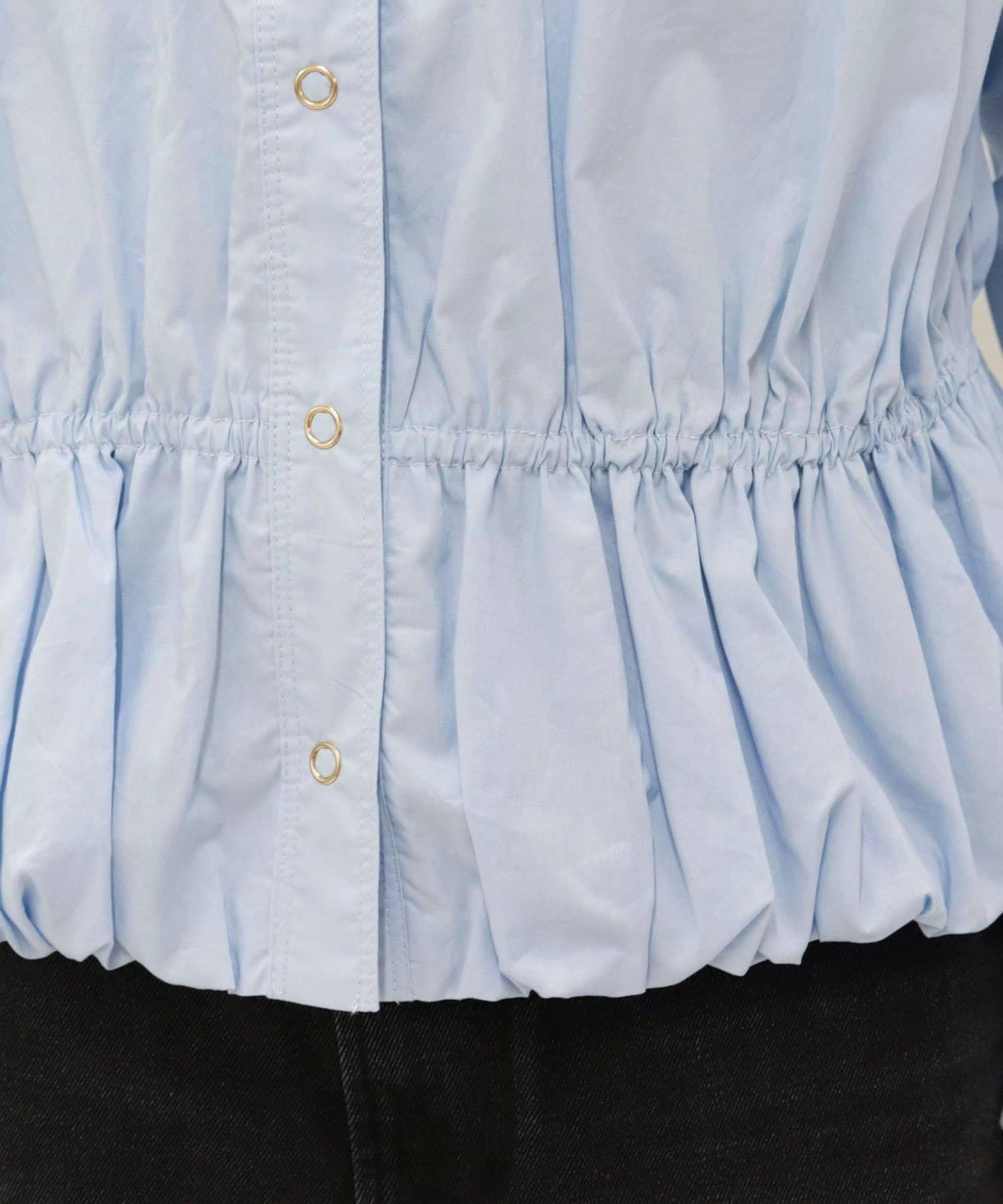 短款泡泡袖前開襟襯衫
