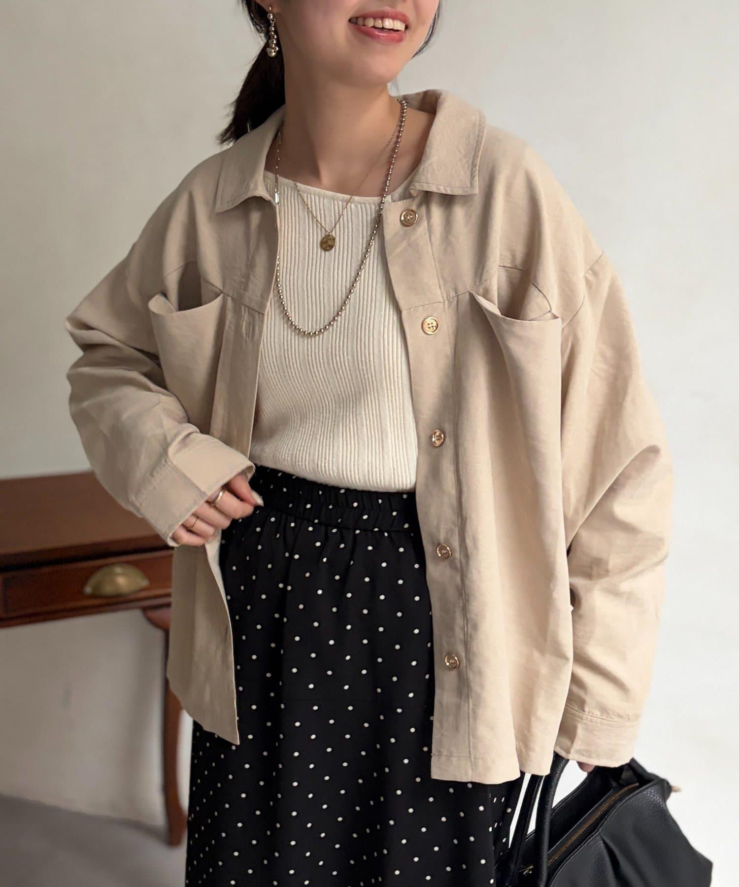 因為是可以像襯衫一樣穿著的夾克,所以與休閒褲或窄裙搭配,協調性更強,給人留下美好的印象◎。