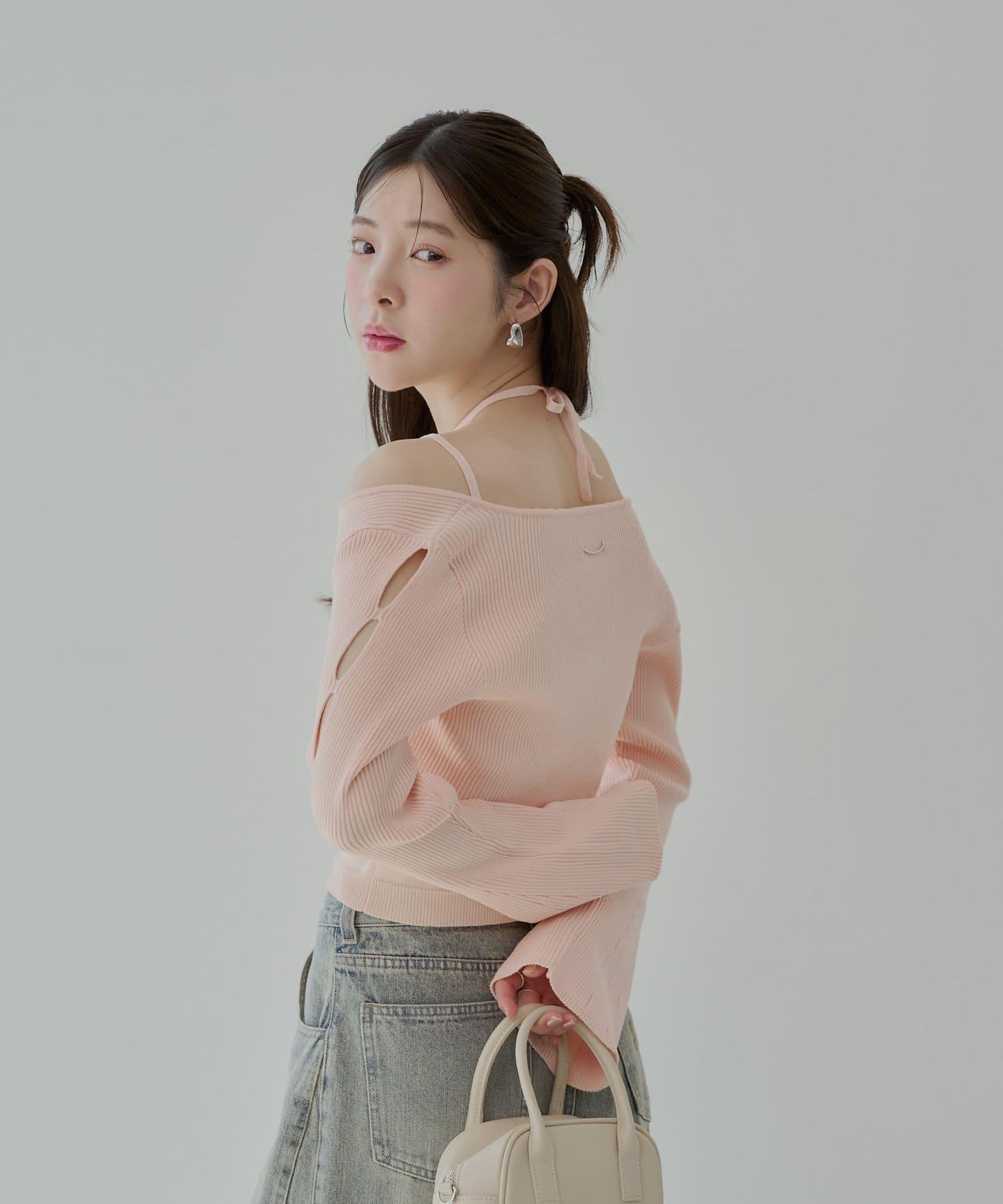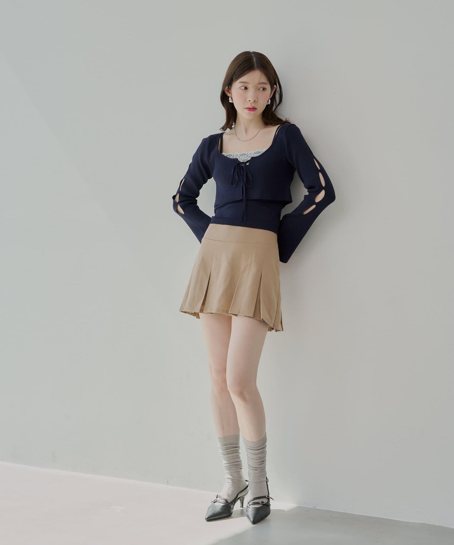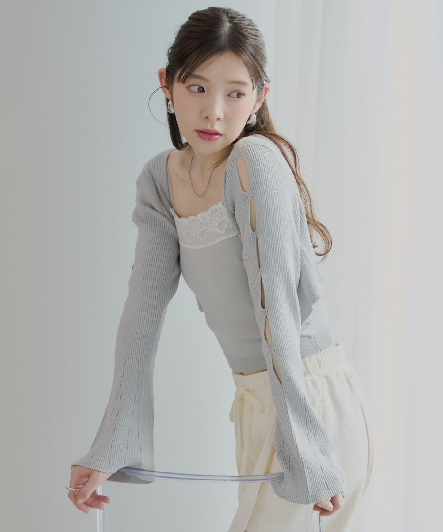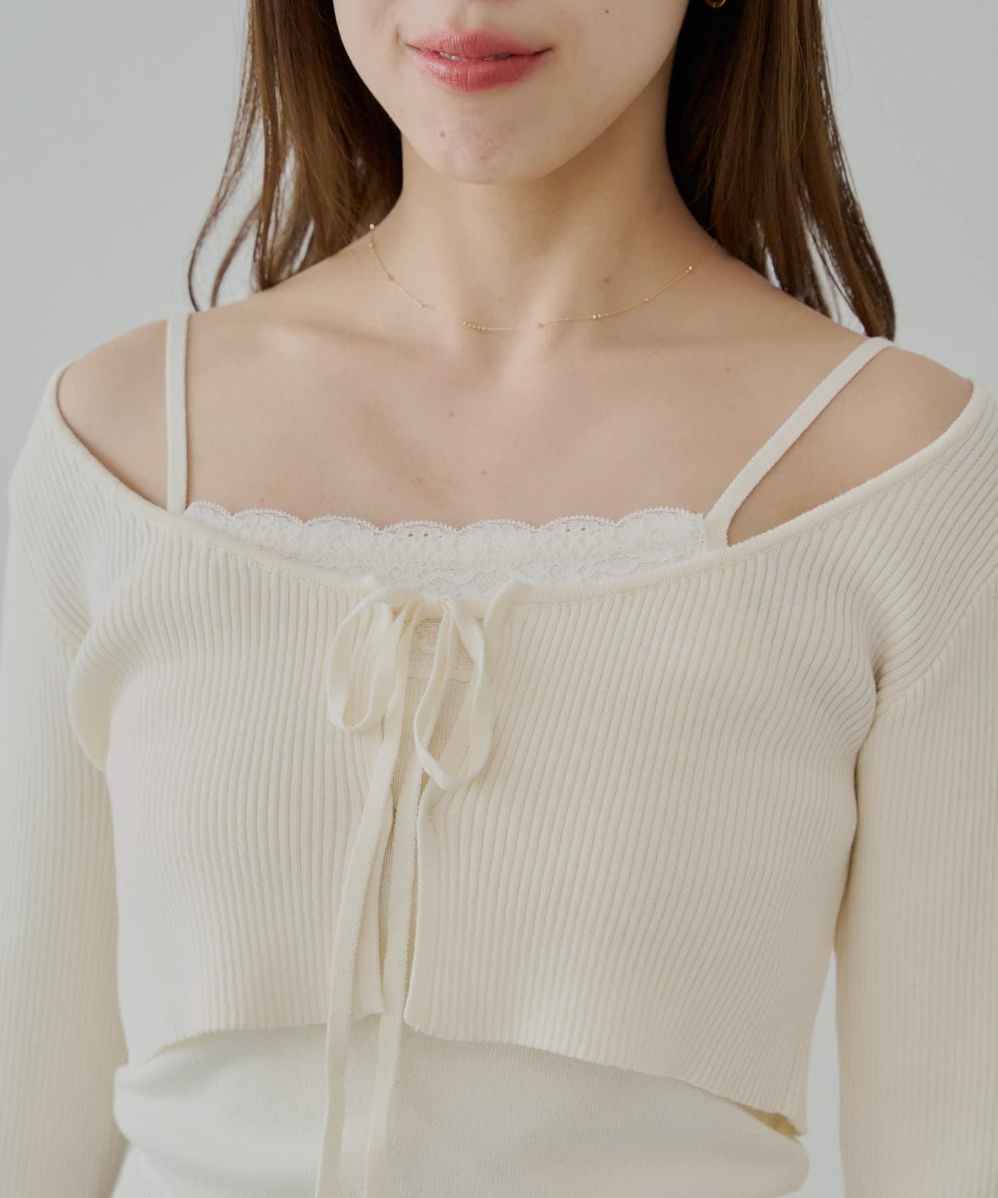吊帶套頭開衫,恰到好處的露膚設計和精緻的蕾絲花邊。