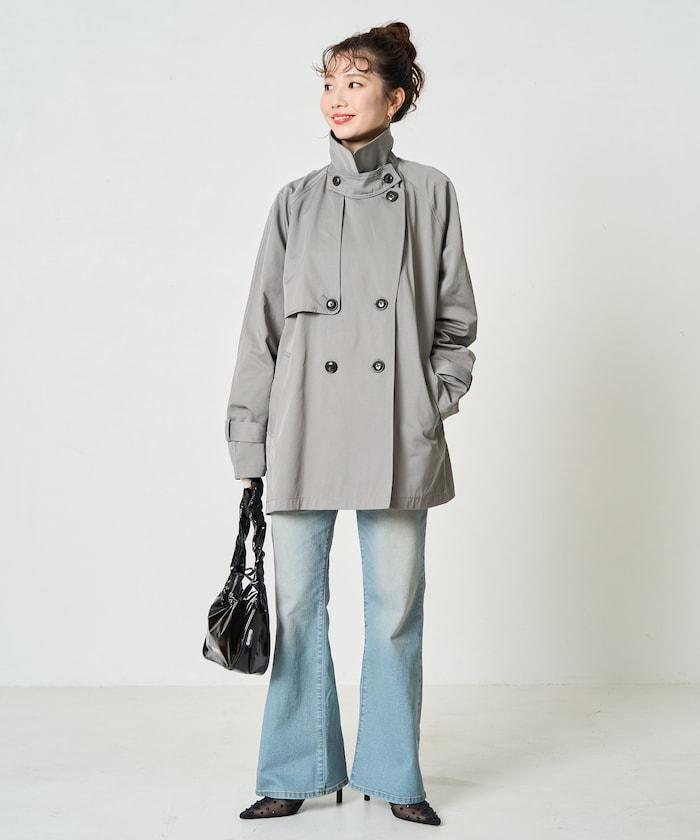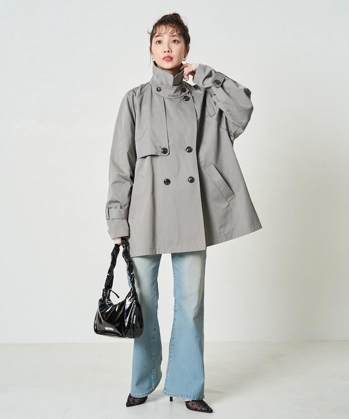 短款風衣,採用美麗的喇叭形剪裁。