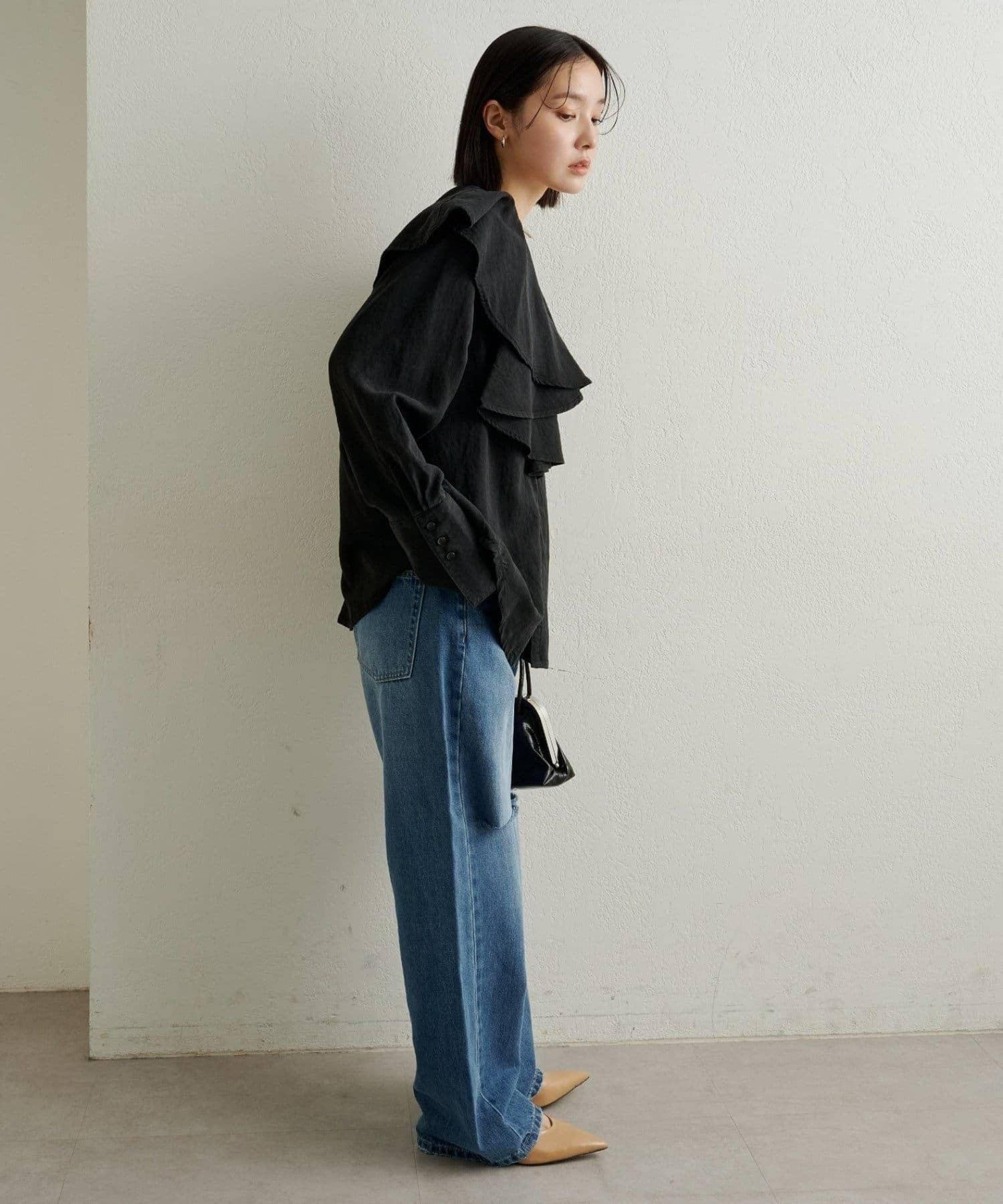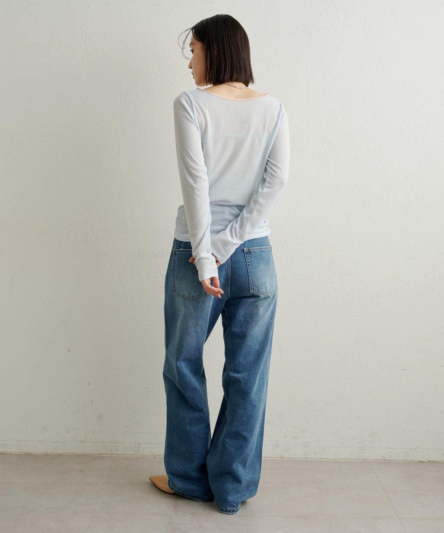 這款牛仔長褲設計獨特,非常適合休閒穿著。
