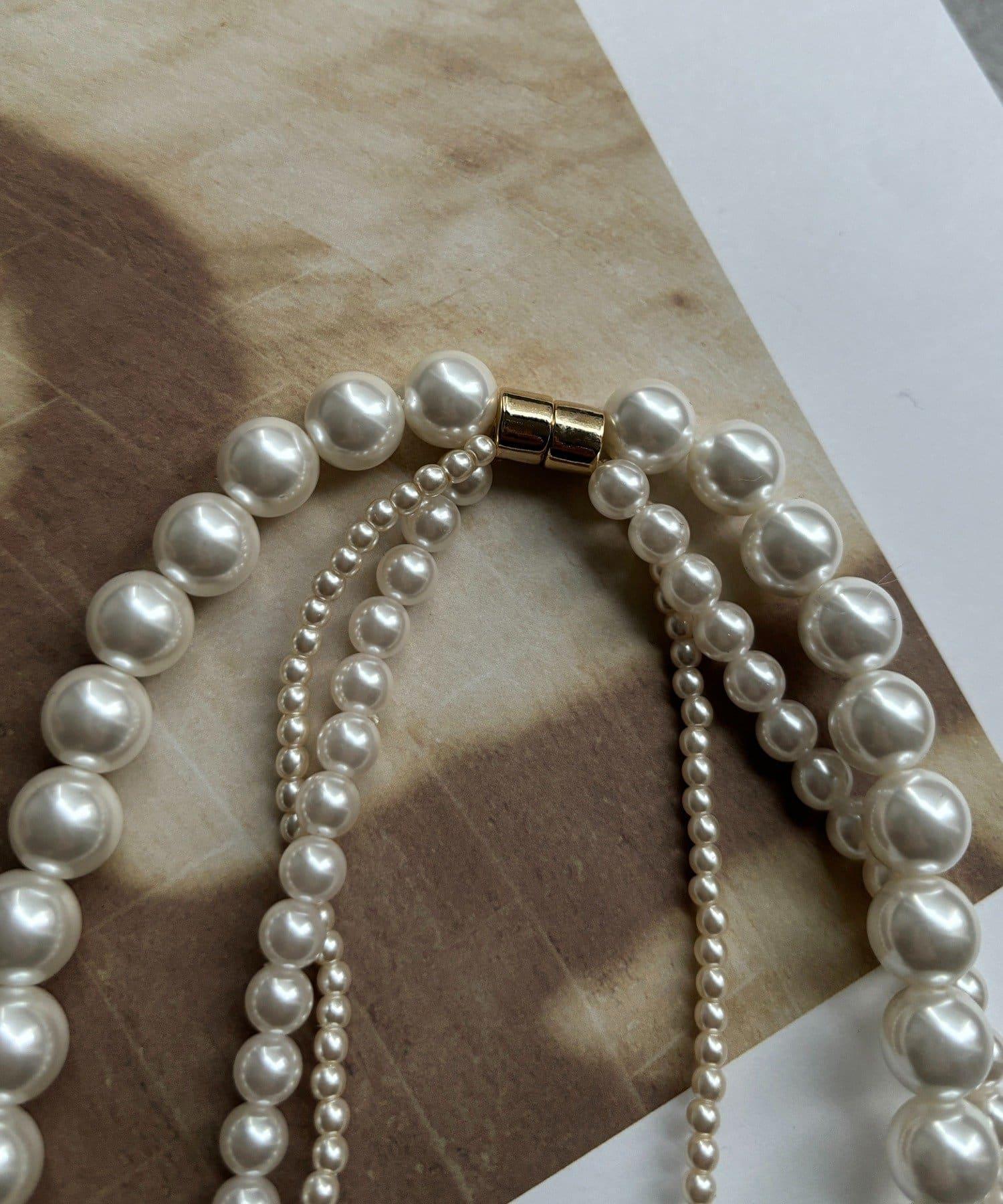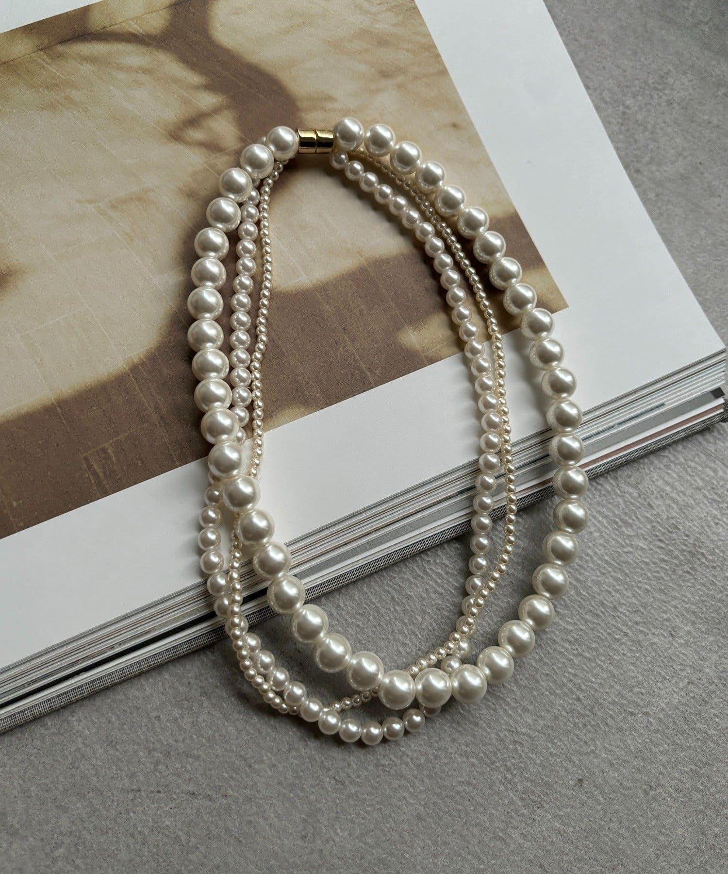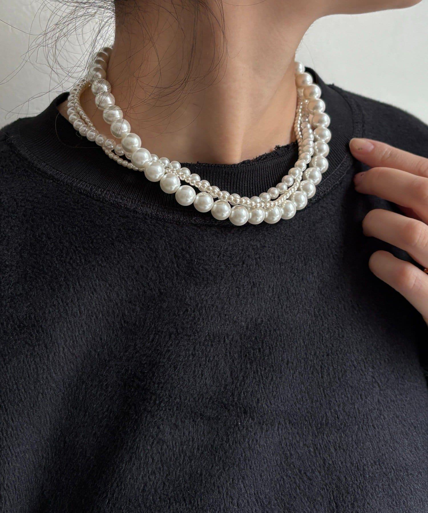 這條項鍊由三顆珍珠打造出迷人的立體層次感。
