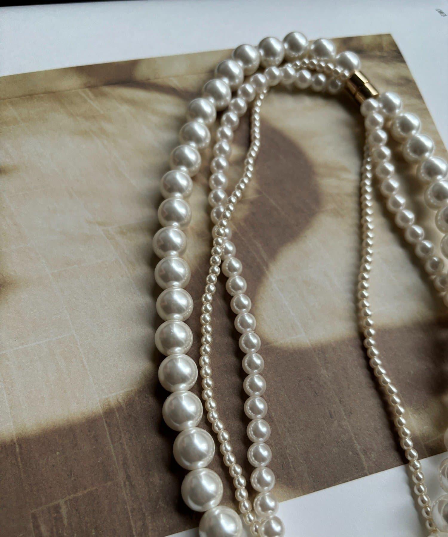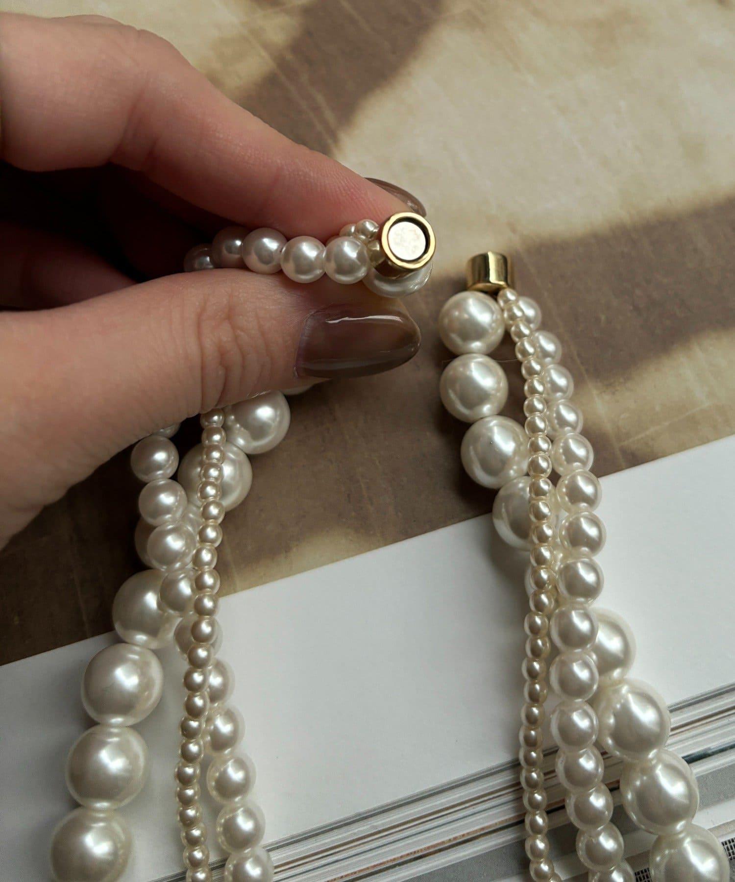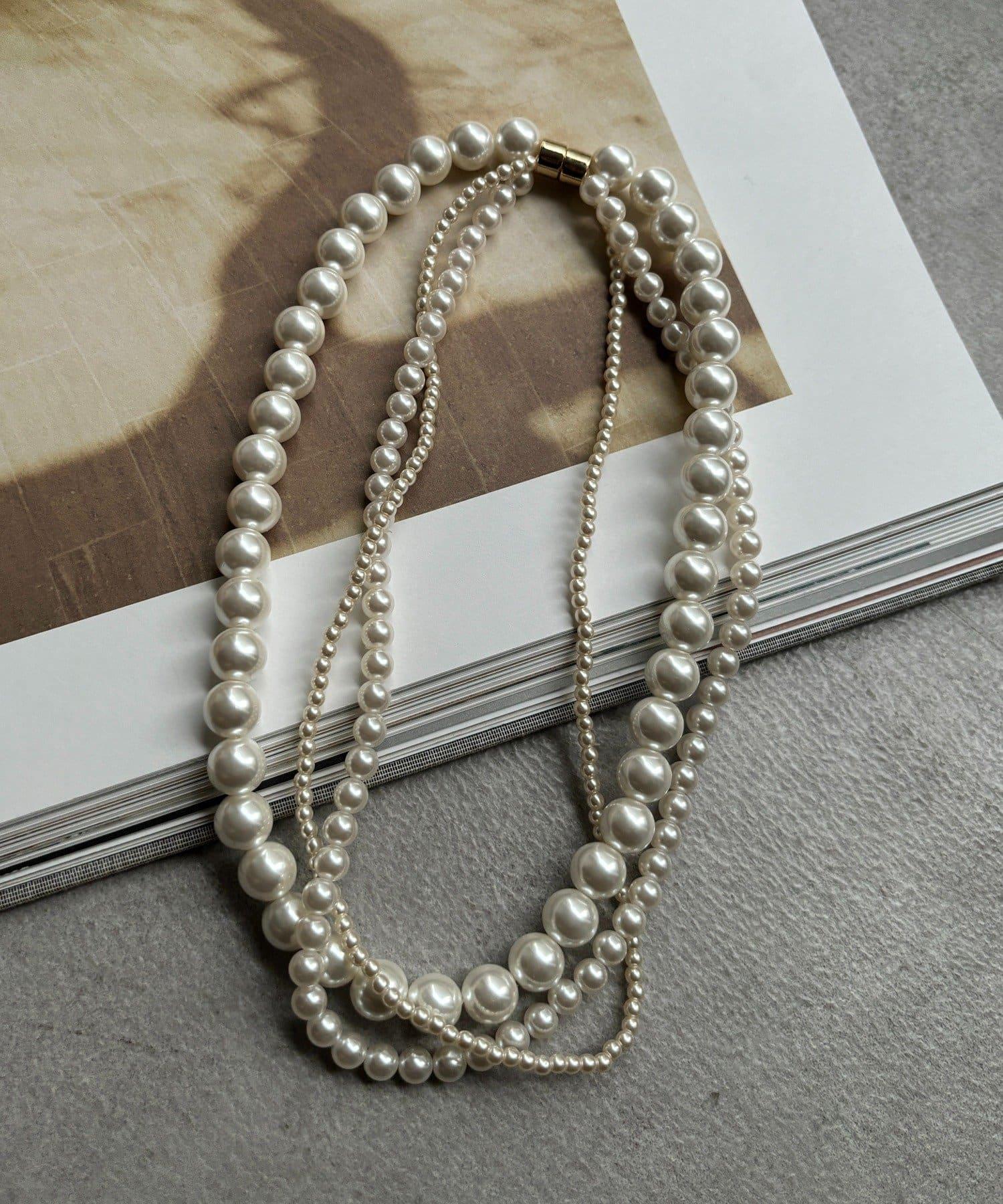 這條項鍊由三顆珍珠打造出迷人的立體層次感。
