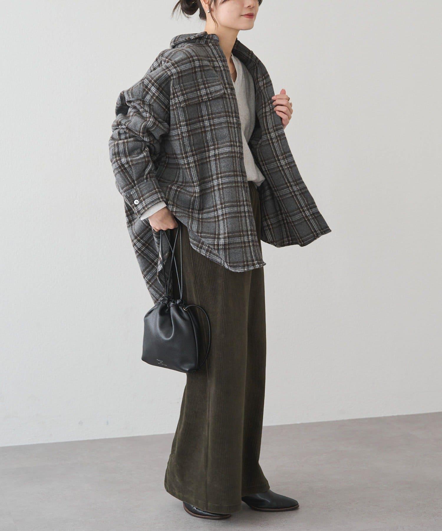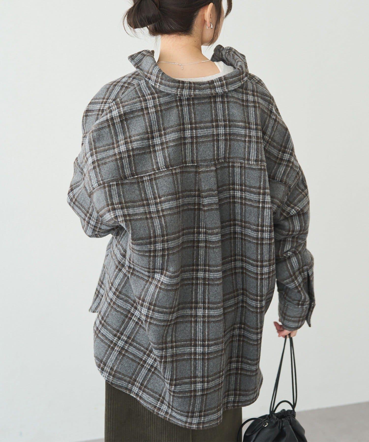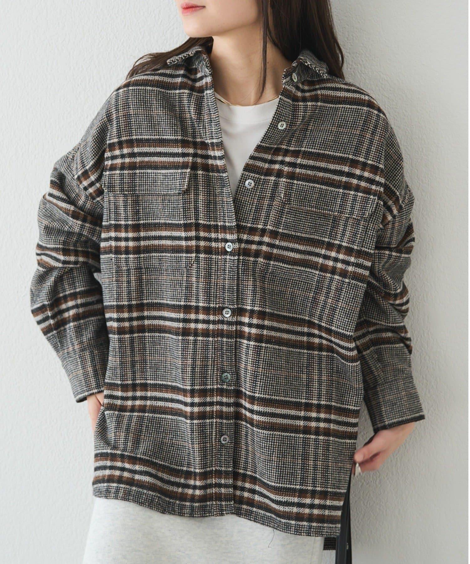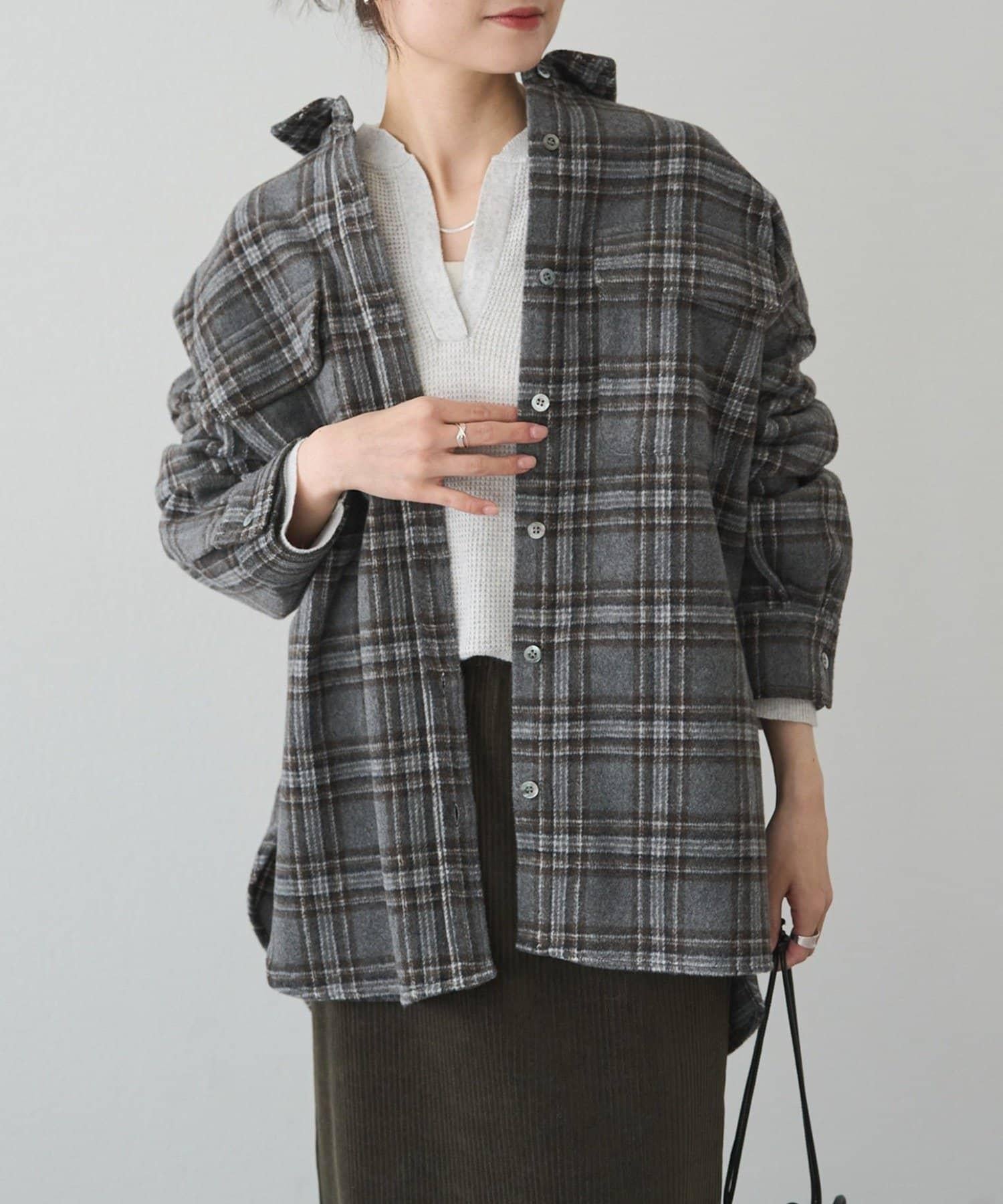 厚實柔軟的毛絨面料溫暖蓬鬆!大花紋格紋襯衫,成為協調點。