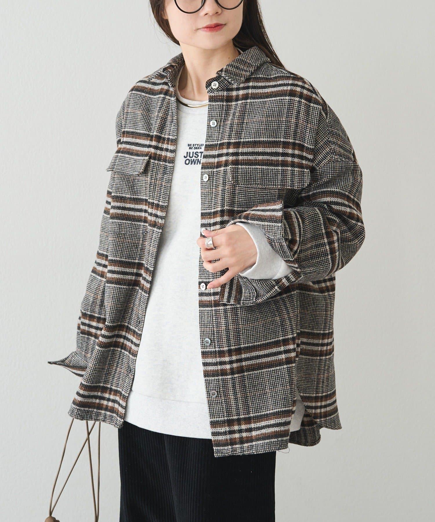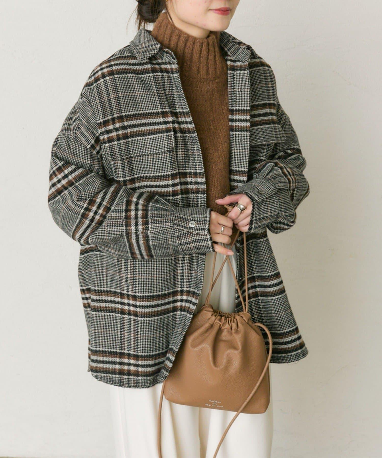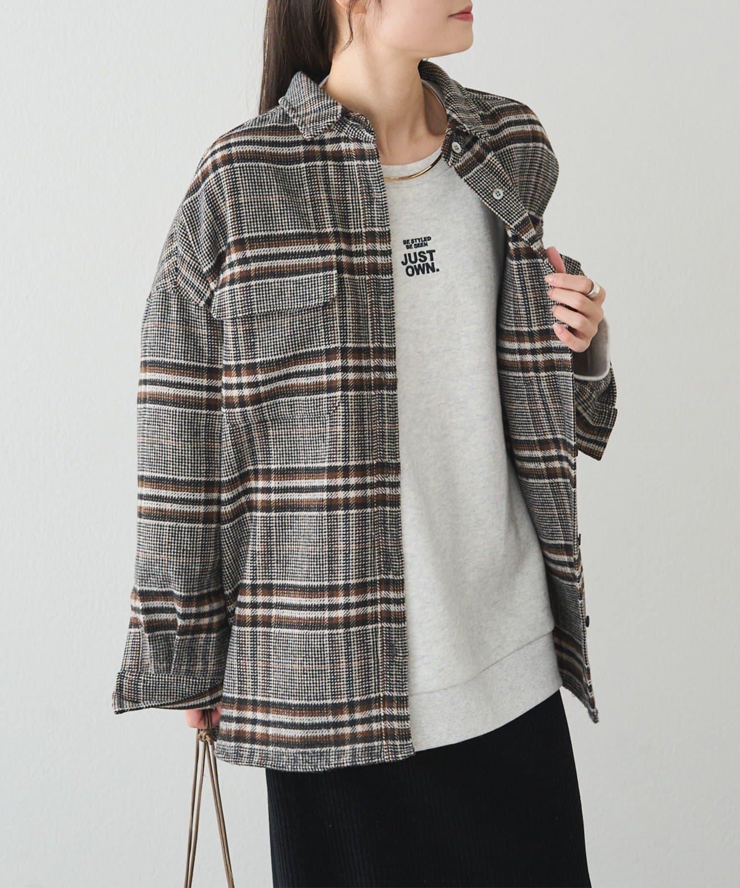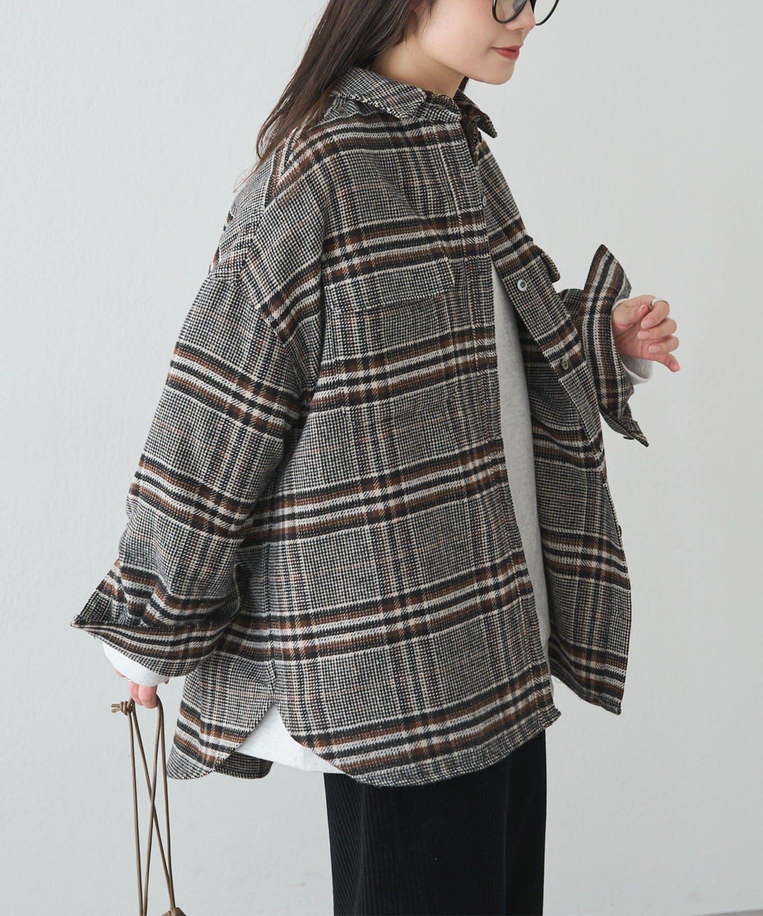 厚實柔軟的毛絨面料溫暖蓬鬆!大花紋格紋襯衫,成為協調點。