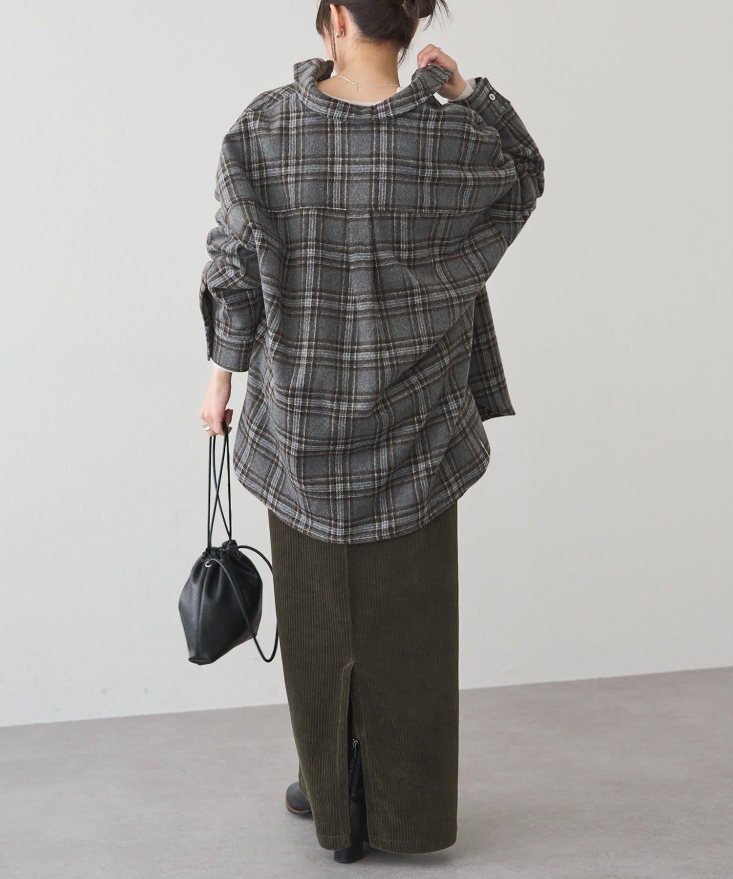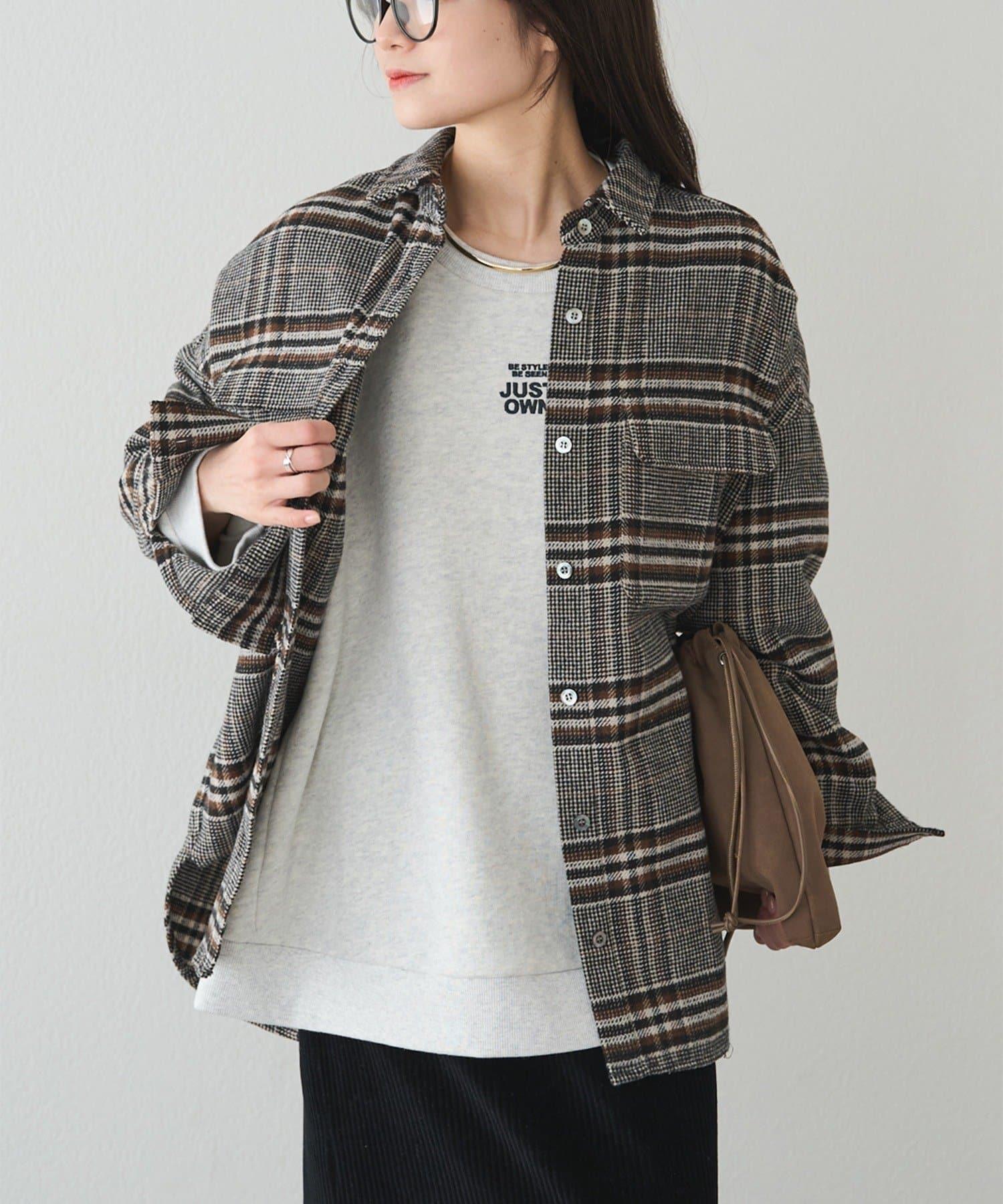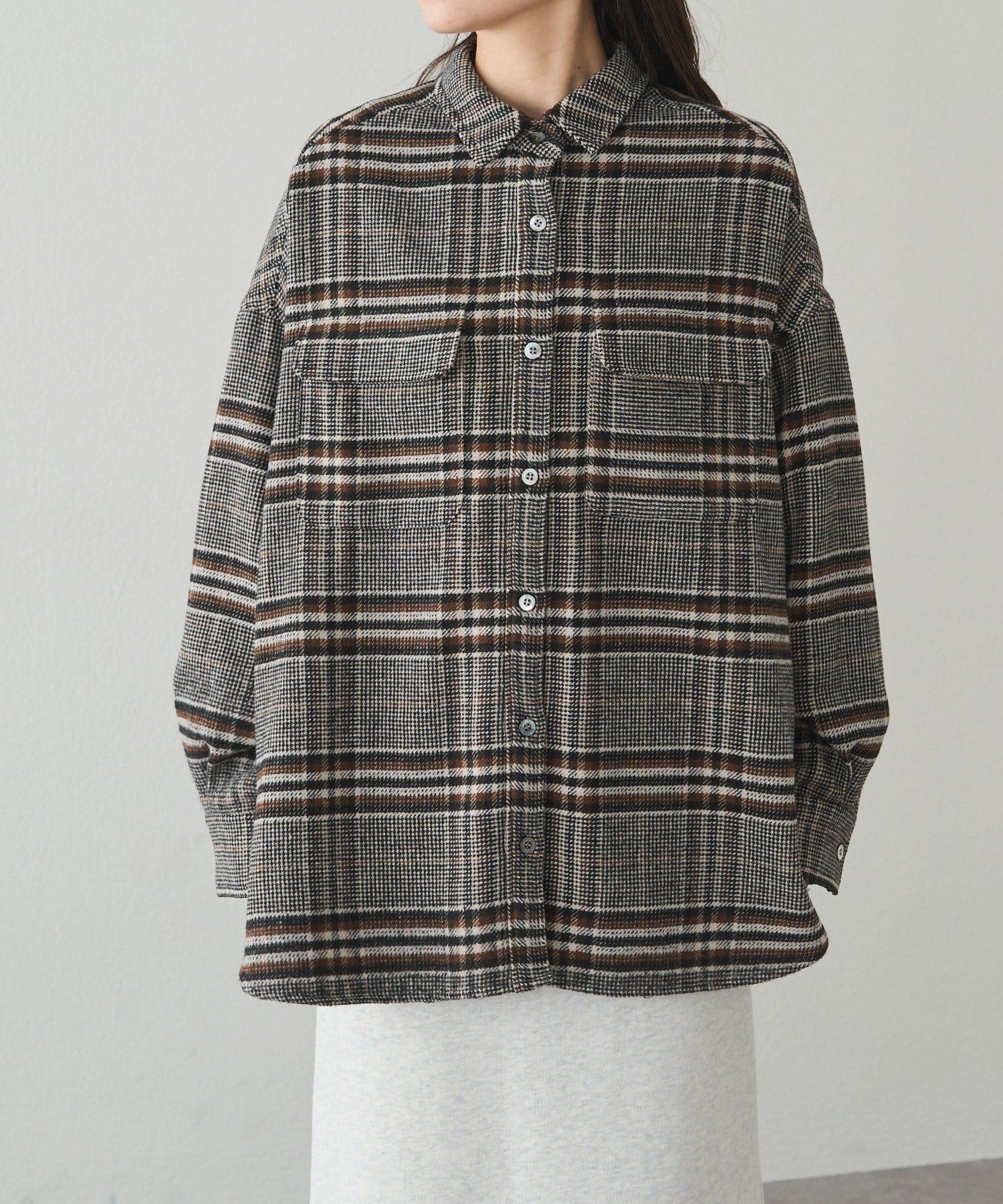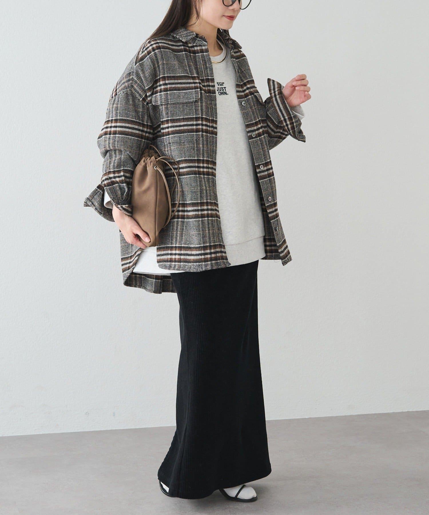 厚實柔軟的毛絨面料溫暖蓬鬆!大花紋格紋襯衫,成為協調點。