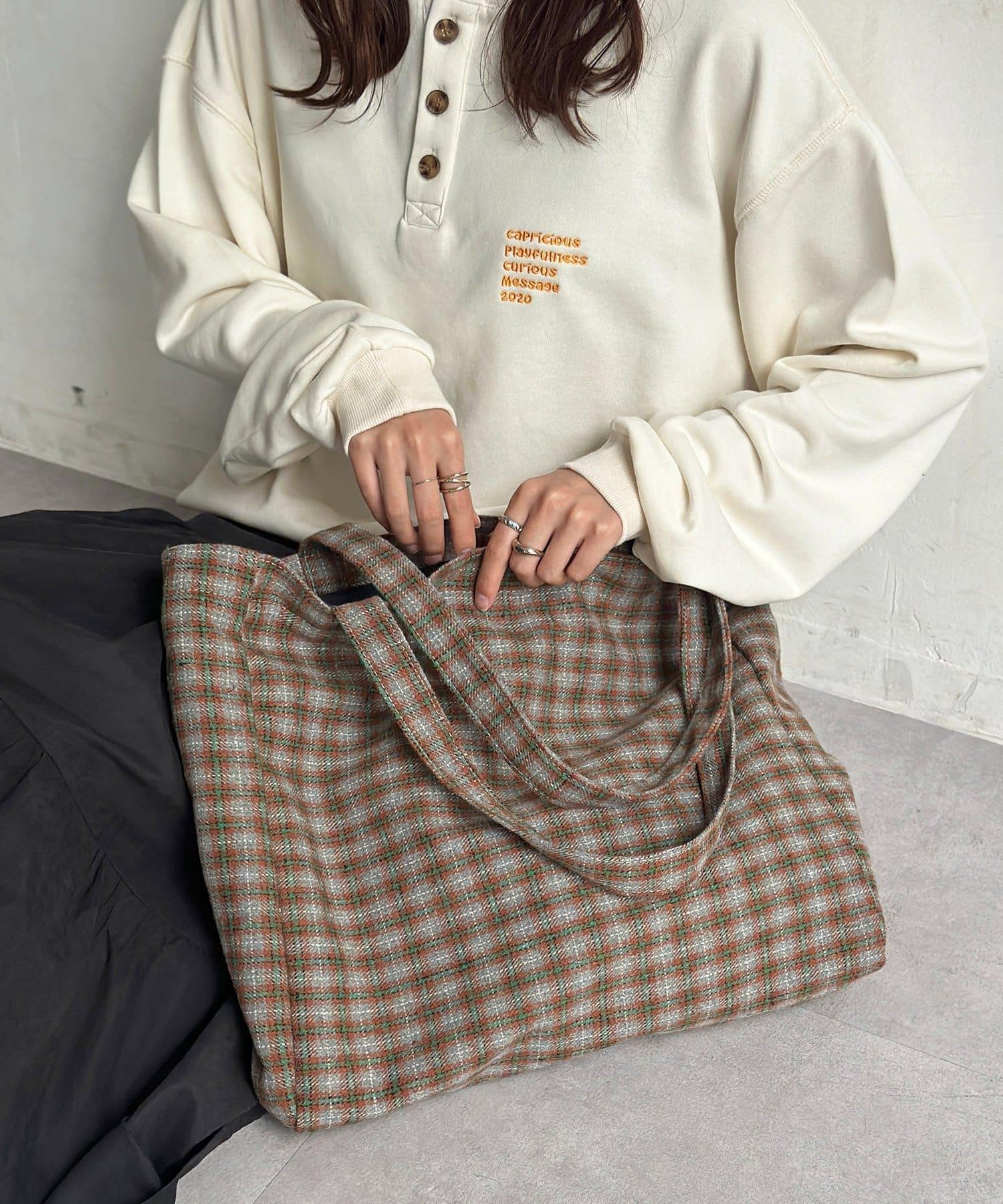 磨毛格紋托特包