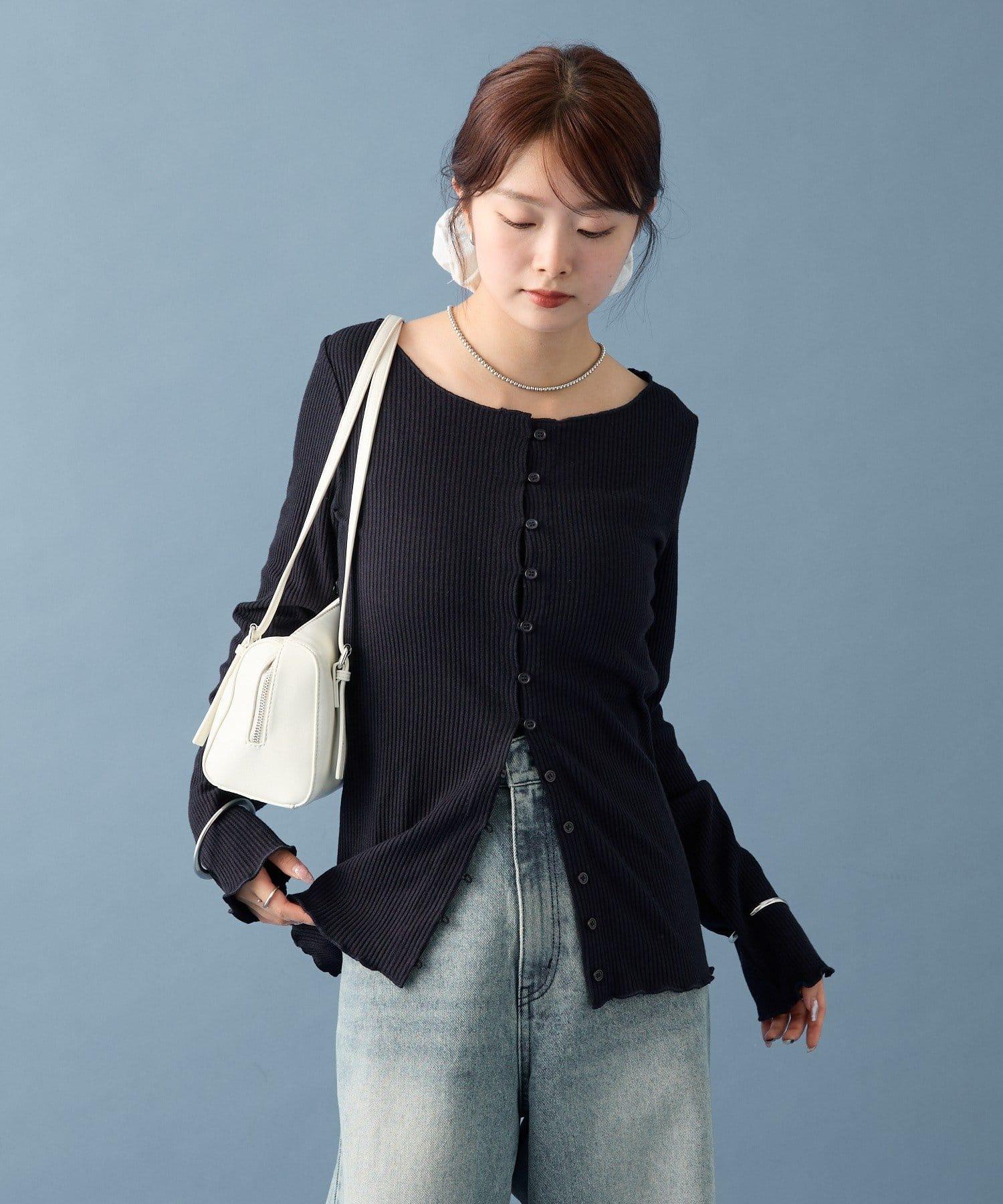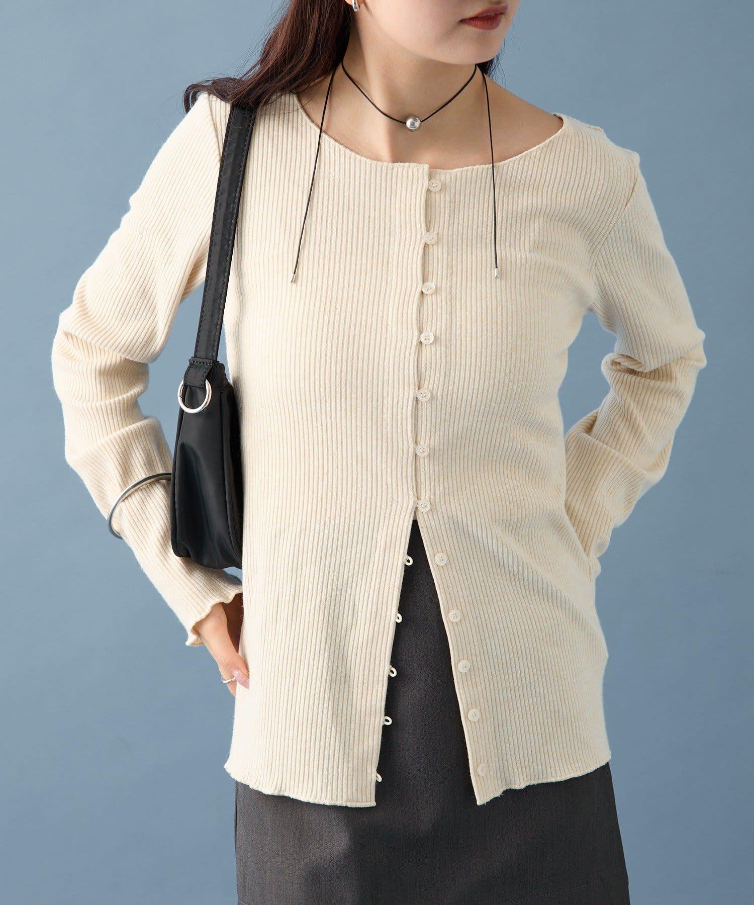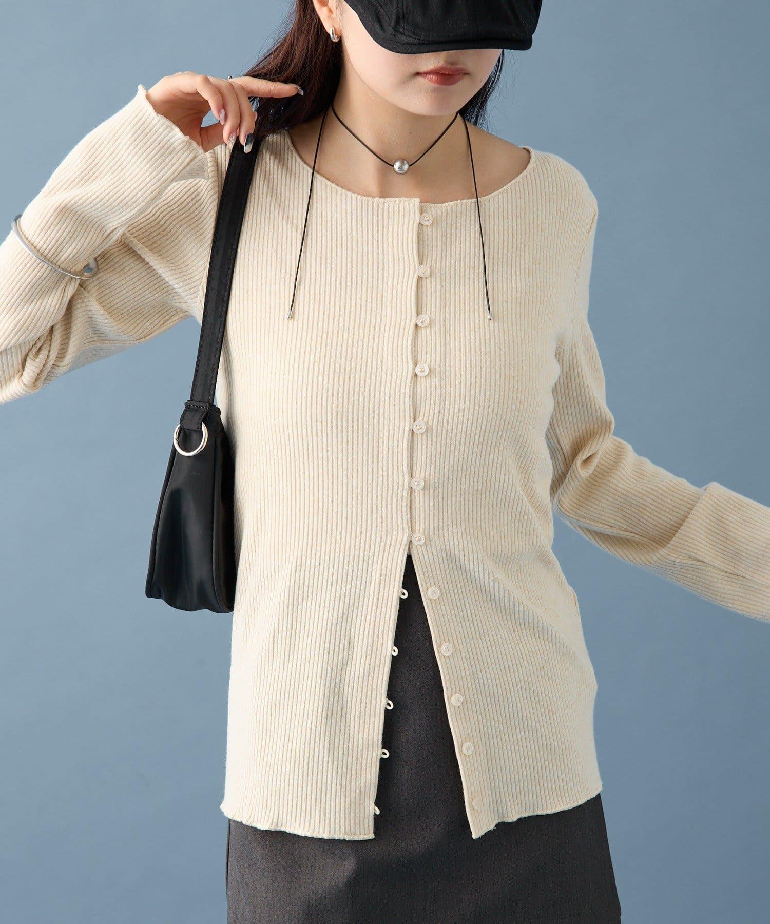 開襟毛衣👍下面的紐扣可以打開一點,為服裝增添寬鬆感。