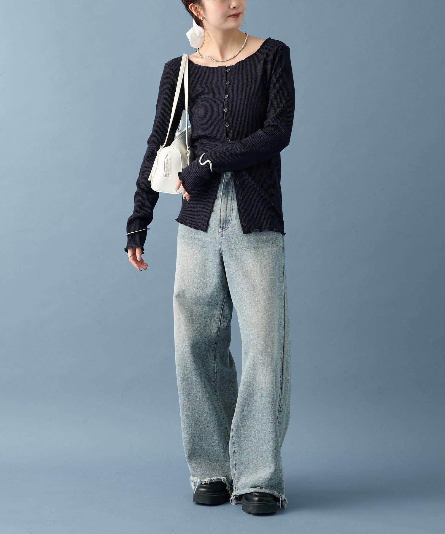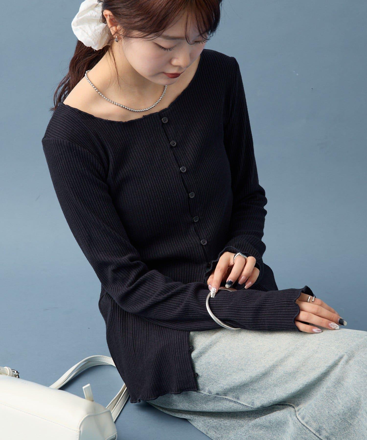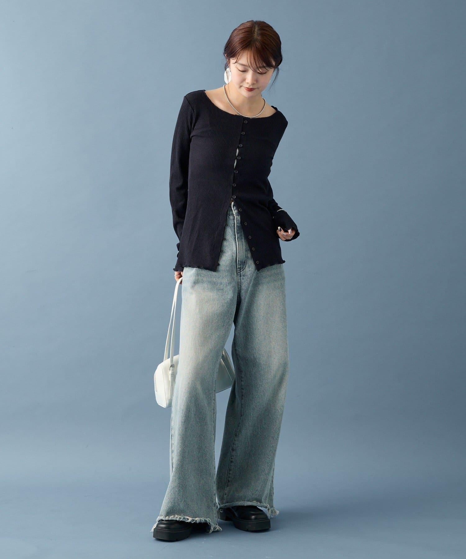 開襟毛衣👍下面的紐扣可以打開一點,為服裝增添寬鬆感。