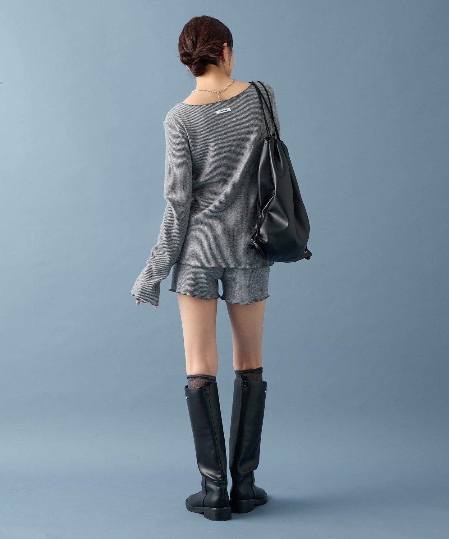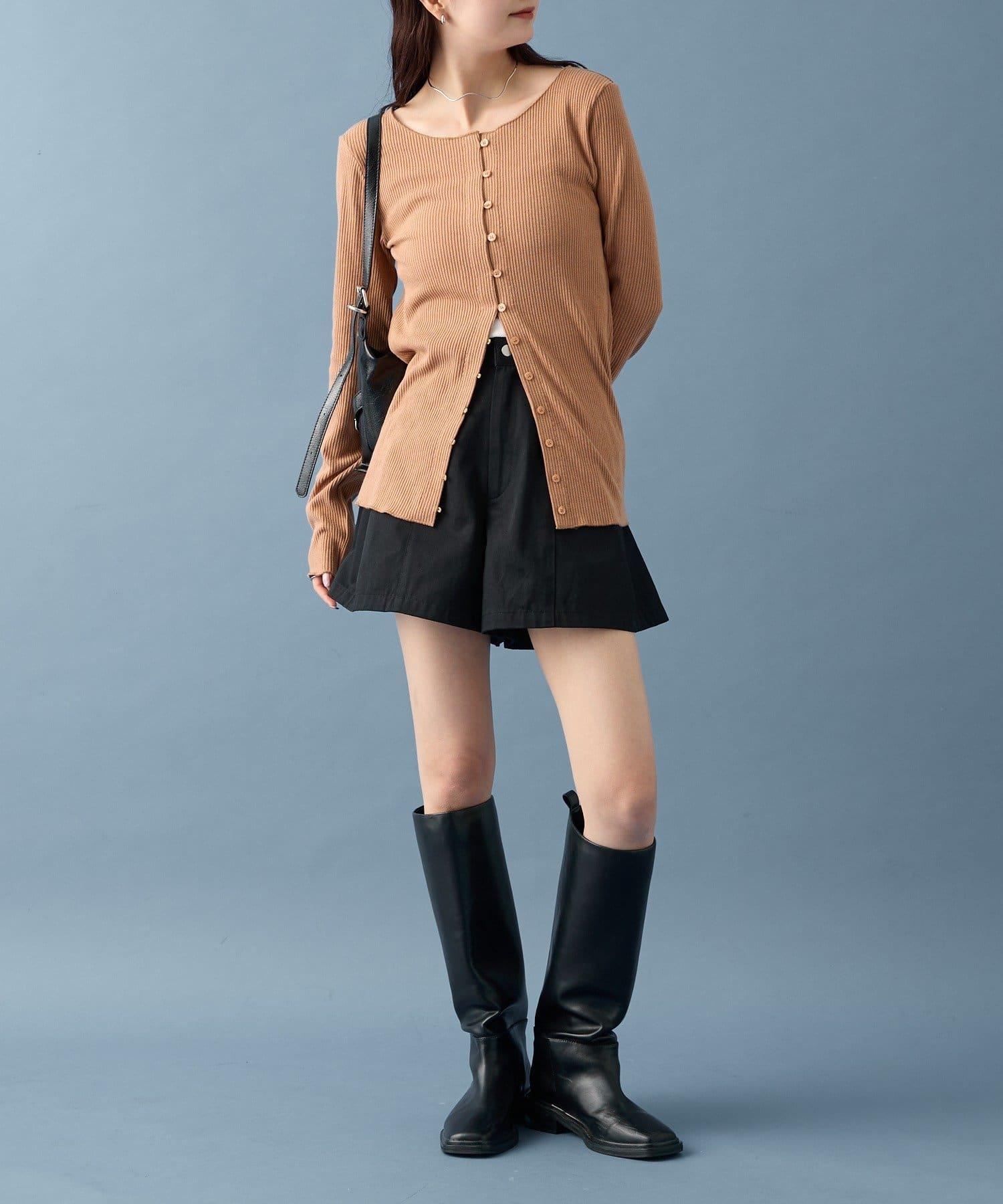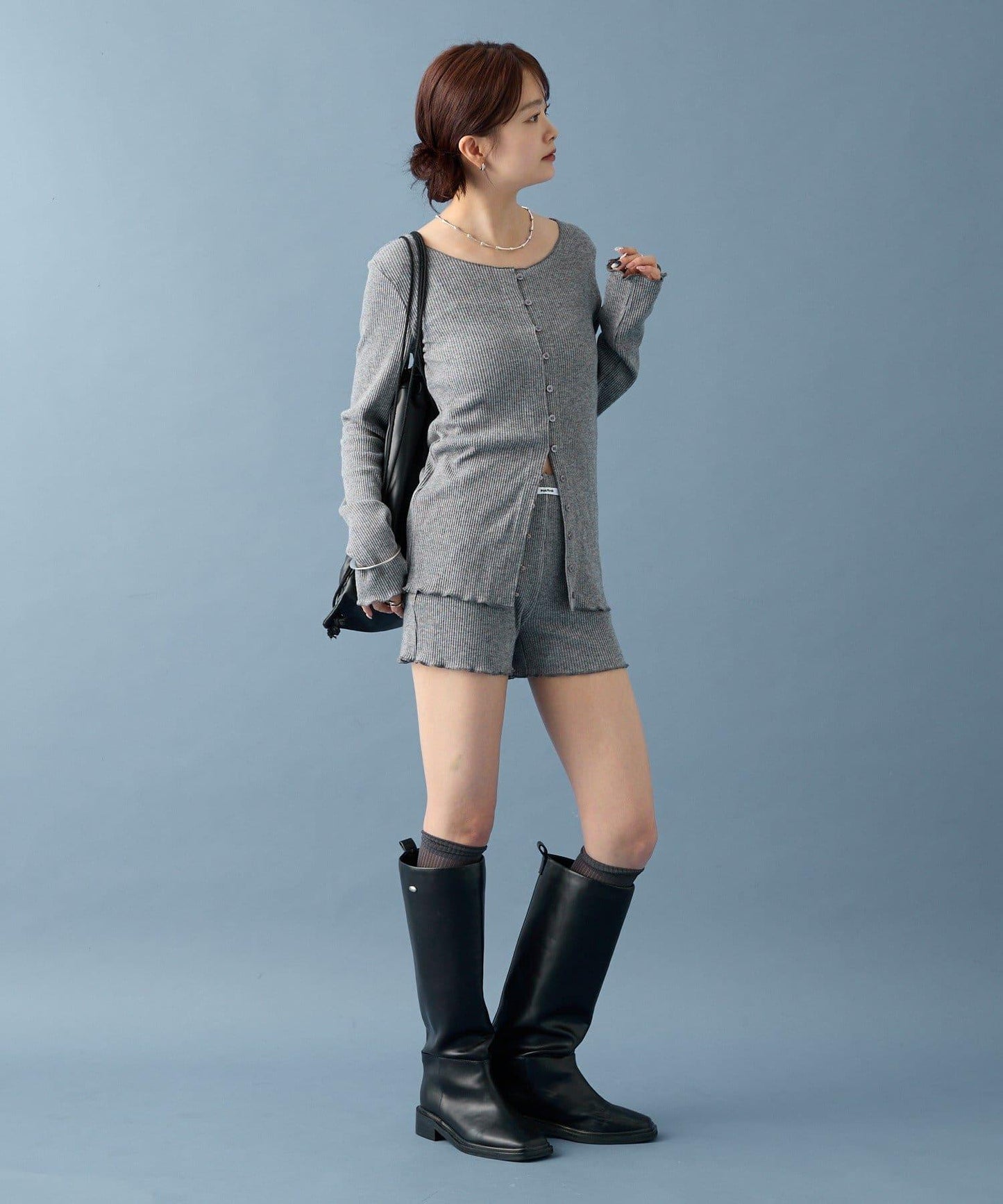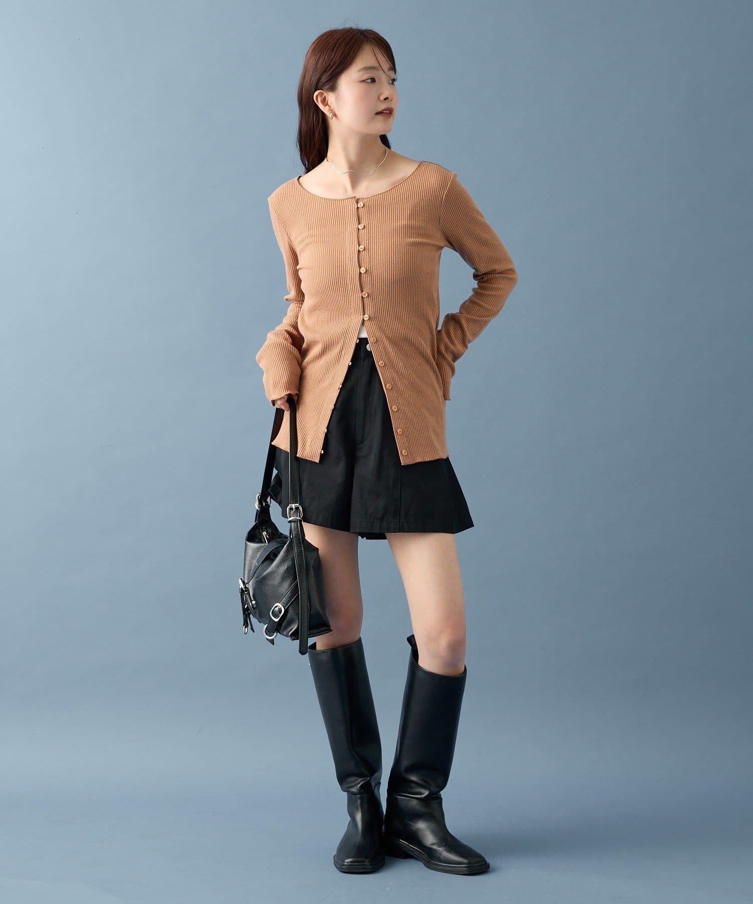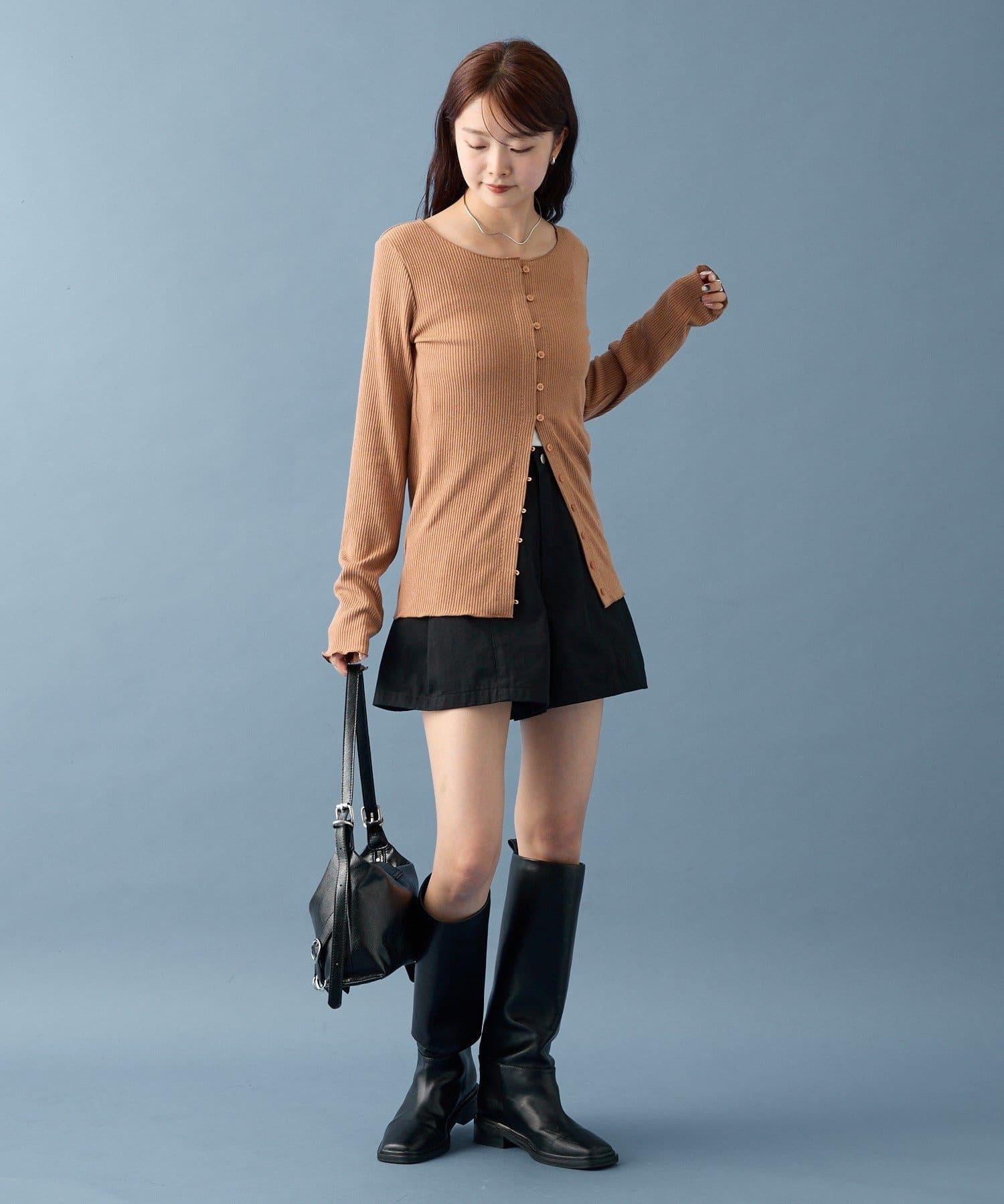 開衫採用長款設計,因此可搭配迷你長度的下裝!