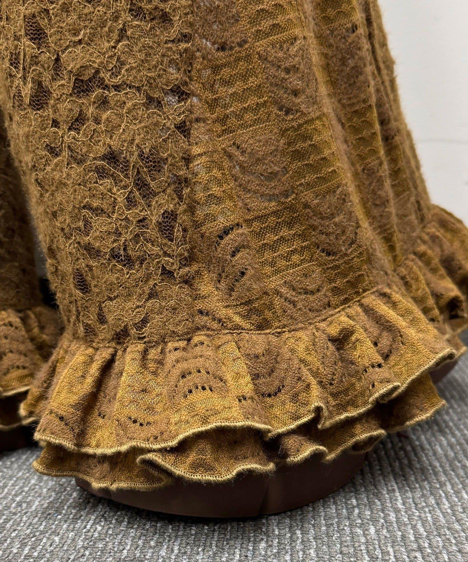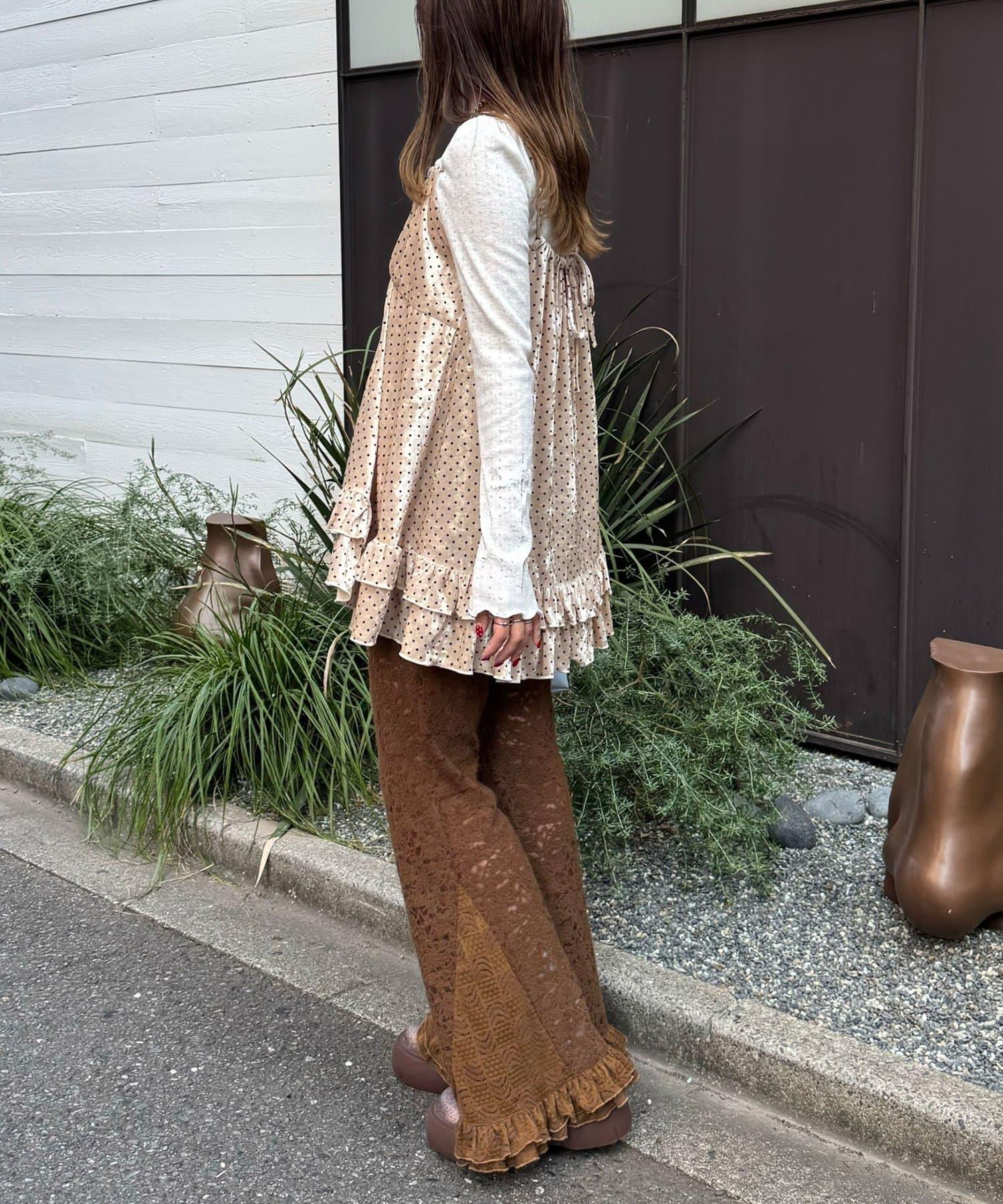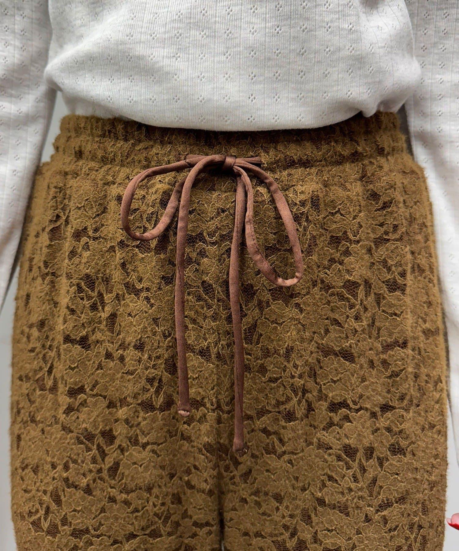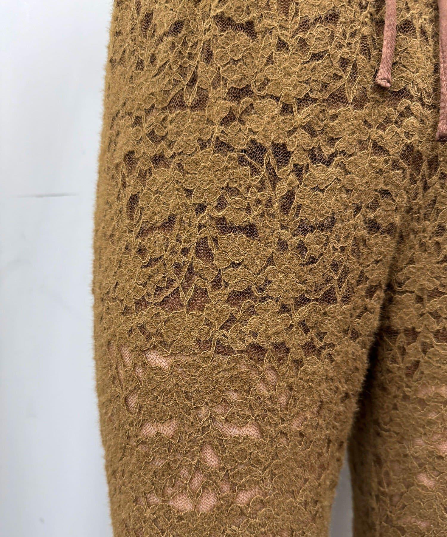 磨毛蕾絲拼接荷葉邊闊腿褲