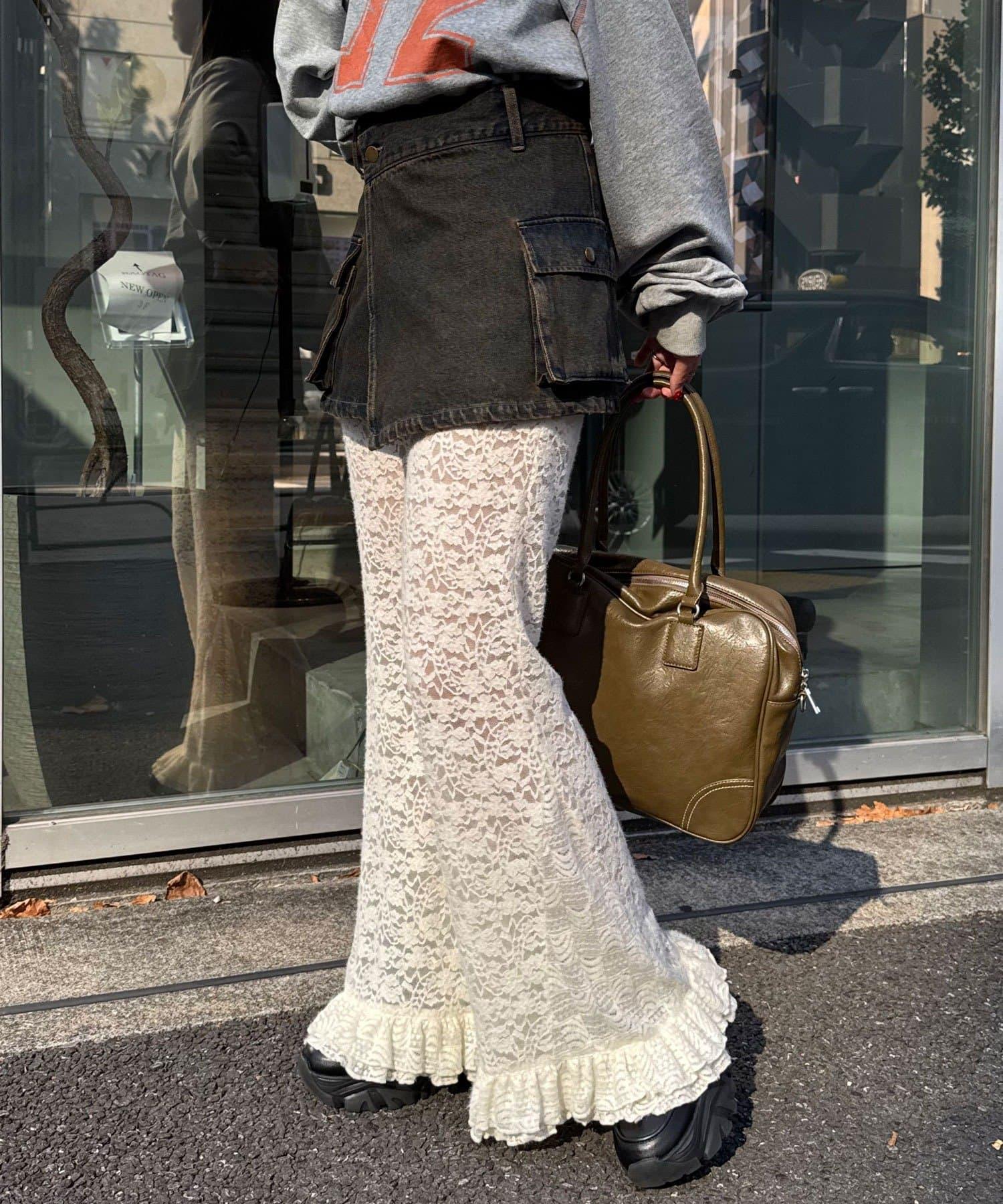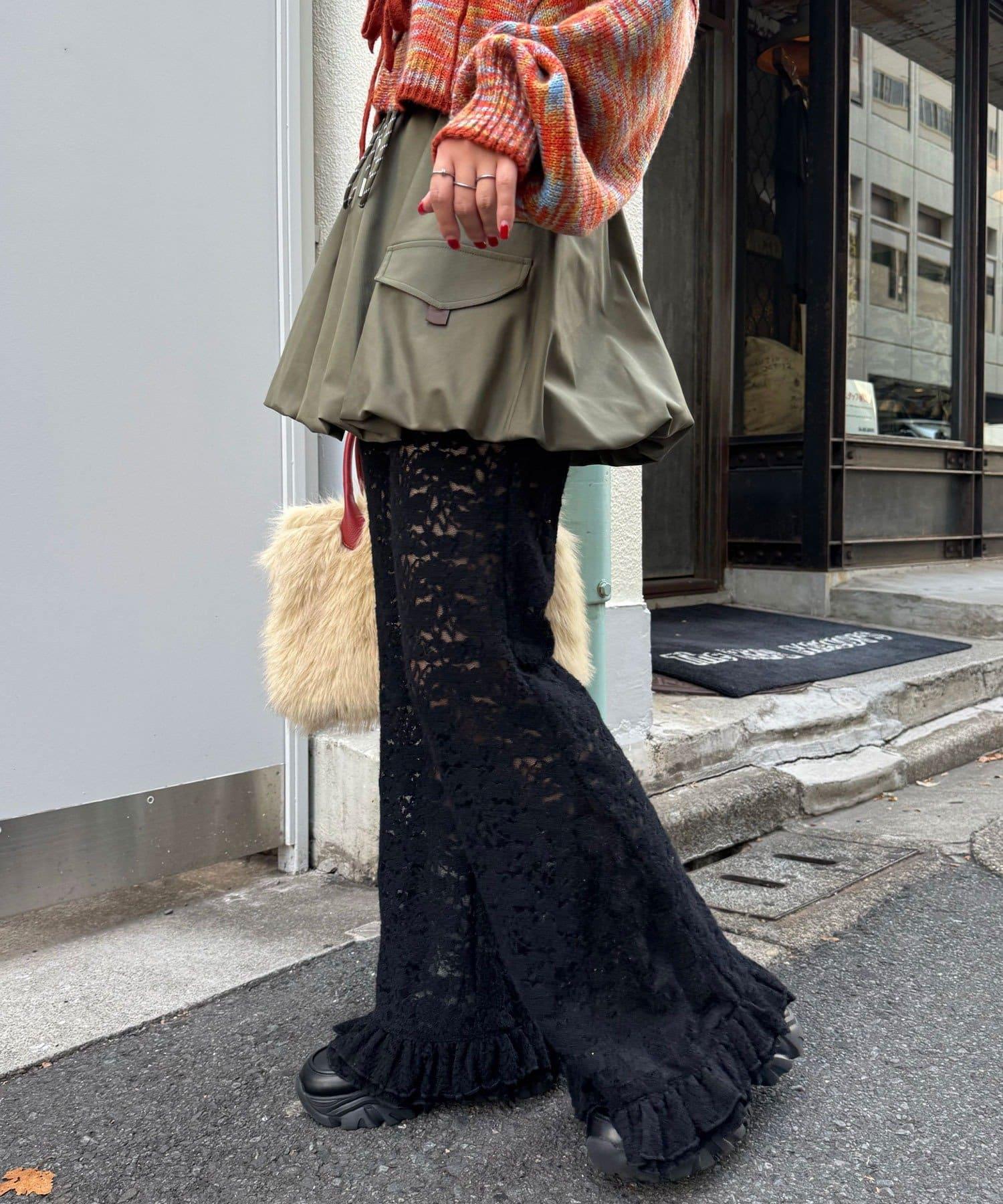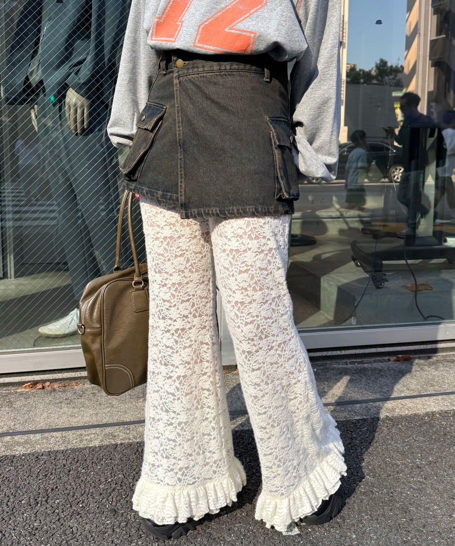 蕾絲喇叭褲,秋冬疊穿更美麗
