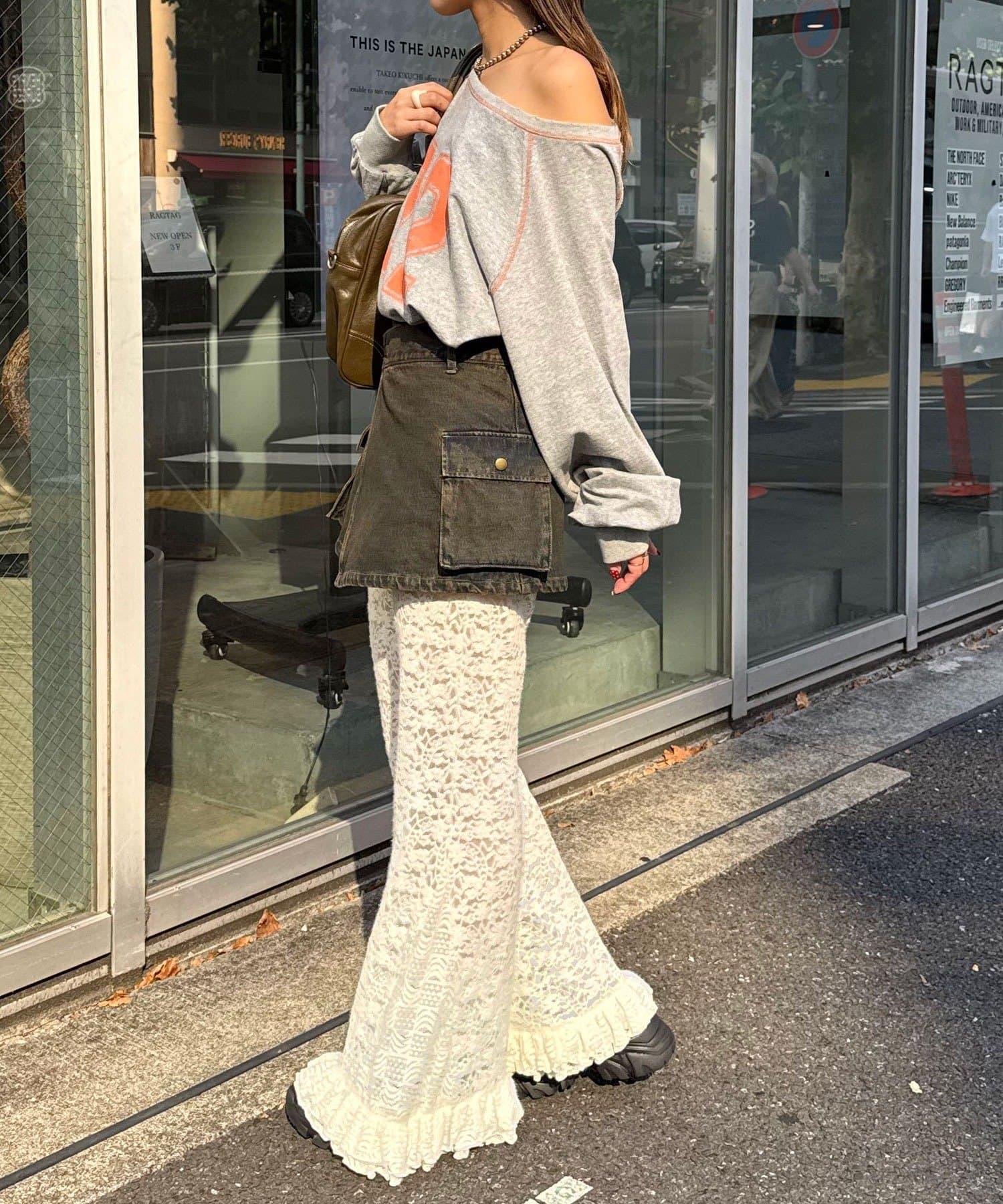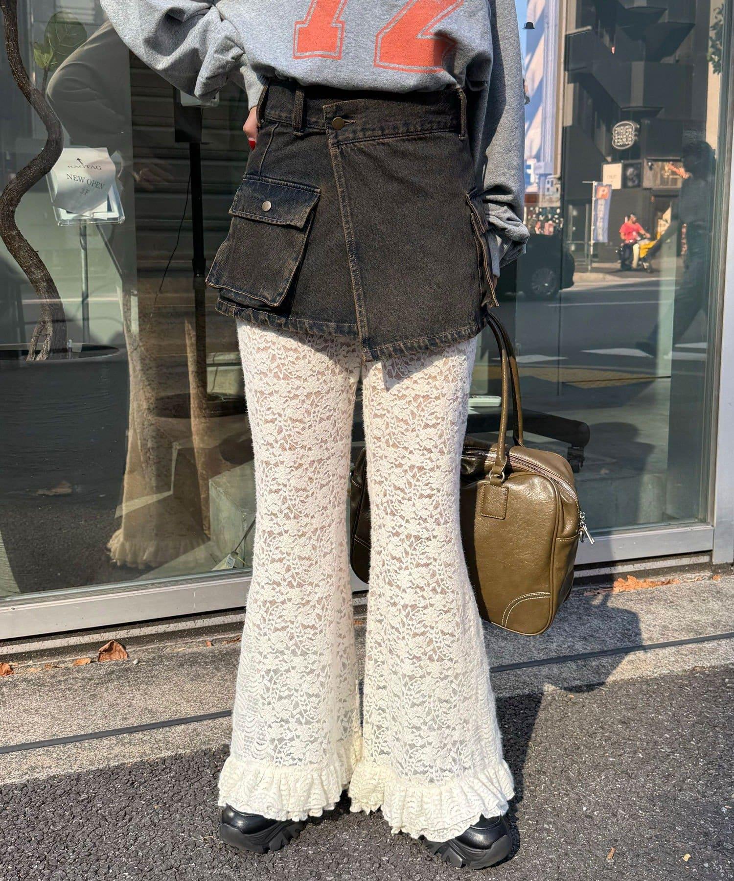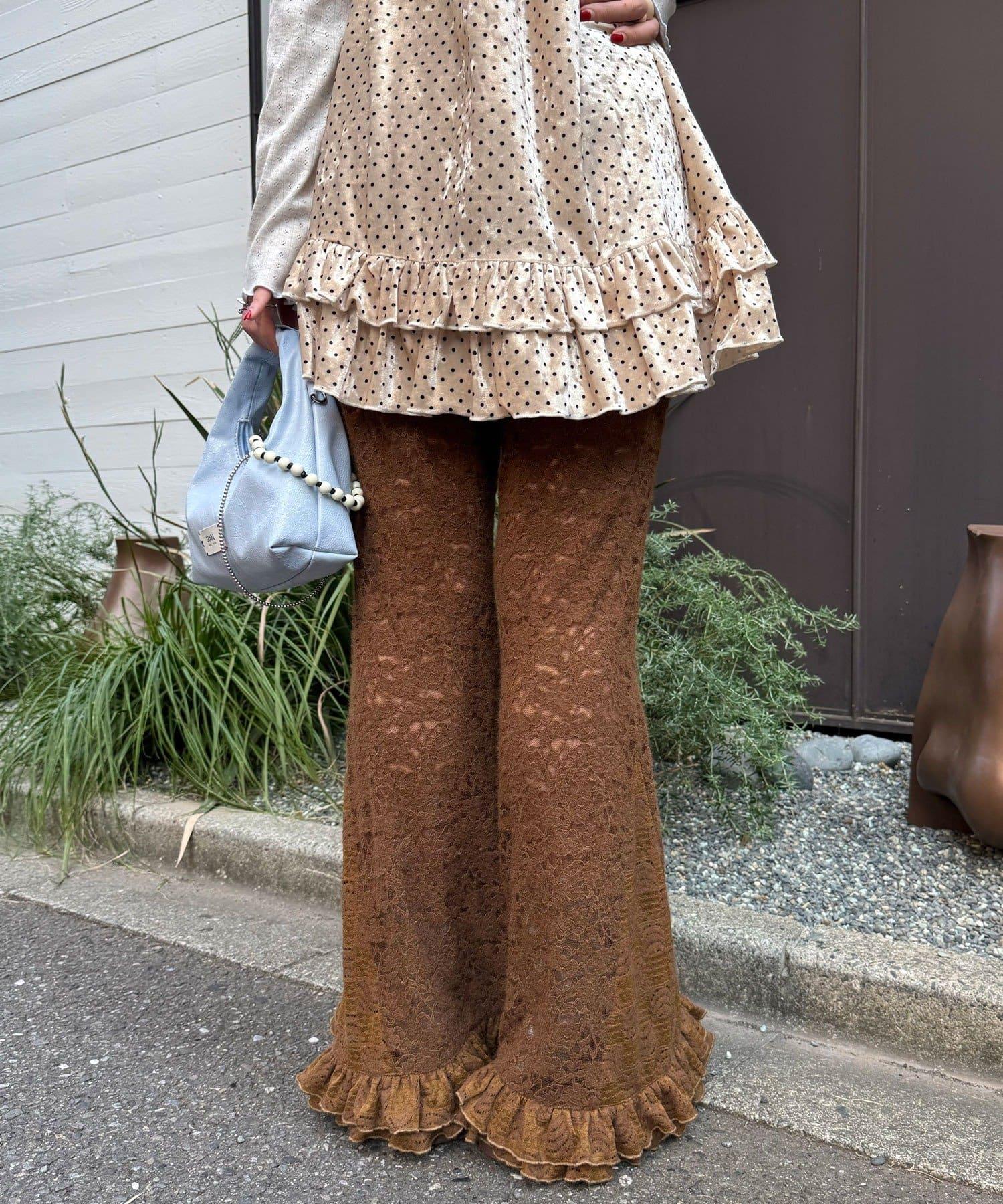 蕾絲喇叭褲,秋冬疊穿更美麗