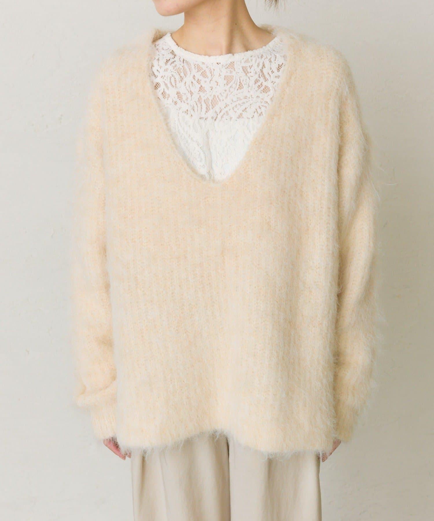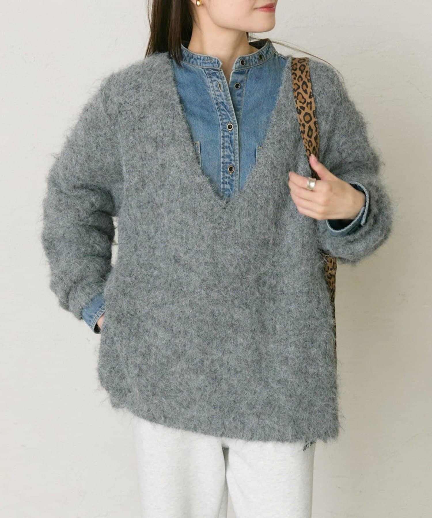 一款套頭針織衫,柔軟蓬鬆的質感烘托出季節的氛圍。