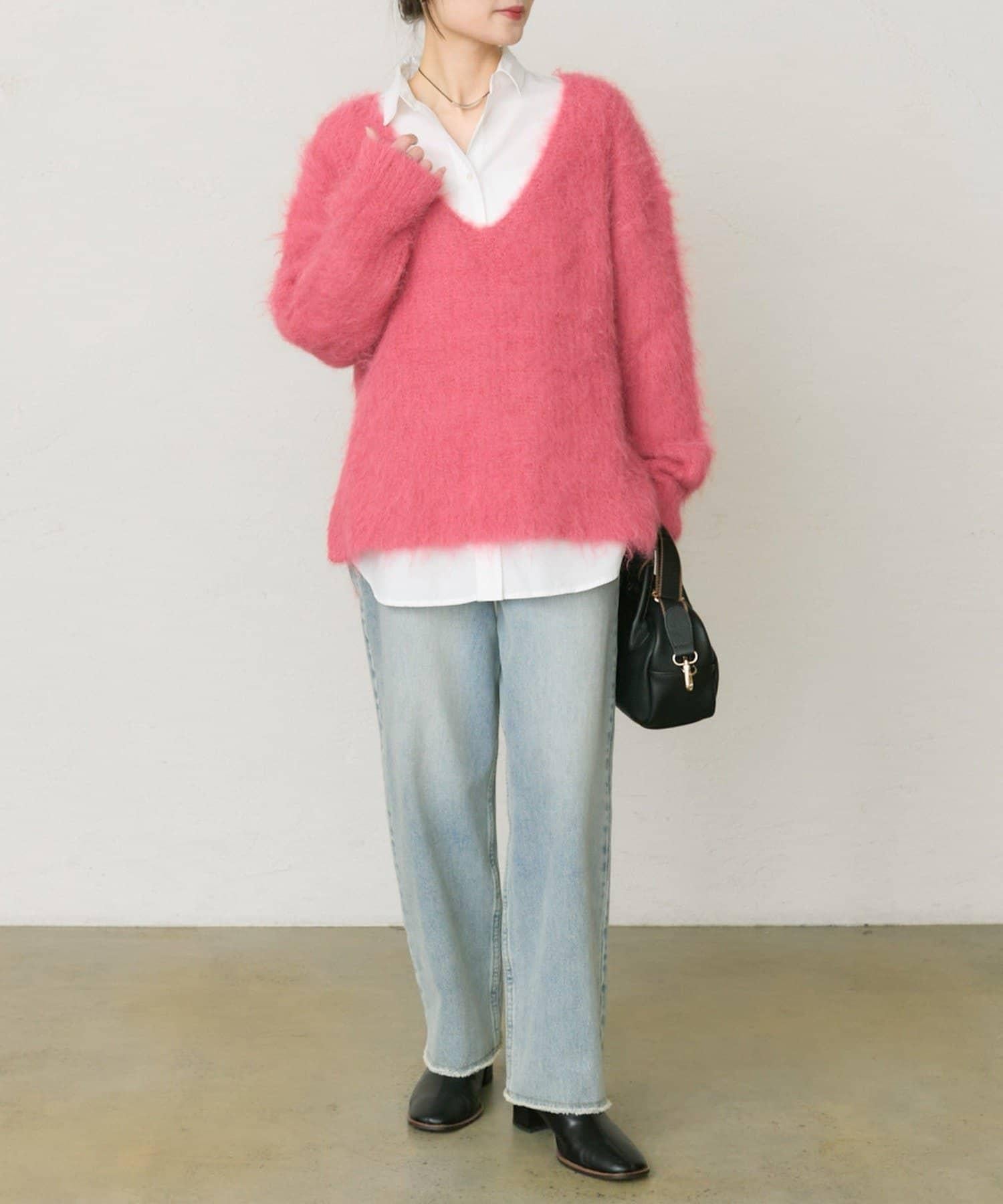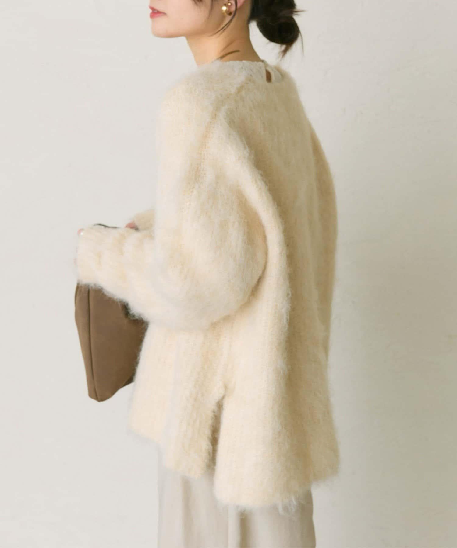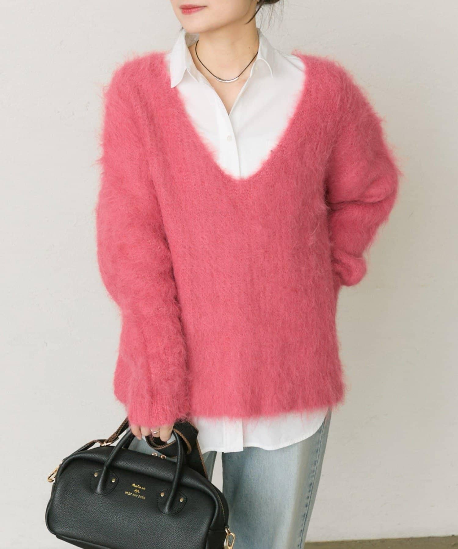 毛茸茸的針織衫讓人忍不住想摸一摸,集可愛與溫暖於一身。