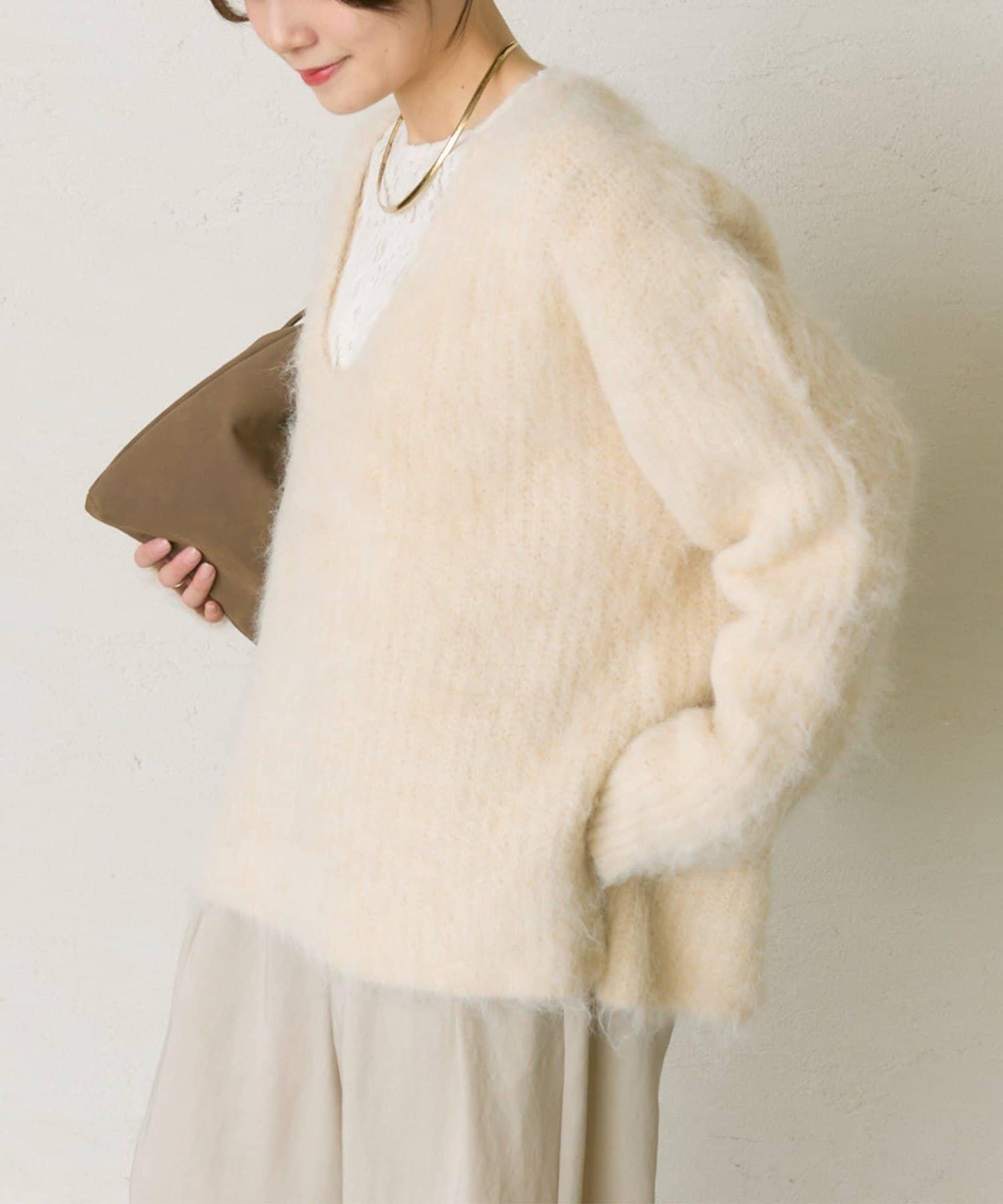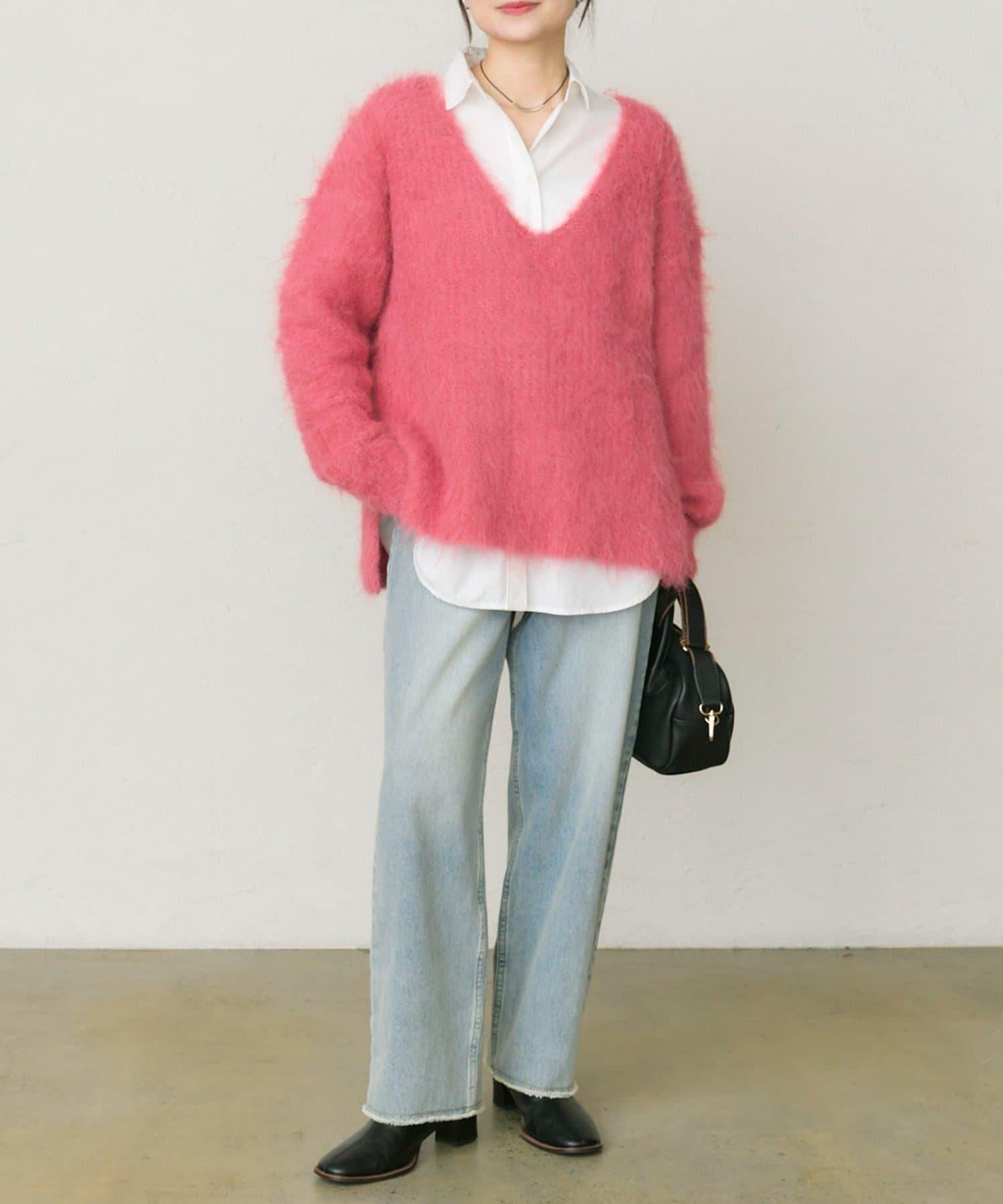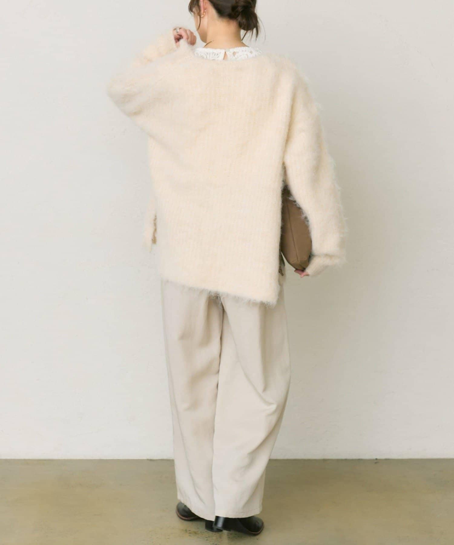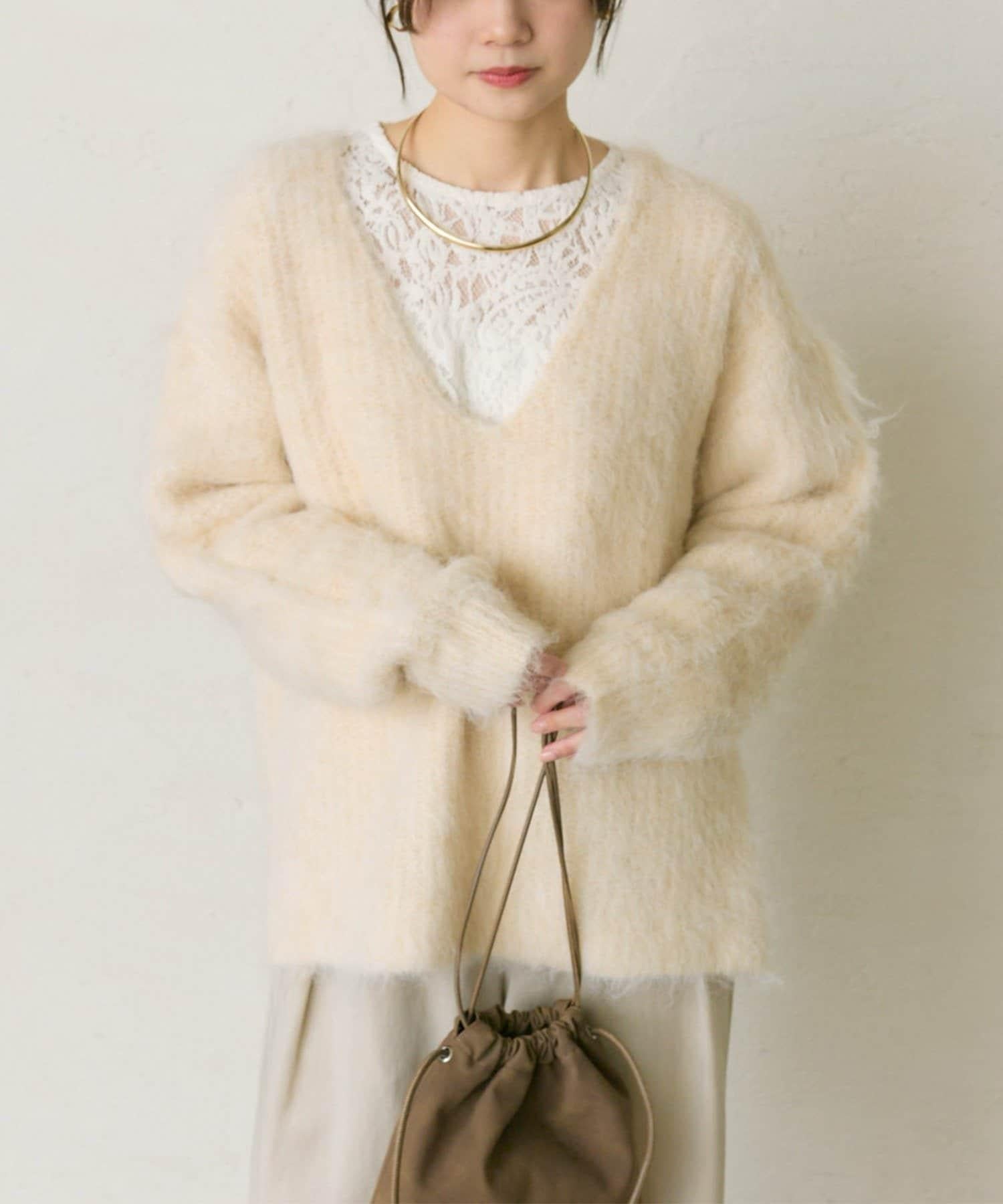 毛茸茸的針織衫讓人忍不住想摸一摸,集可愛與溫暖於一身。
