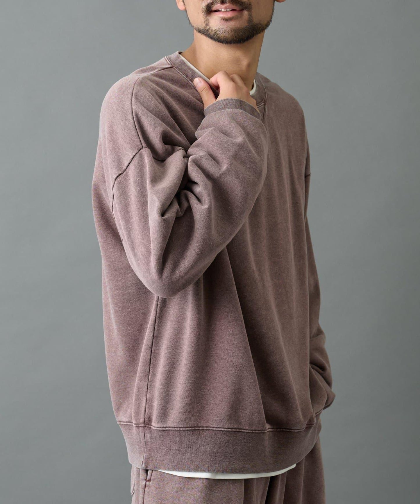 經過粉末處理的圓領運動衫,外觀精緻,穿著輕柔舒適。