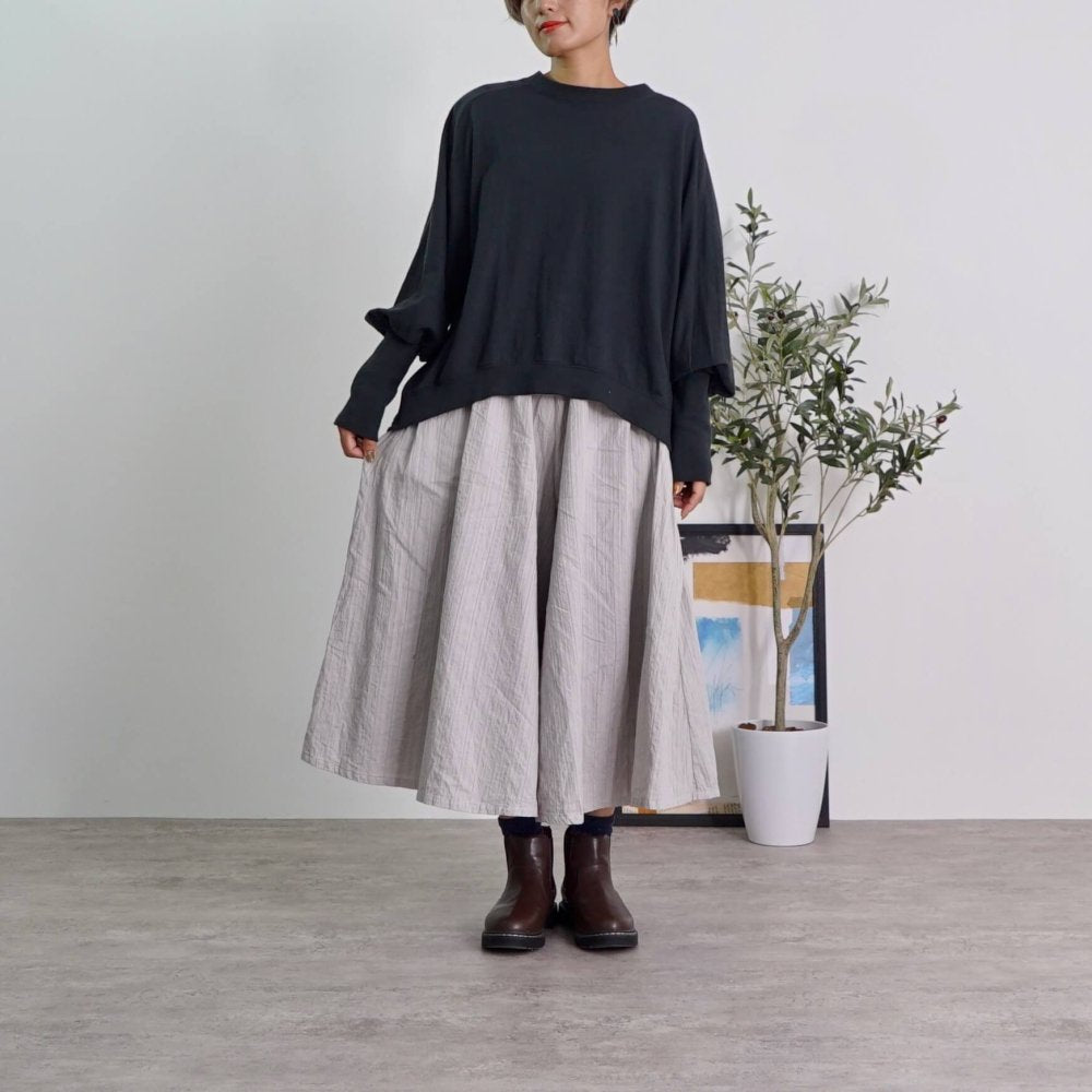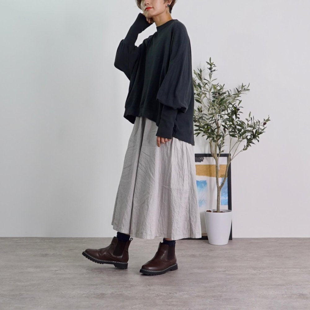 前幅的長度恰到好處,讓腰部看起來更高挑。您還可以期待悅目的增高效果。羅紋下襬使其看起來更加圓潤,營造出柔和、女性化的印象,同時又不會過於隨意。 ^