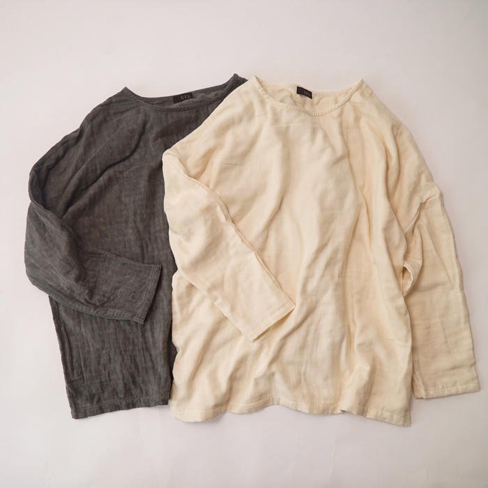 有兩套 T 恤可供選擇,一套是純棉原色,另一套是用柿子澀染料染成的深灰色,可以每天穿著。